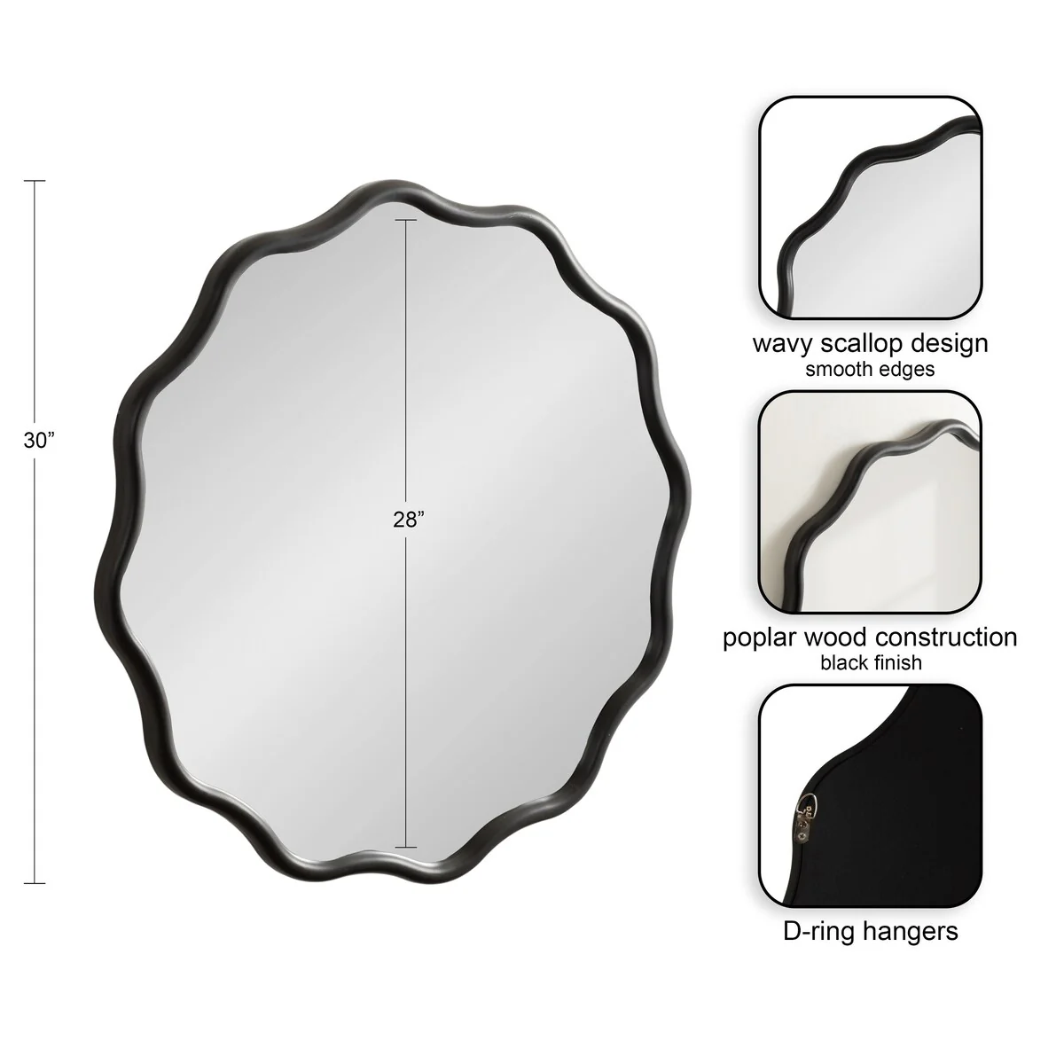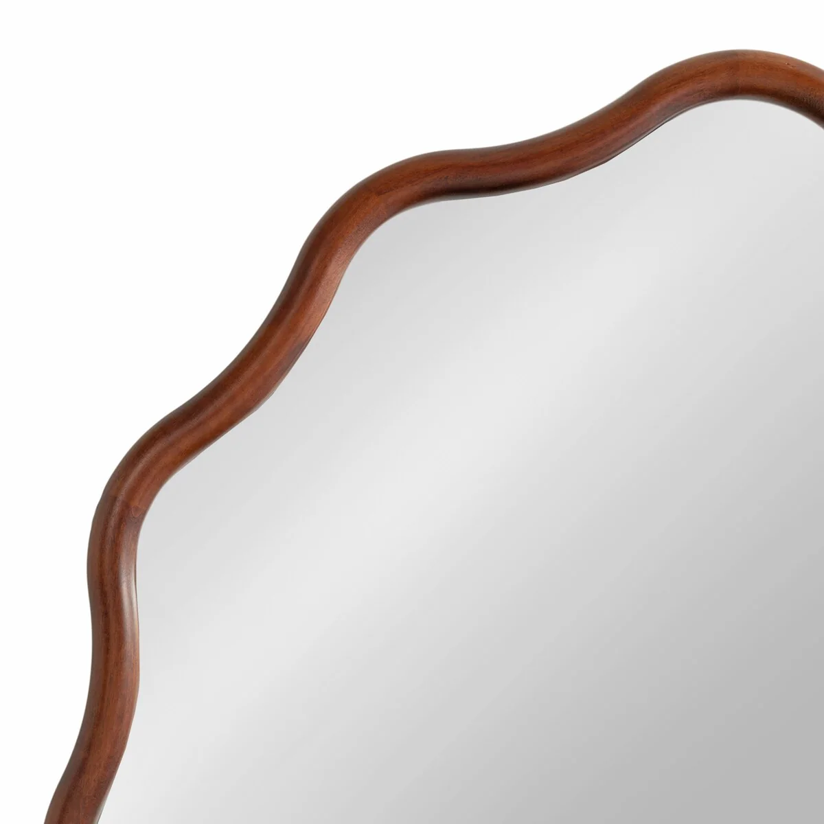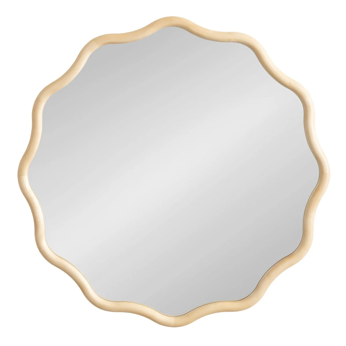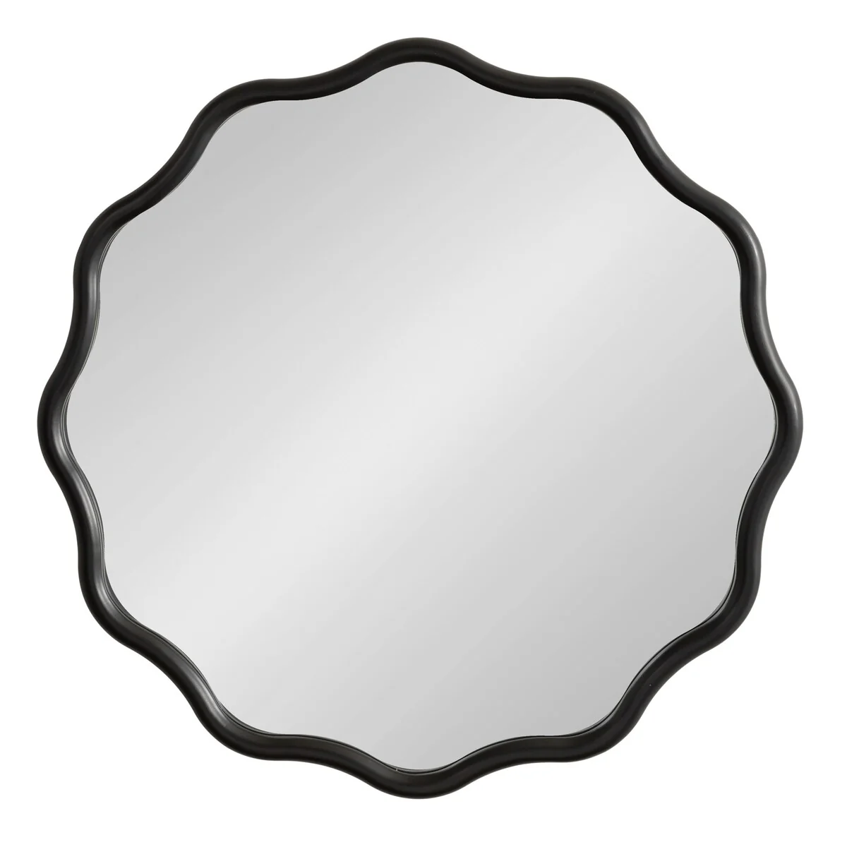 The Kate and Laurel Talma mirror features a rich walnut brown finish that adds a touch of elegance and sophistication to your space. Crafted with the utmost care, the mirror boasts a solid poplar wood frame that ensures durability and longevity. The scalloped frame profile adds to the mirror's charm, making it a perfect fit for a variety of interior styles, including modern, contemporary, and traditional. Not only is this mirror visually appealing, but it also serves a practical purpose. Hang it in your living room, bedroom, or entryway to create an illusion of a larger space, and to effortlessly check your appearance before heading out. The Talma round scallop wall mirror is designed to make your home feel brighter and more spacious. Its wavy mirror shape adds a touch of uniqueness to your wall decor, making it a focal point in any room. The mirror features convenient metal hangers to be hung easily to suit your wall decor. This exquisite mirror, measuring 30 inches in diameter, is a stunning addition to any home decor. This mirror combines organic forms with a delightful finish, ensuring that you get a stunning wall decor accent.