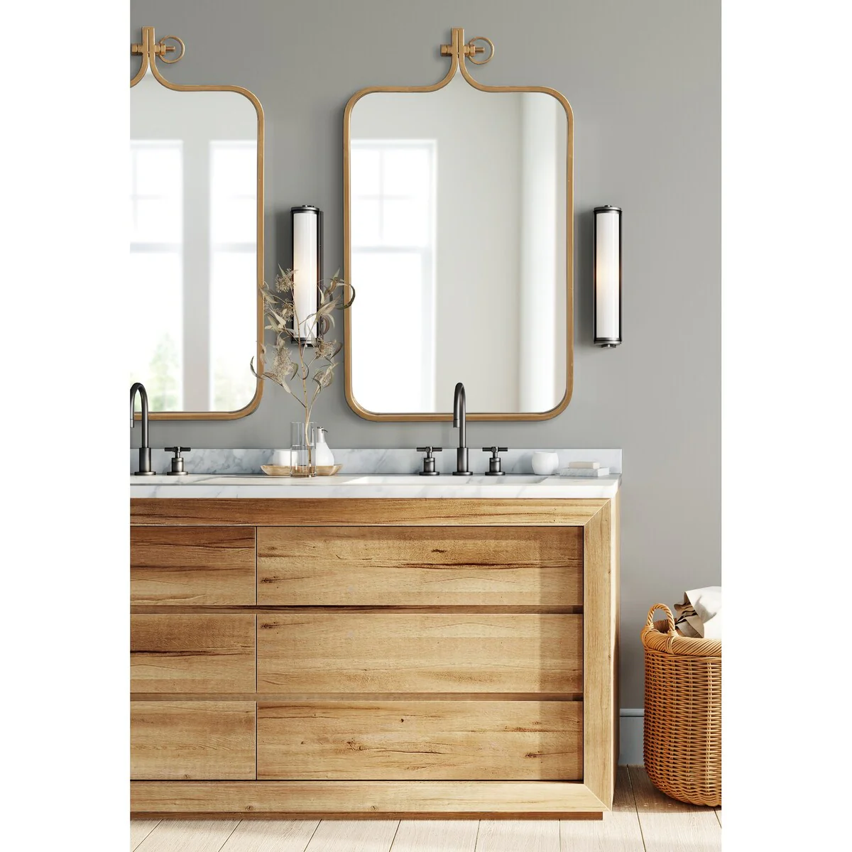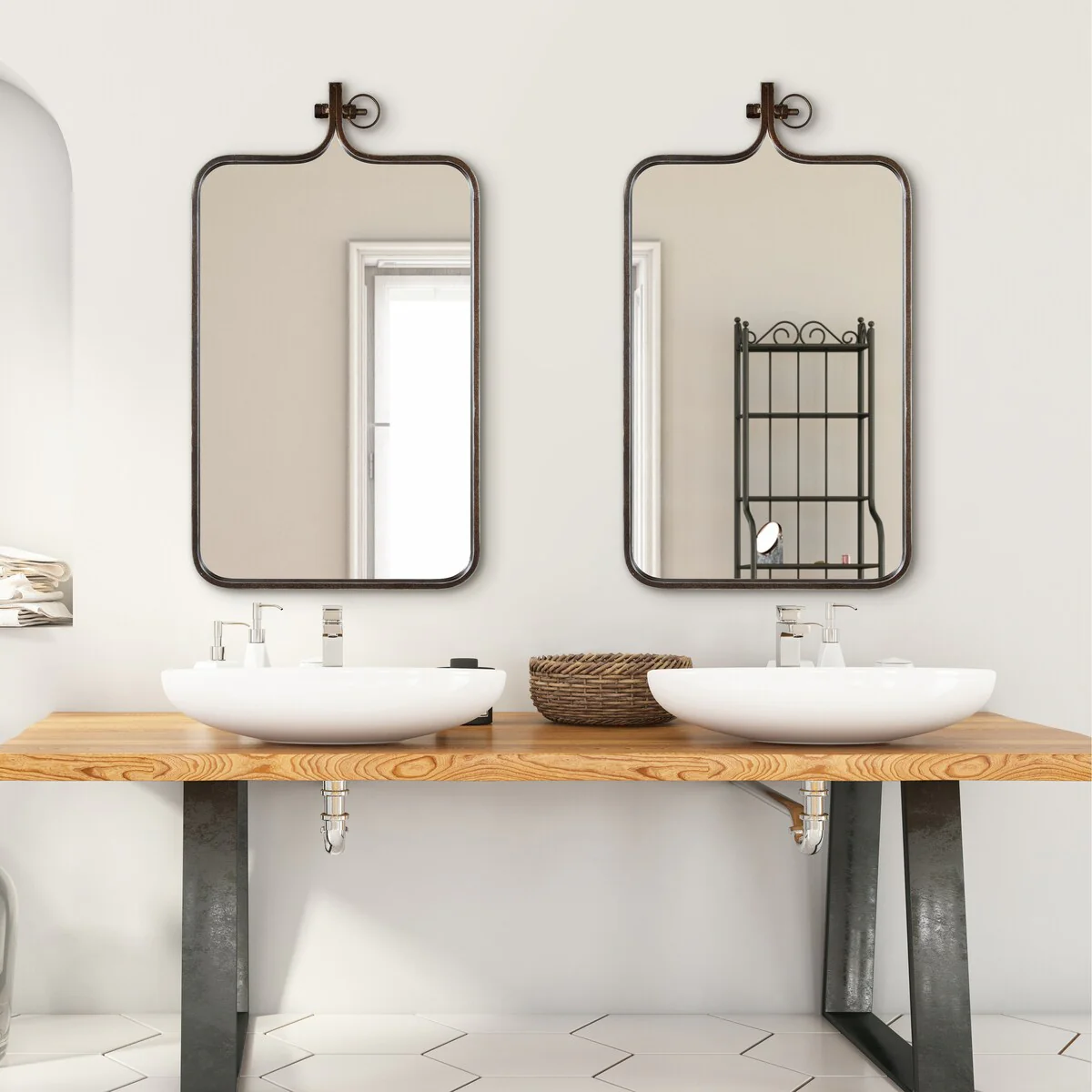 Your home deserves an accent piece that echoes the craftsmanship and charm of decades of beautiful design. Choose the Yitro mirror to allow your home a rustic, decorative piece that makes a bold statement. Inspired by the style of vintage farmhouses, the Yitro features an iron frame finished in a sophisticated bronze finish. This bronze mirror also features an ornamental metal clasp at its crown, giving it that ultimate rustic look. The Yitro mirror's rectangular shape allows you to utilize it in a variety of decor spaces: use it as a decorative feature in your living room, bedroom, entryway, or dining room. Adding a mirror to your home decor allows for more light in your space, making it feel more open, inviting, and spacious. At 20 inches wide by 1 inch deep by 35 inches tall, the Yitro rectangular mirror also makes a charming bathroom mirror above your vanity. Hang this rustic mirror in only a matter of seconds with the keyhole hanger that is welded onto the back of the Yitro's frame.