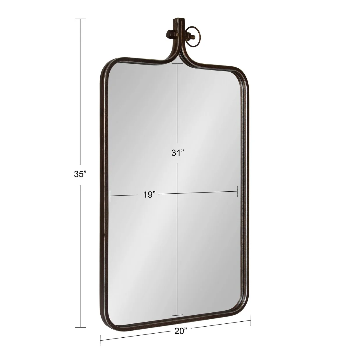 Your home deserves an accent piece that echoes the craftsmanship and charm of decades of beautiful design. Choose the Yitro mirror to allow your home a rustic, decorative piece that makes a bold statement. Inspired by the style of vintage farmhouses, the Yitro features an iron frame finished in a sophisticated bronze finish. This bronze mirror also features an ornamental metal clasp at its crown, giving it that ultimate rustic look. The Yitro mirror's rectangular shape allows you to utilize it in a variety of decor spaces: use it as a decorative feature in your living room, bedroom, entryway, or dining room. Adding a mirror to your home decor allows for more light in your space, making it feel more open, inviting, and spacious. At 20 inches wide by 1 inch deep by 35 inches tall, the Yitro rectangular mirror also makes a charming bathroom mirror above your vanity. Hang this rustic mirror in only a matter of seconds with the keyhole hanger that is welded onto the back of the Yitro's frame.