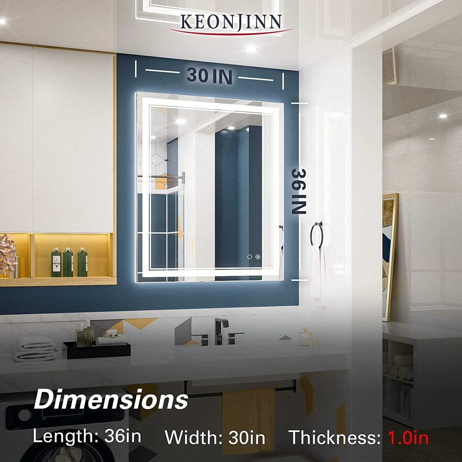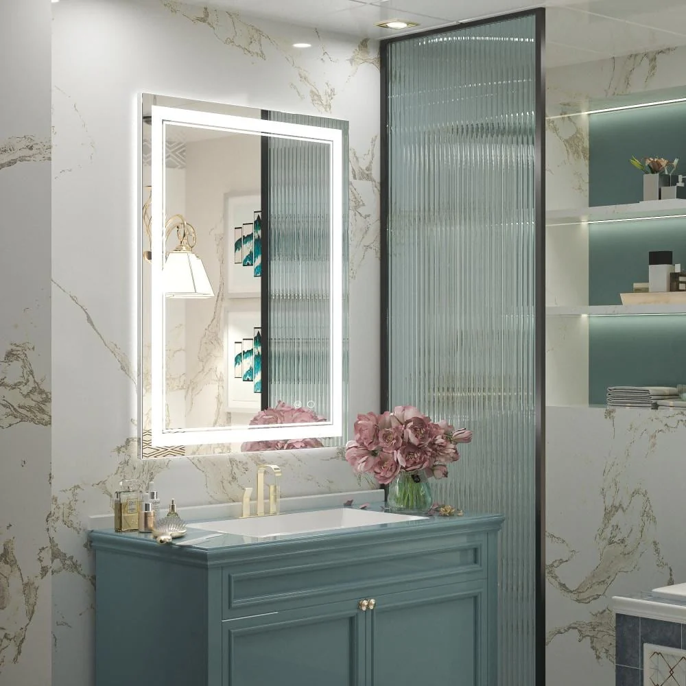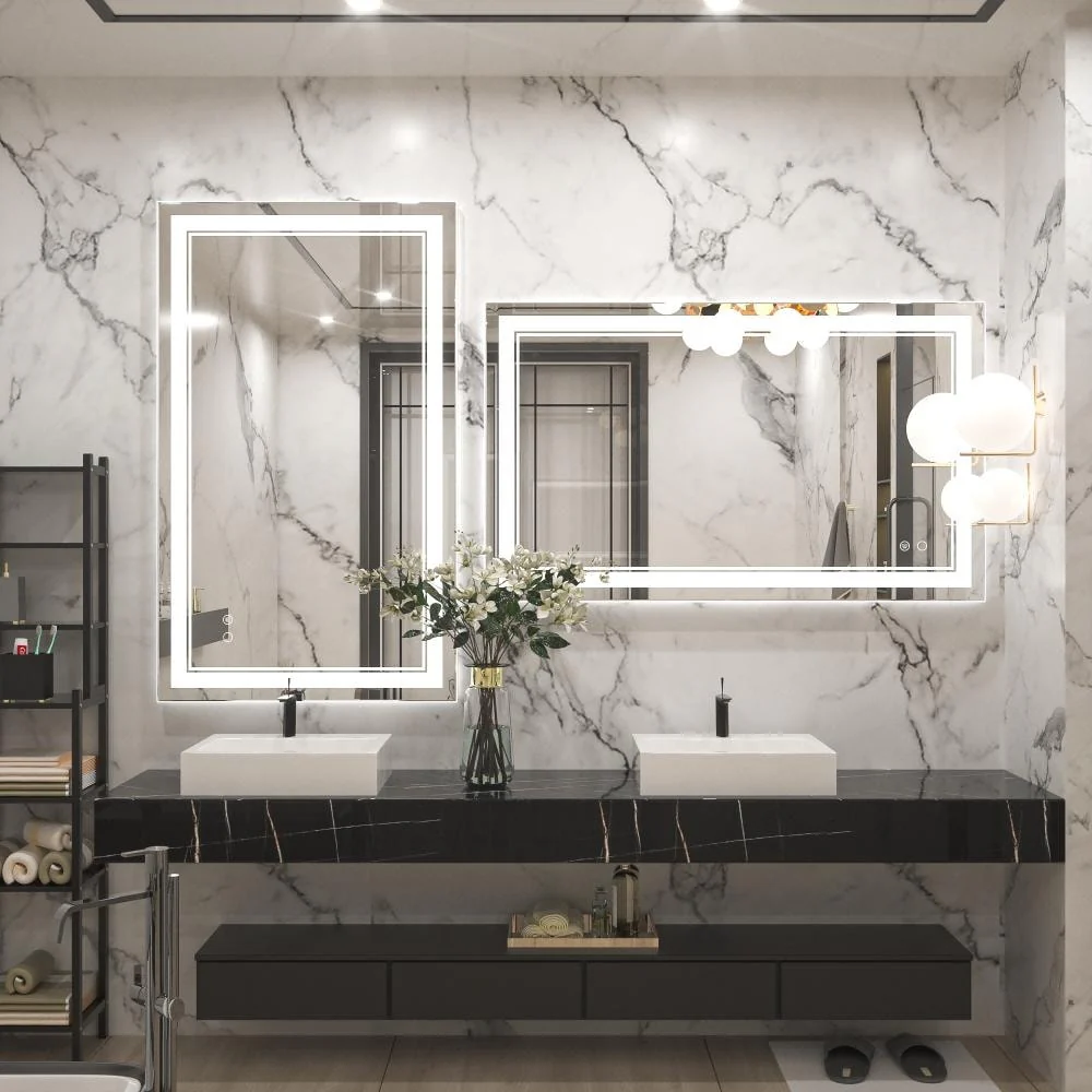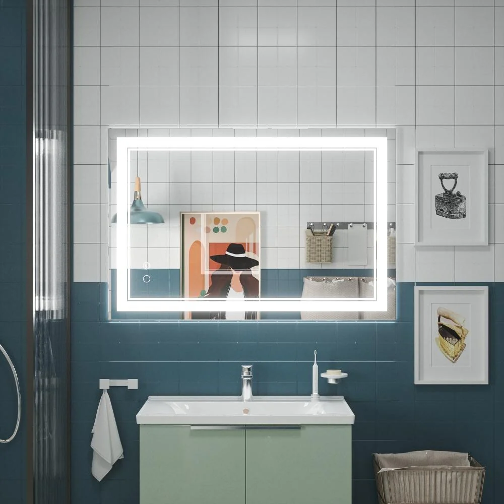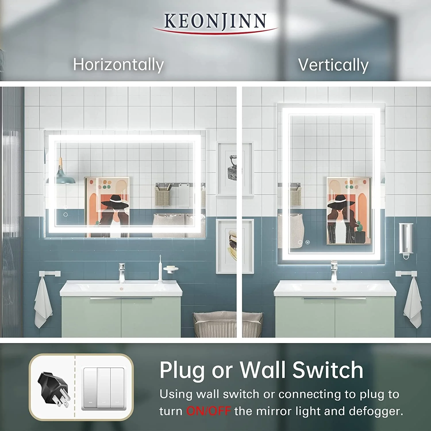 Upgrade your bathroom with the Keonjinn LED Wall Mirror. With adjustable brightness and a memory function, this mirror is perfect for all your grooming needs. Its unique design features separate power and anti-fog switches, making it both safe and energy-efficient. This high-quality mirror has a 50,000-hour LED lifetime and is made with environmentally friendly materials. The waterproof and moisture-proof backing ensures safe lighting in wet bathroom environments. An excellent addition to the bathroom, powder room, guest room, barbershop.