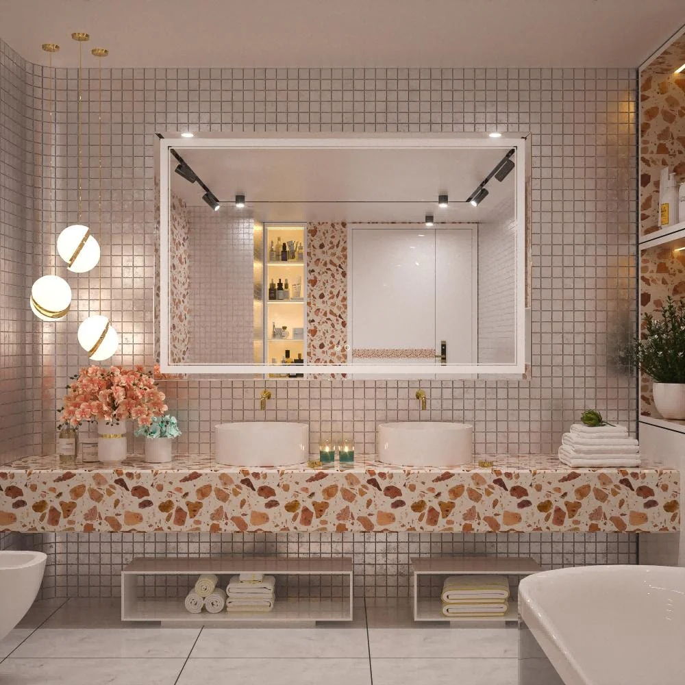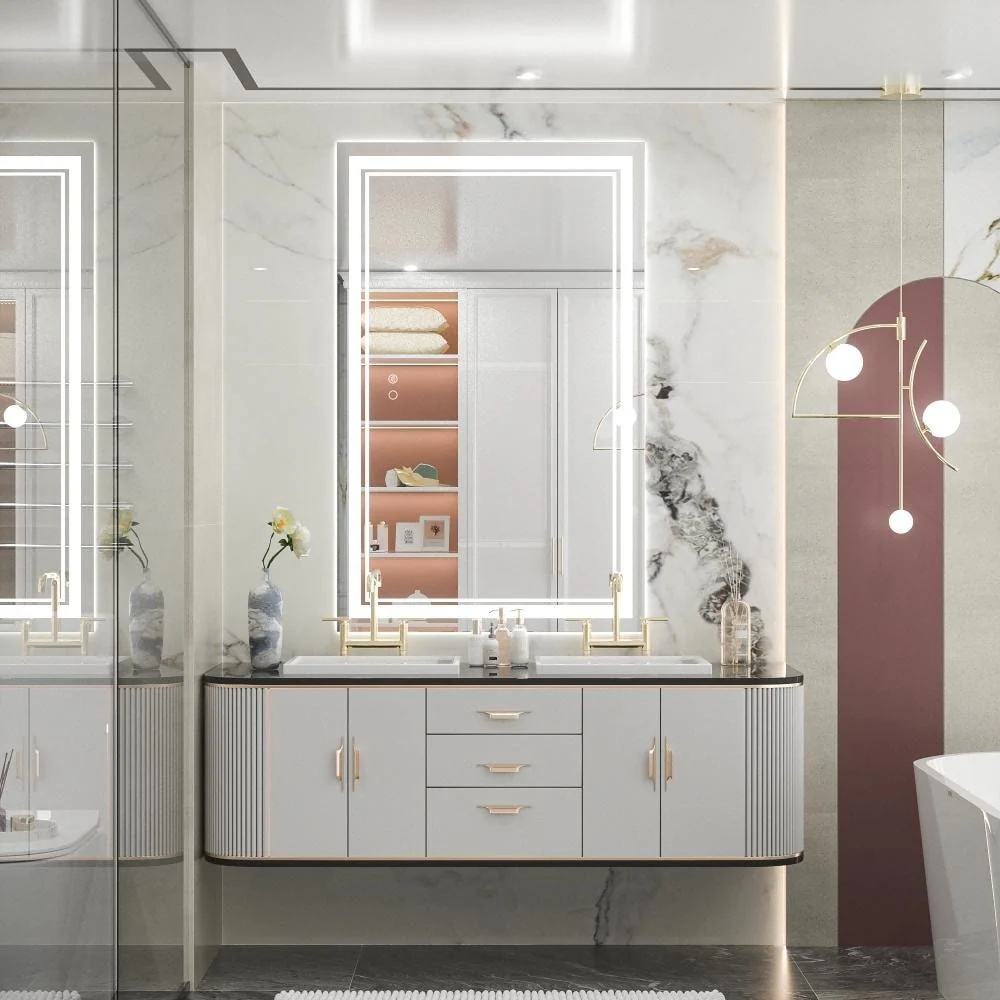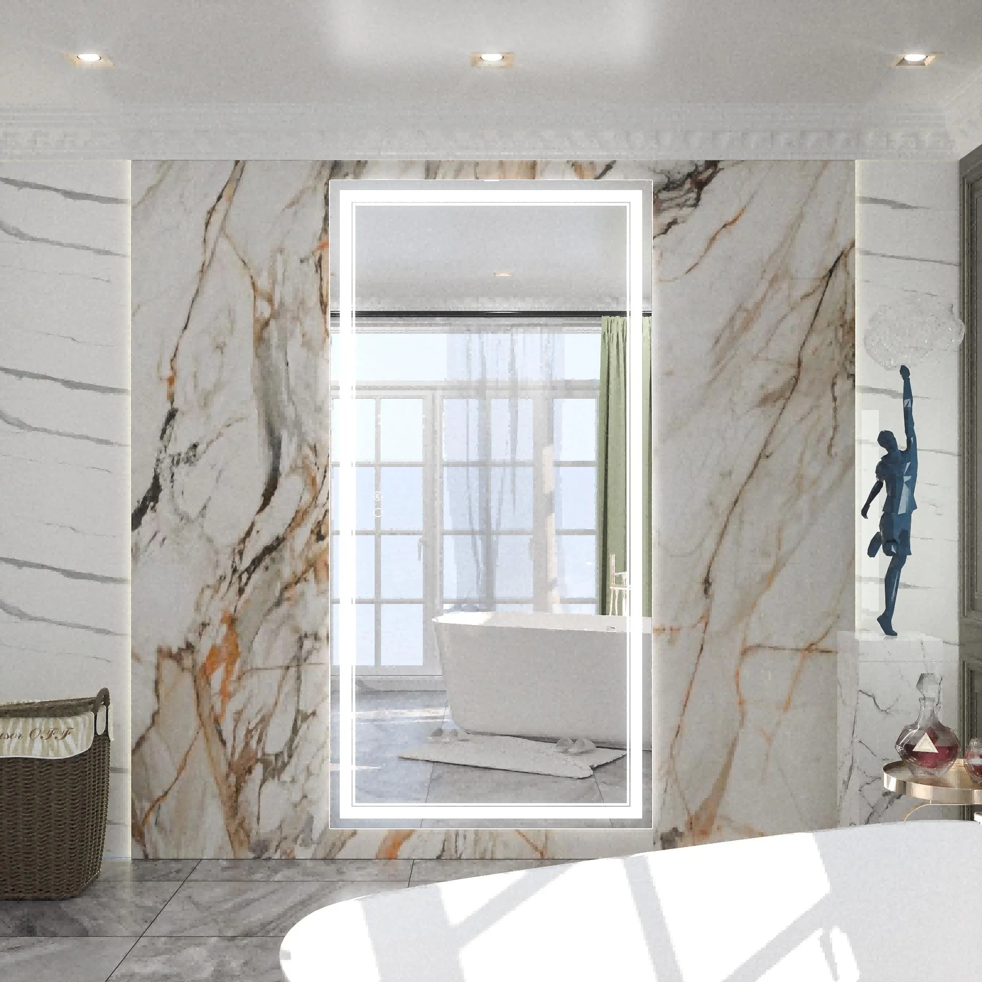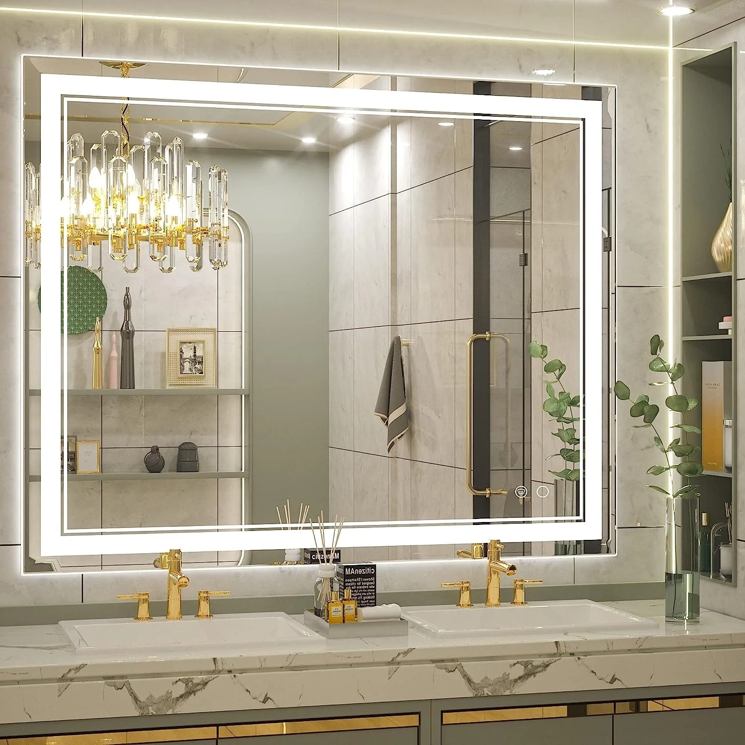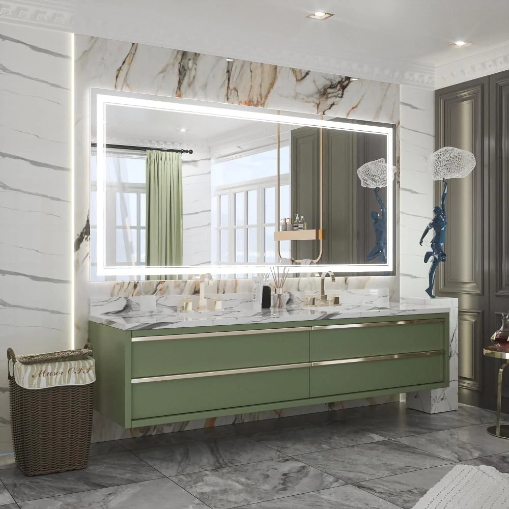 Upgrade your bathroom with the Keonjinn LED Wall Mirror. With adjustable brightness and a memory function, this mirror is perfect for all your grooming needs. Its unique design features separate power and anti-fog switches, making it both safe and energy-efficient. This high-quality mirror has a 50,000-hour LED lifetime and is made with environmentally friendly materials. The waterproof and moisture-proof backing ensures safe lighting in wet bathroom environments. An excellent addition to the bathroom, powder room, guest room, barbershop.