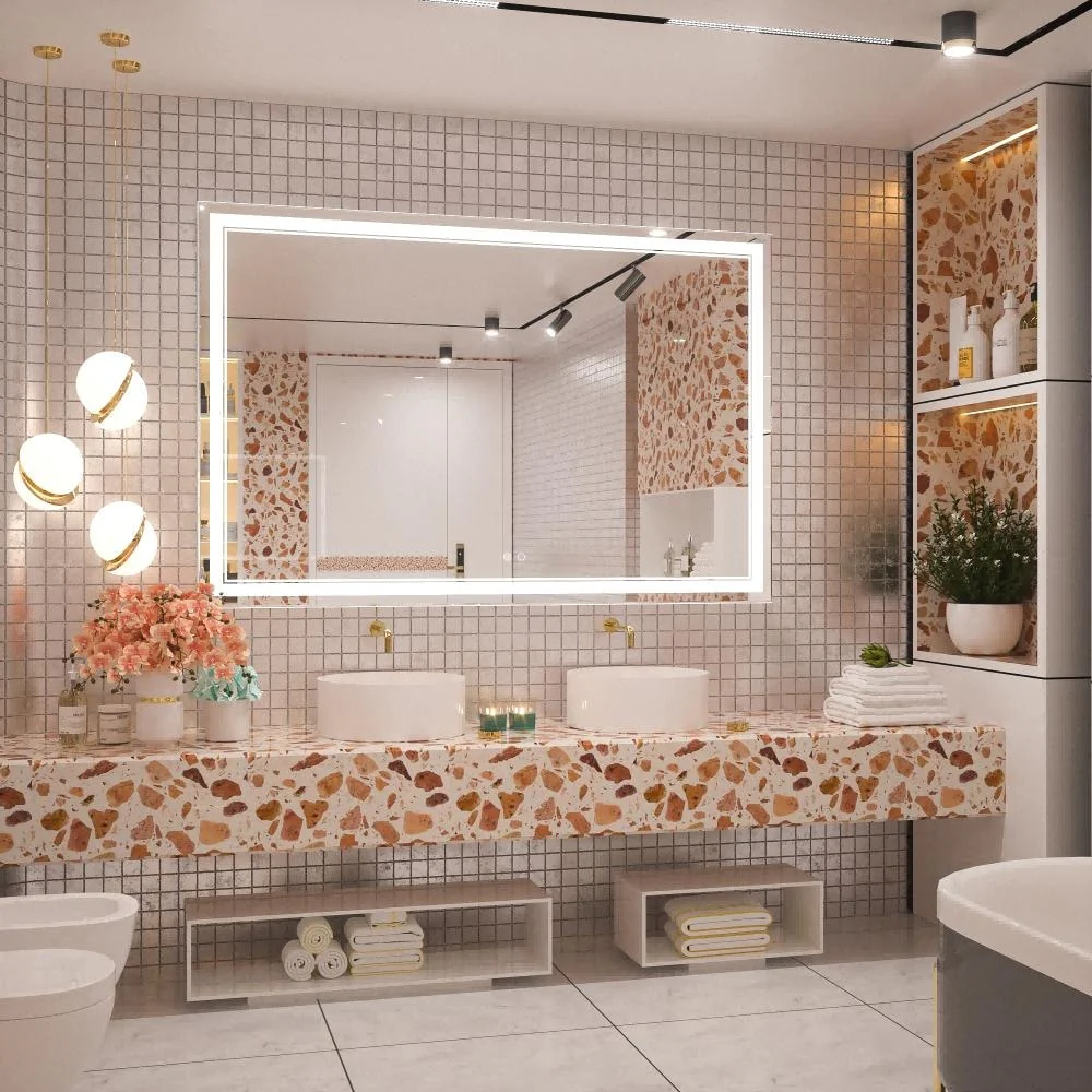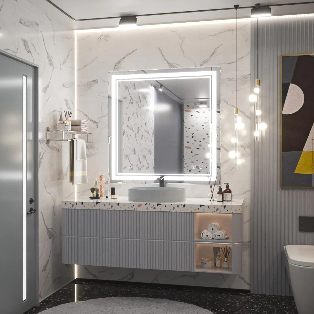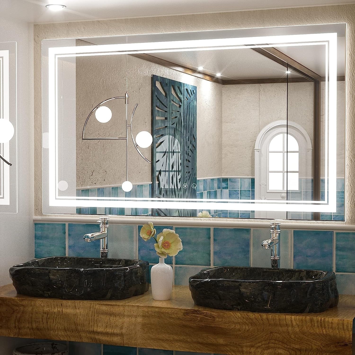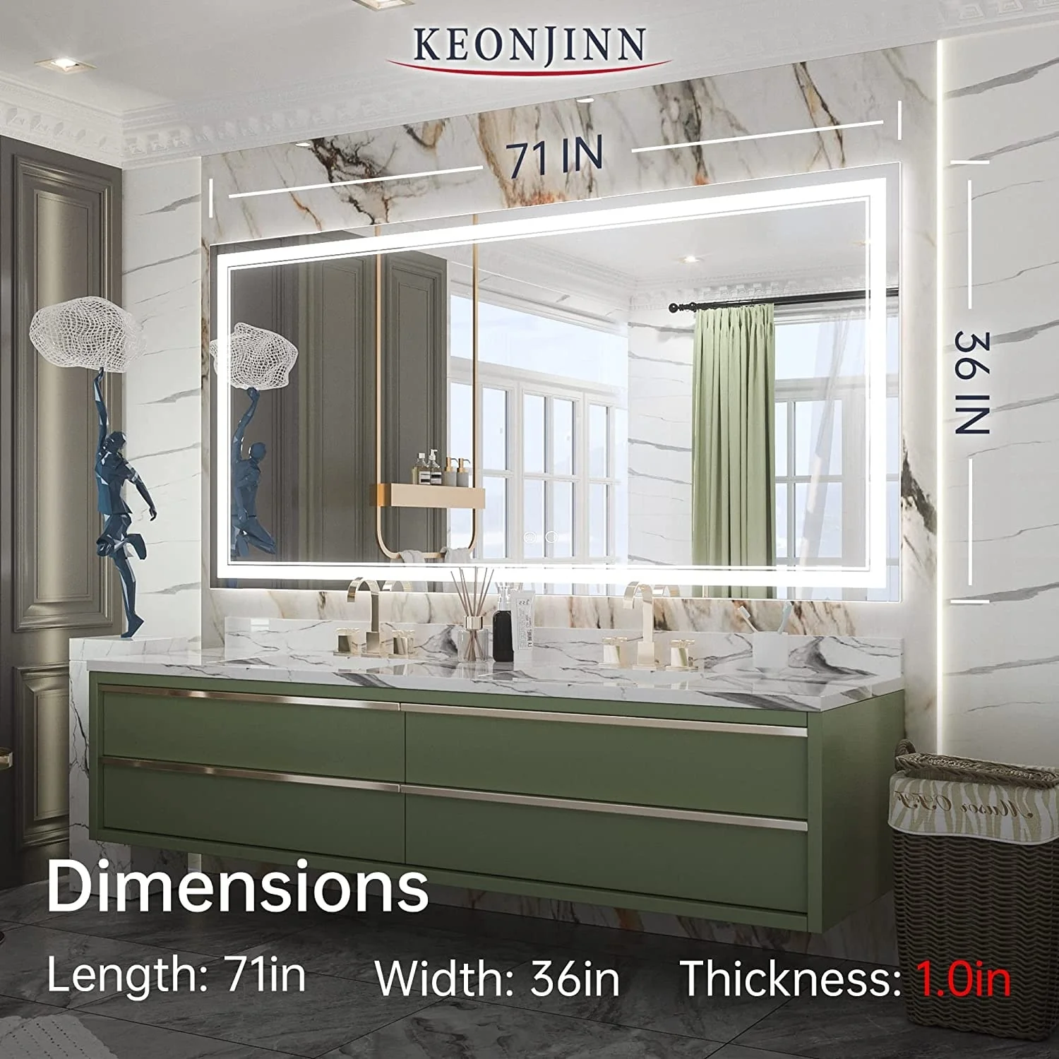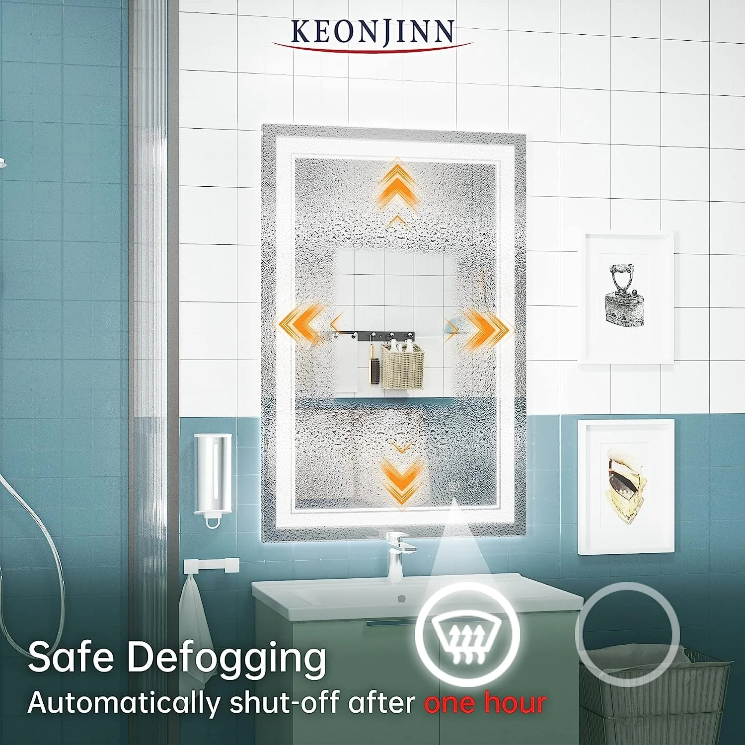 KEONJINN LED Bathroom Vanity Mirror Wall Mounted Anti-Fog Dimmable Mirror