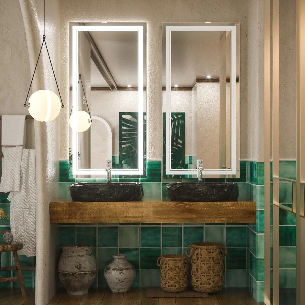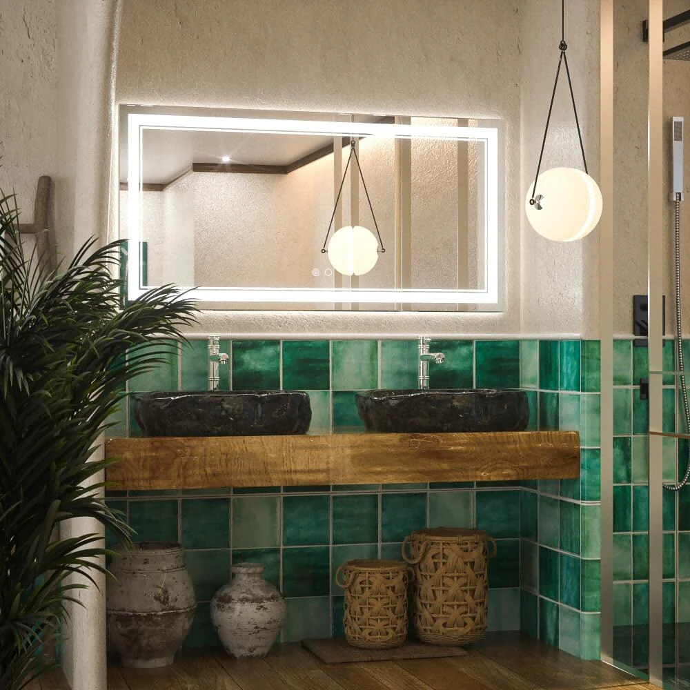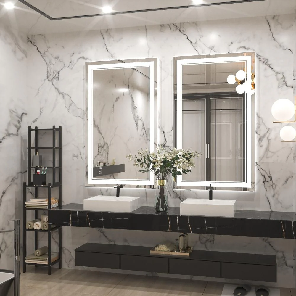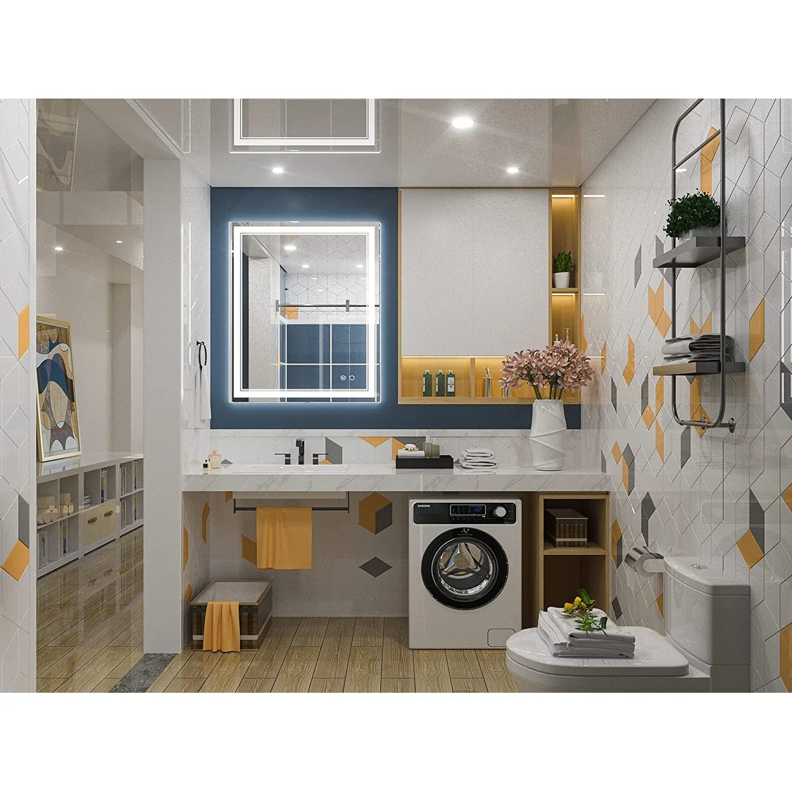 Upgrade your bathroom with the Keonjinn LED Wall Mirror. With adjustable brightness and a memory function, this mirror is perfect for all your grooming needs. Its unique design features separate power and anti-fog switches, making it both safe and energy-efficient. This high-quality mirror has a 50,000-hour LED lifetime and is made with environmentally friendly materials. The waterproof and moisture-proof backing ensures safe lighting in wet bathroom environments. An excellent addition to the bathroom, powder room, guest room, barbershop.