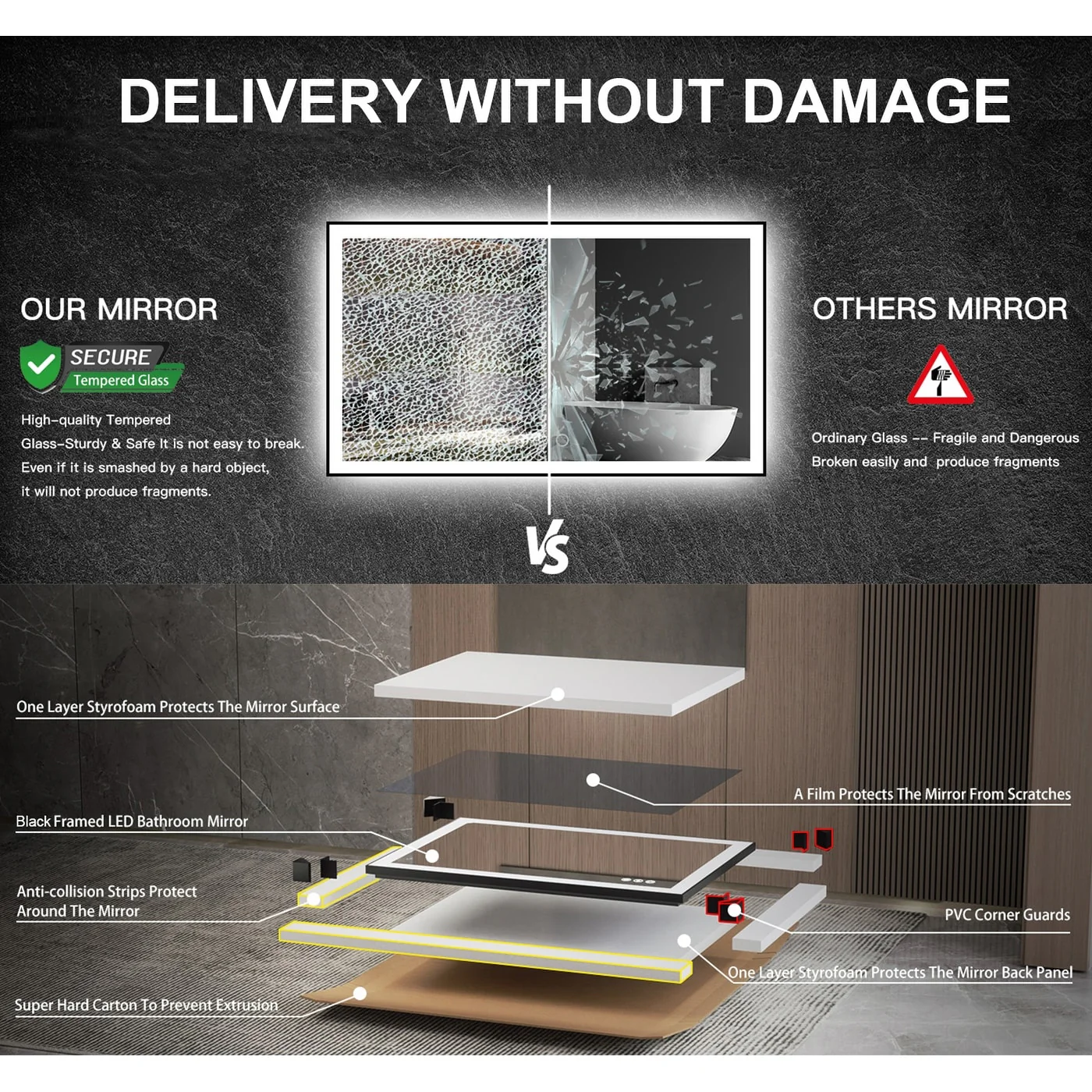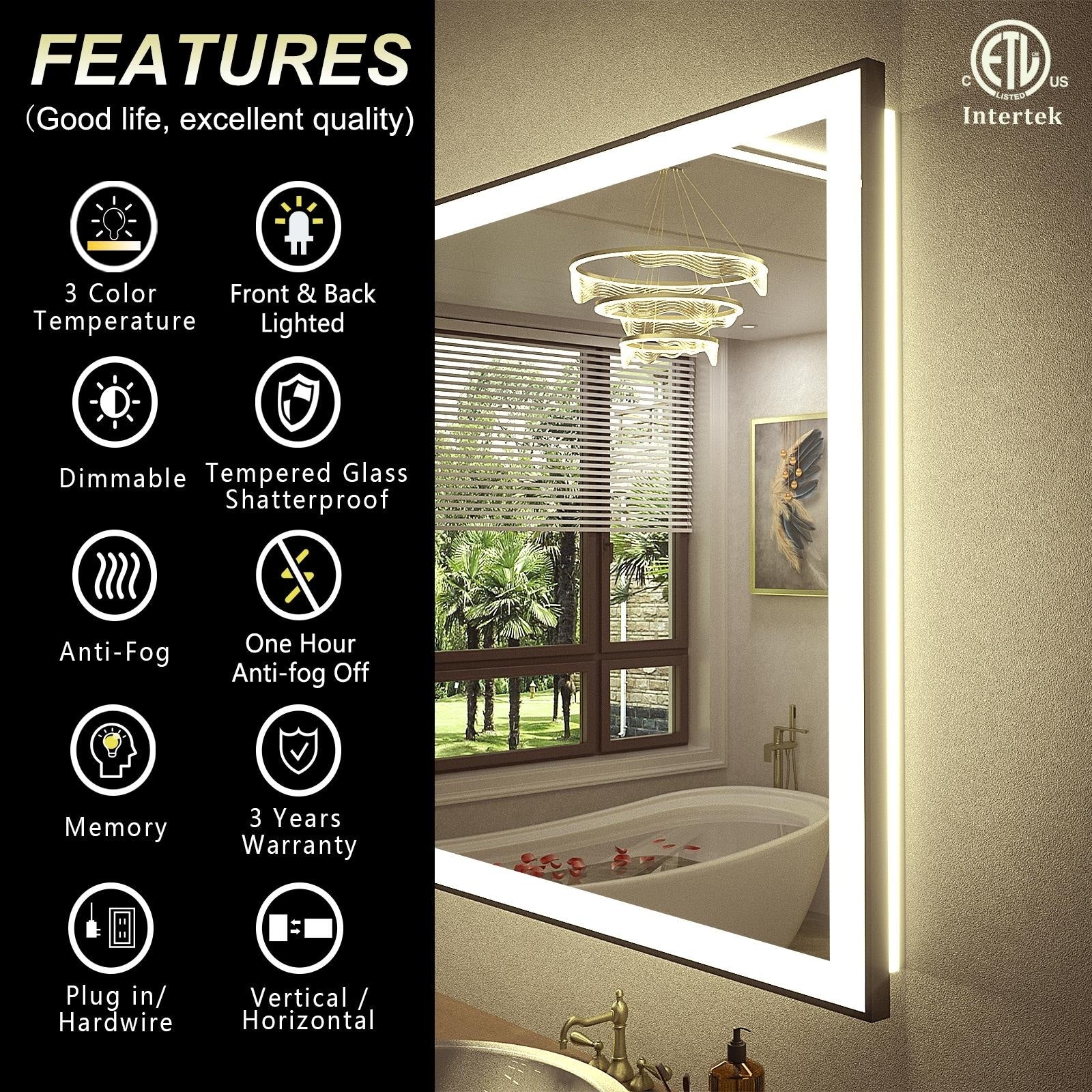- ETL Certification & 3 Years Warranty: The whole mirror has passed ETL certification and the LED driver, power supply and plug are both UL certified. We provide super long 3 years warranty, If there is any problem, please feel free to contact us.