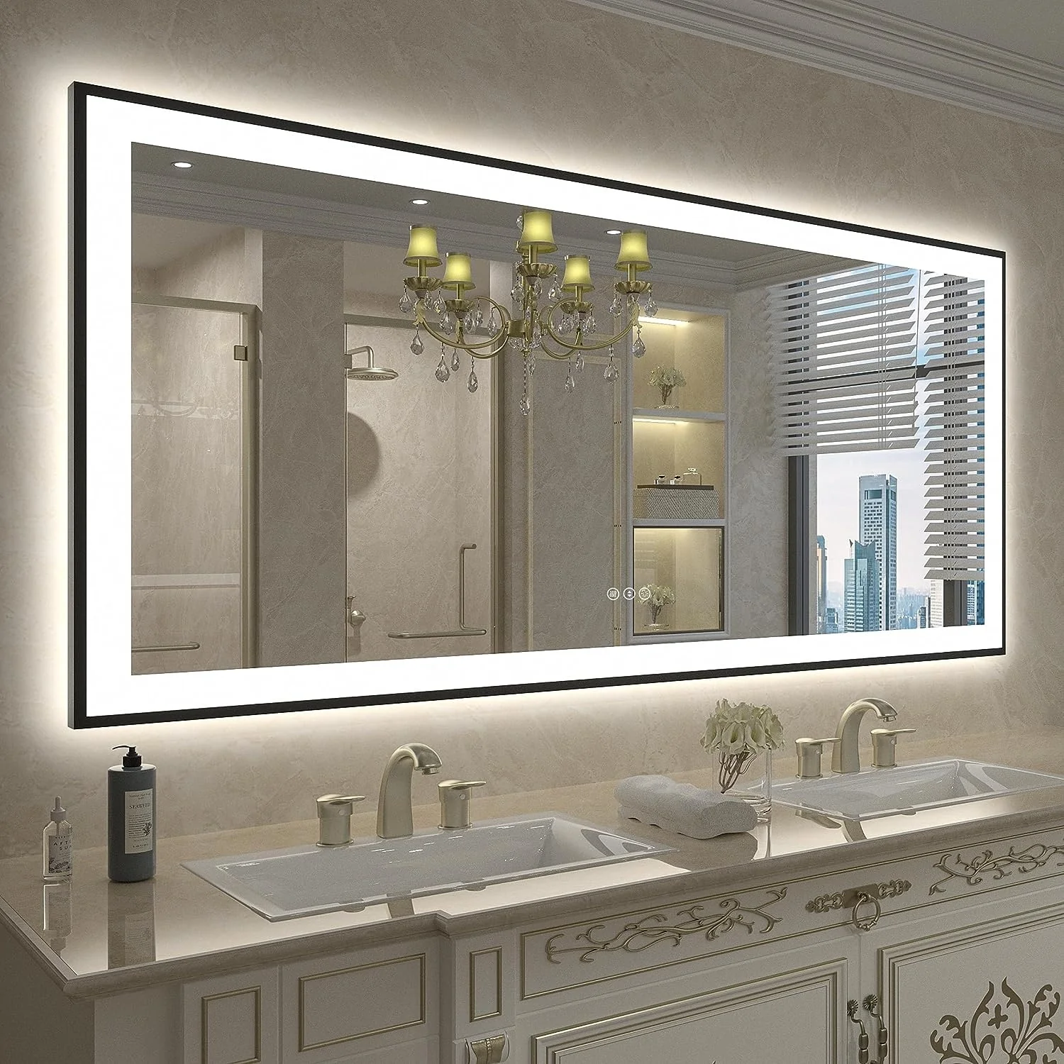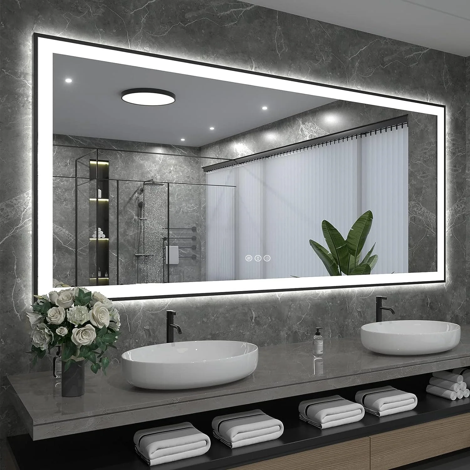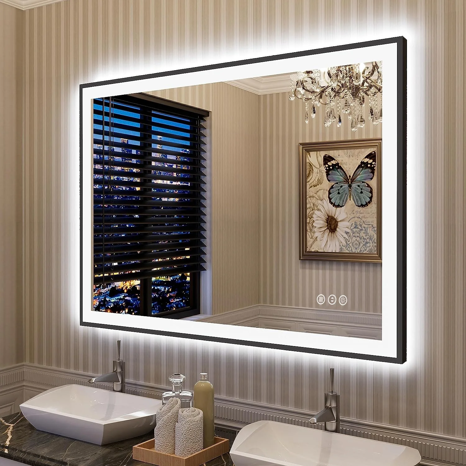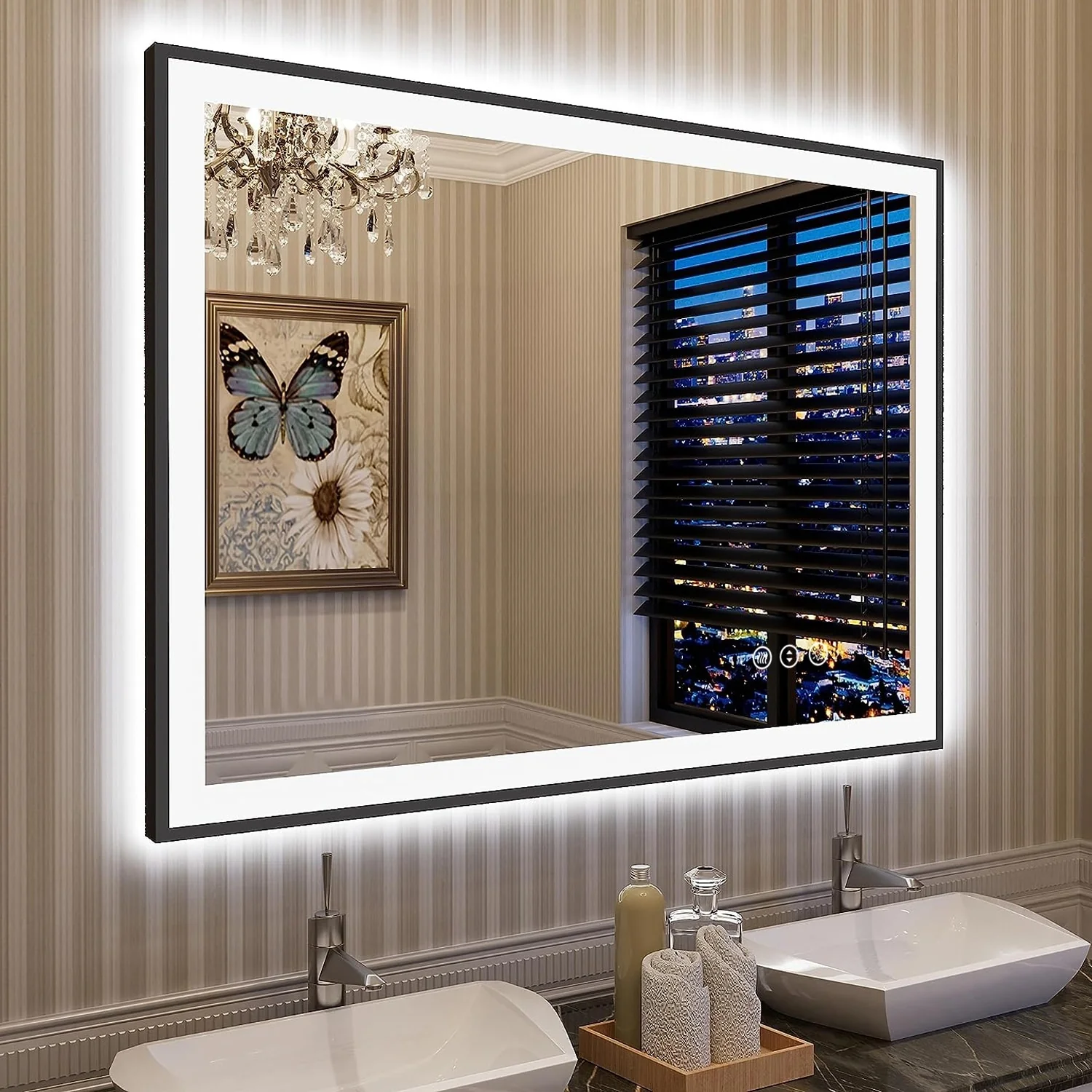 KIOTEE is offering a 3-year warranty, indicating that the materials and specifications of this product meet high standards compared to others. You can purchase with confidence! This LED mirror adopts 24-volt output voltage super-bright real CRI90+ 192 leds/m light strip (others are 12-volt low-power light strips, not bright enough.), tempered glass material (almost unbreakable) and corrosion-resistant powder coating process metal frame. 3 color temperature and brightness adjustment, smart anti-fog design, brings a modern look to your home.