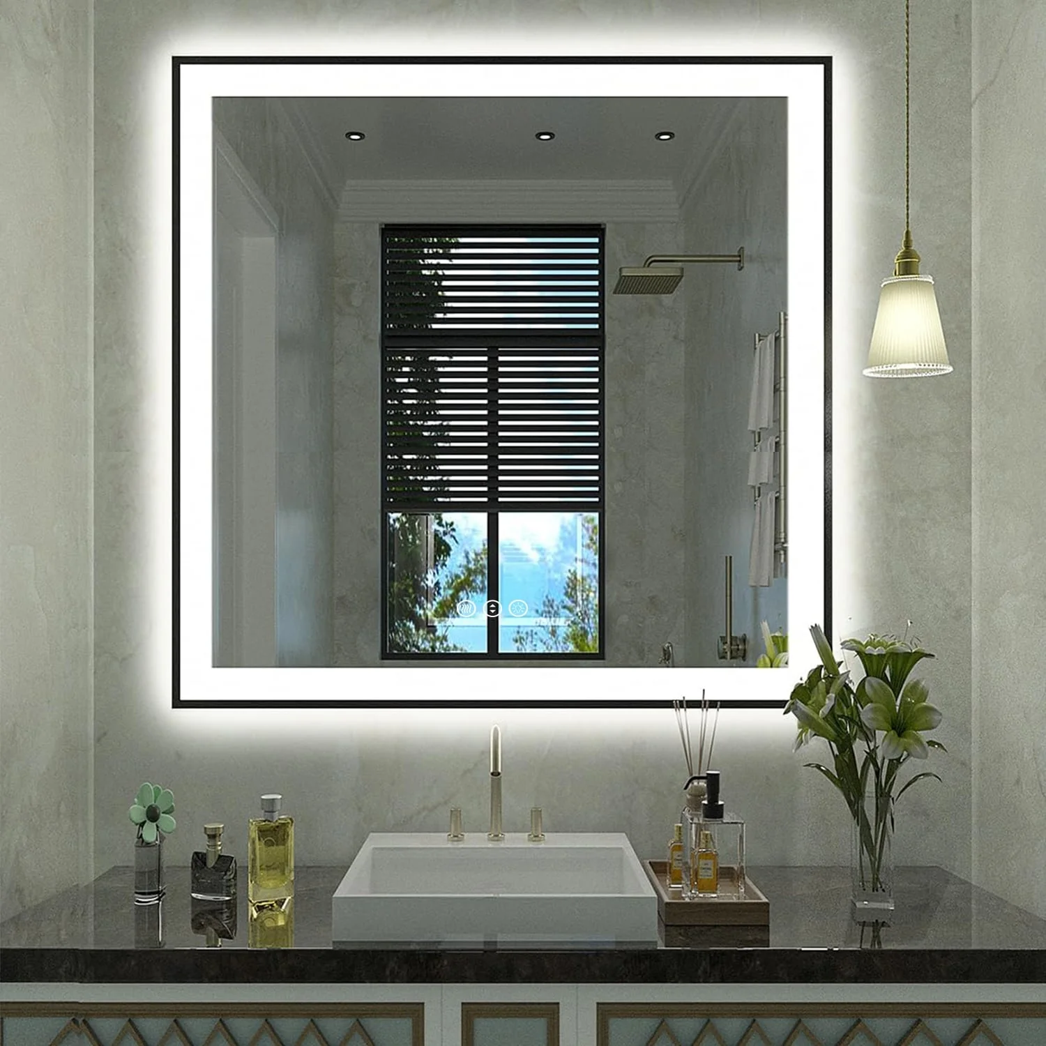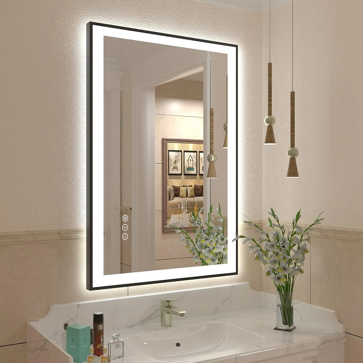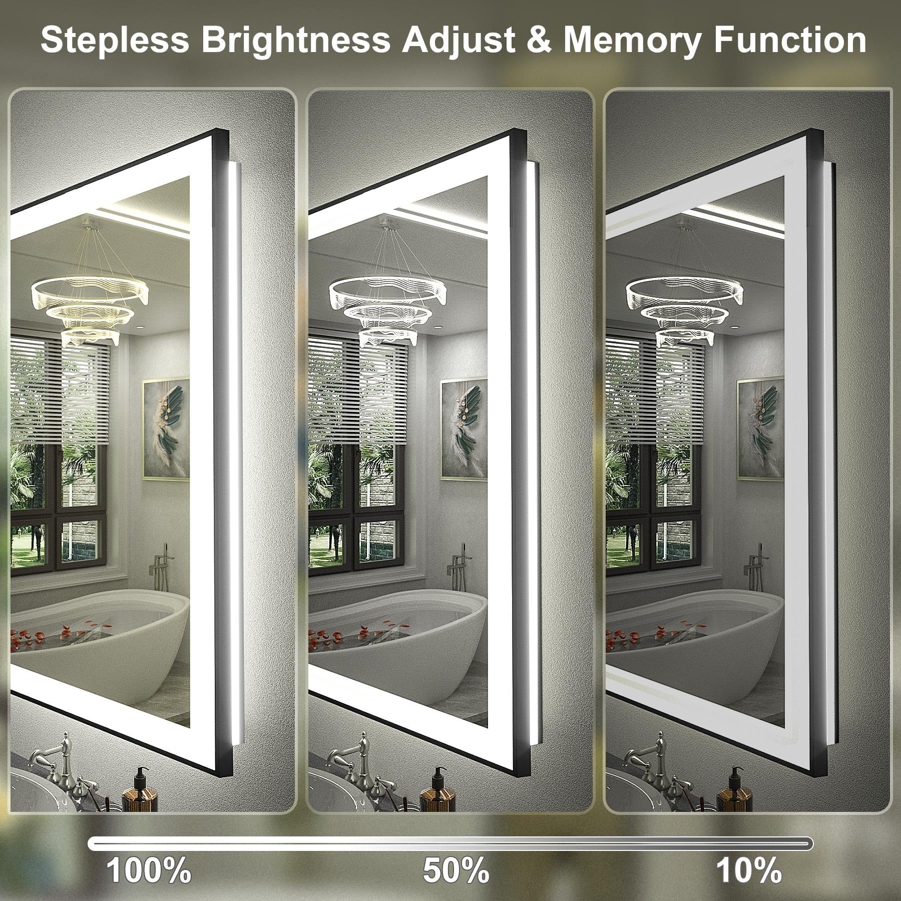 KIOTEE is offering a 3-year warranty, indicating that the materials and specifications of this product meet high standards compared to others. You can purchase with confidence! This LED mirror adopts 24-volt output voltage super-bright real CRI90+ 192 leds/m light strip (others are 12-volt low-power light strips, not bright enough.), tempered glass material (almost unbreakable) and corrosion-resistant powder coating process metal frame. 3 color temperature and brightness adjustment, smart anti-fog design, brings a modern look to your home.