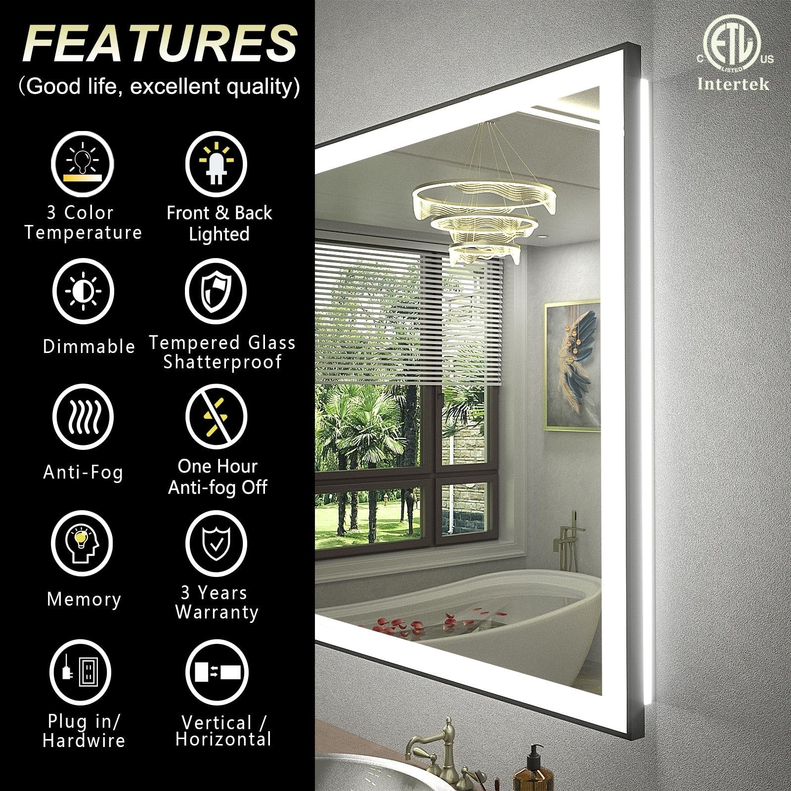 - ETL Certification & 3 Years Warranty: The whole mirror has passed ETL certification and the LED driver, power supply and plug are both UL certified. We provide super long 3 years warranty, If there is any problem, please feel free to contact us.