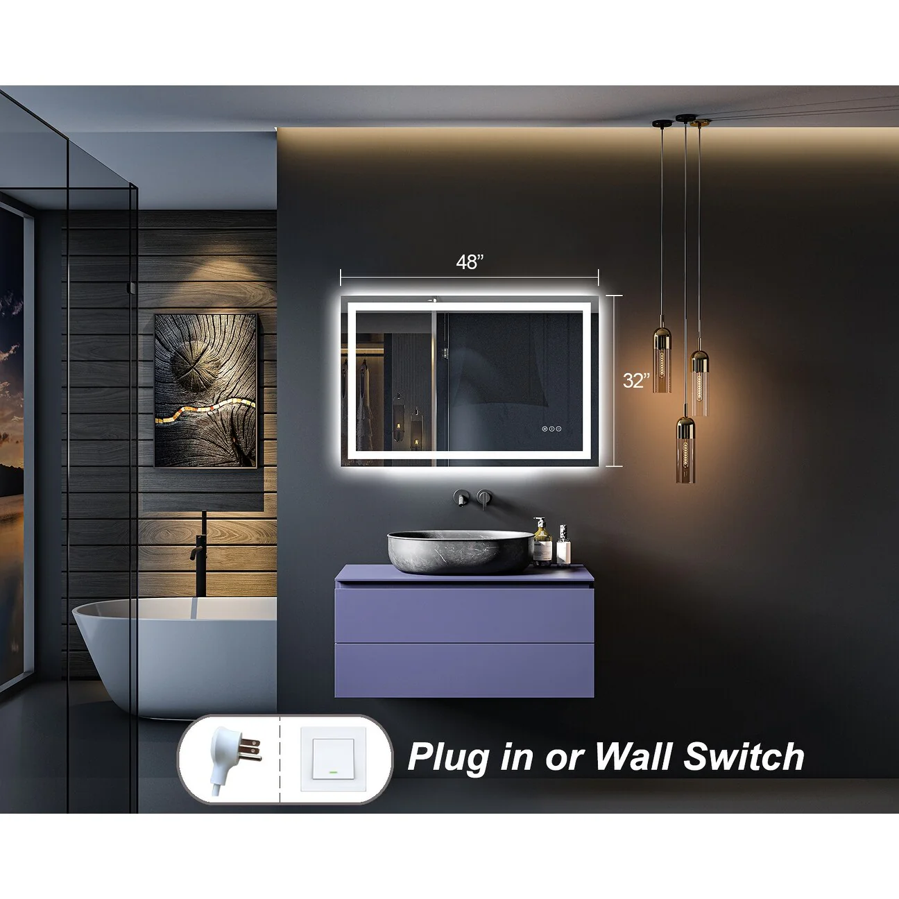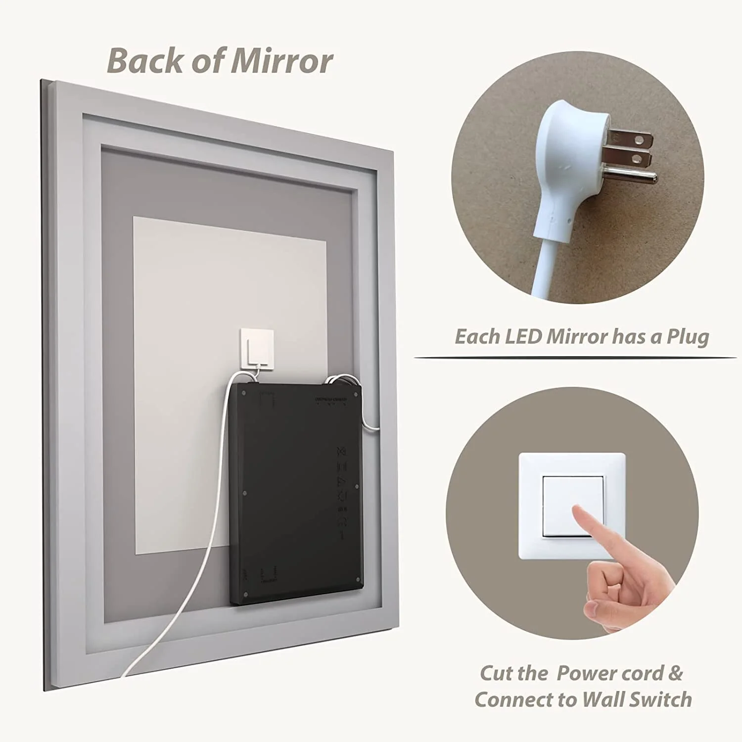 - French cleat mounting: with the included screws and French cleat brackets, you can easily install the mirror horizontally or vertically. Support two installation methods (plugin / hardwired), and if you want to hard-wire to a wall switch, you have to cut the mirror power cord and hard-wire it.