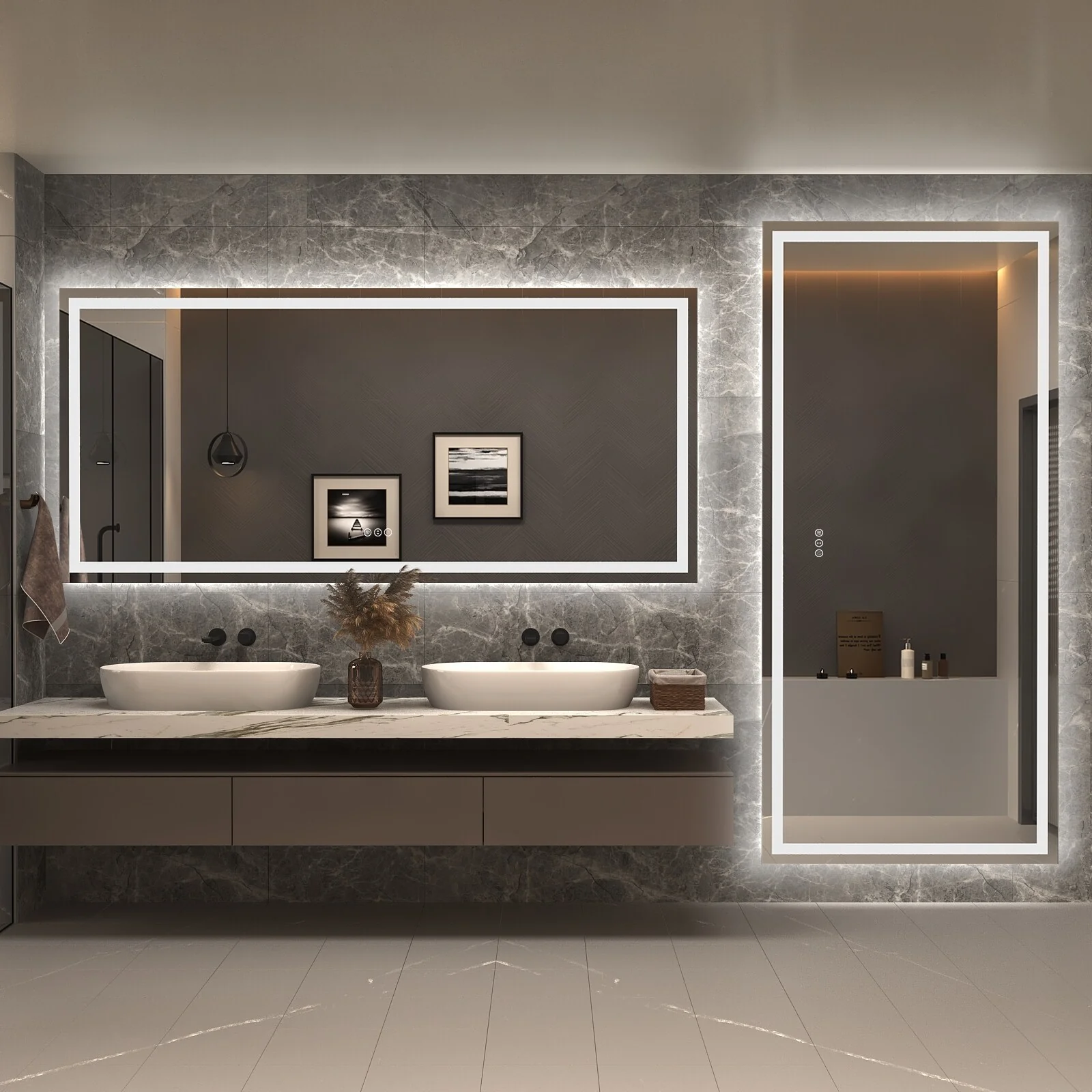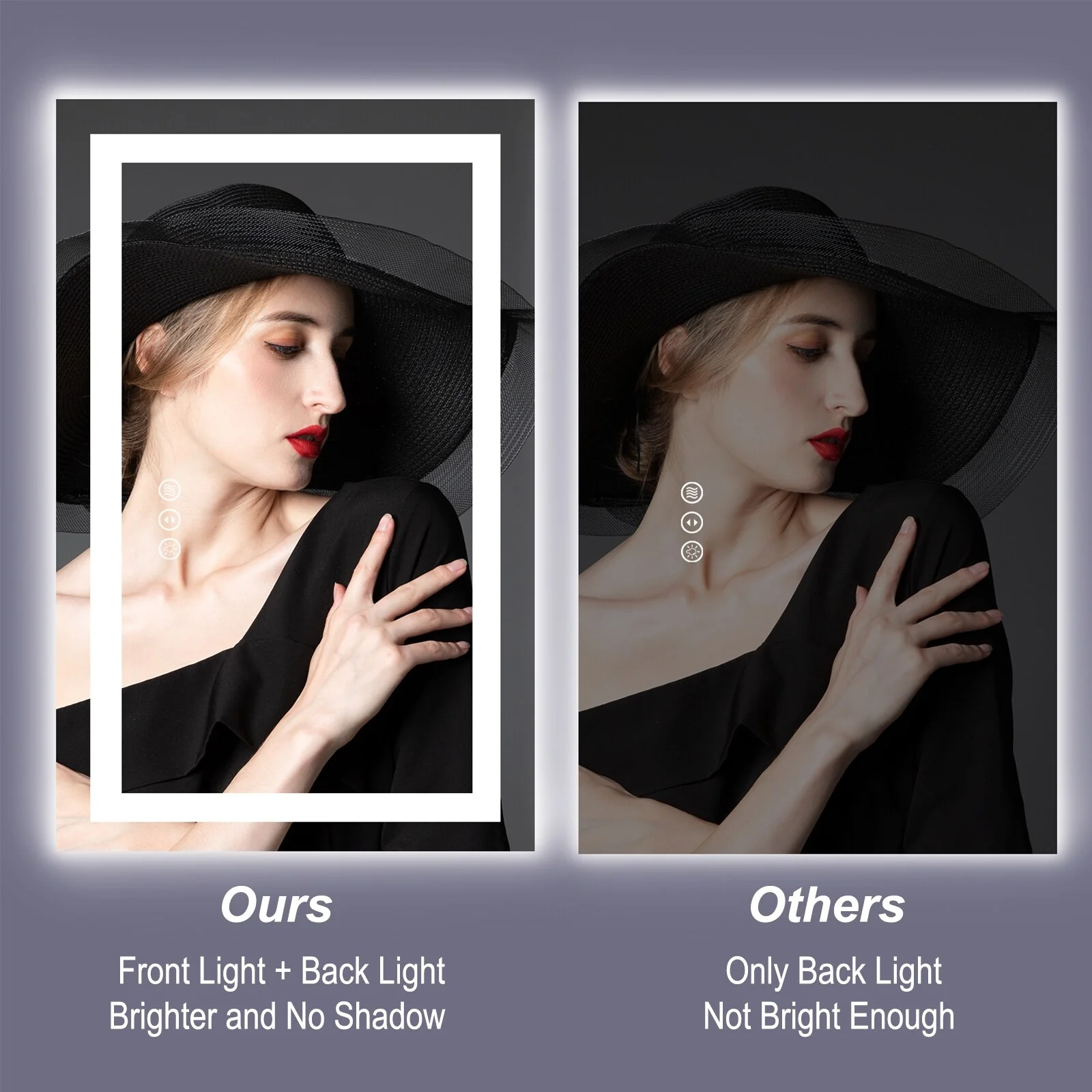- Super bright front-lit & backlit: adopt 24-volt (others are 12-volt, the brightness is halved.) real cri90+ high-density 192 leds/m light strips, the light is bright enough for makeup, shaving, or beauty treatments; ideal for bathroom, bedroom, closet, or hallway. Led lifetime is 50,000 hours. (use a mirror for 3 hours a day and it can last 45 years.)