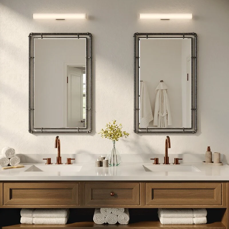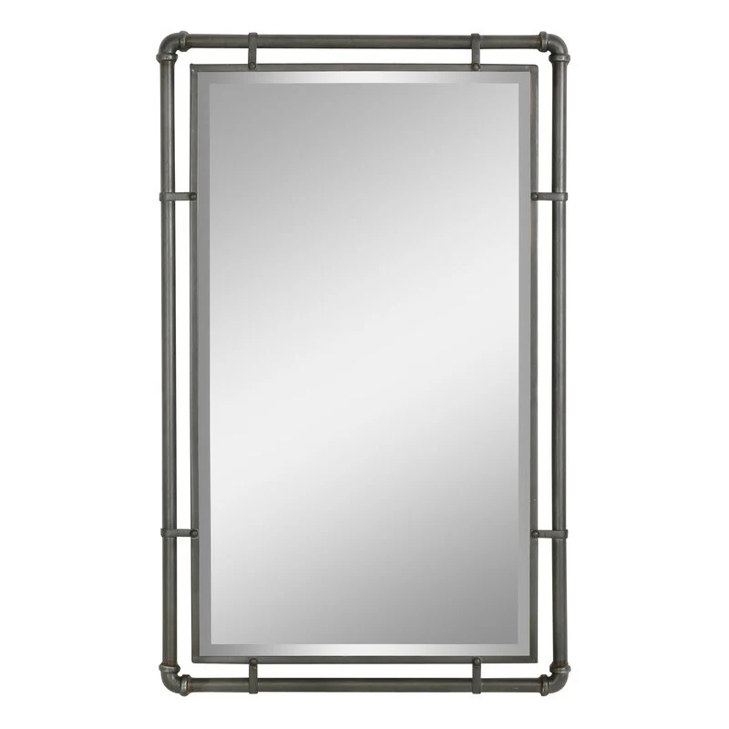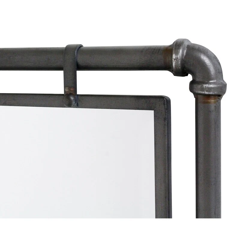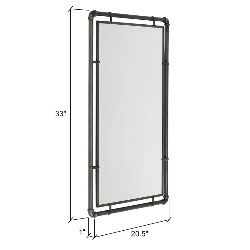 Introducing the Morse Rectangular Industrial Grey Metal Bathroom Vanity Wall Mirror Set, where industrial inspiration meets rustic elegance. Crafted with precision, these iron mirrors feature a robust frame adorned with pipe ironwork, exuding raw industrial charm. Versatile in placement, the dark antique grey finish is well suited for matching a variety of �fixtures, including antique bronze bathroom fixtures or other contrasting colors. The beveled mirrors enhance depth and dimension, skillfully capturing and amplifying light to illuminate any setting with finesse. Tailored for industrial and modern interiors, the Morse Rectangular Industrial Grey Metal Bathroom Vanity Wall Mirror Set epitomizes timeless style, enriching spaces with its bold presence and subtle allure. �