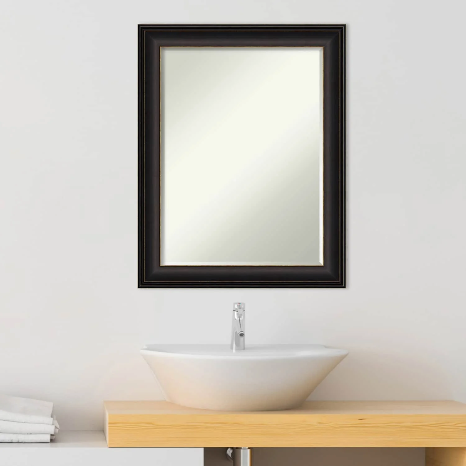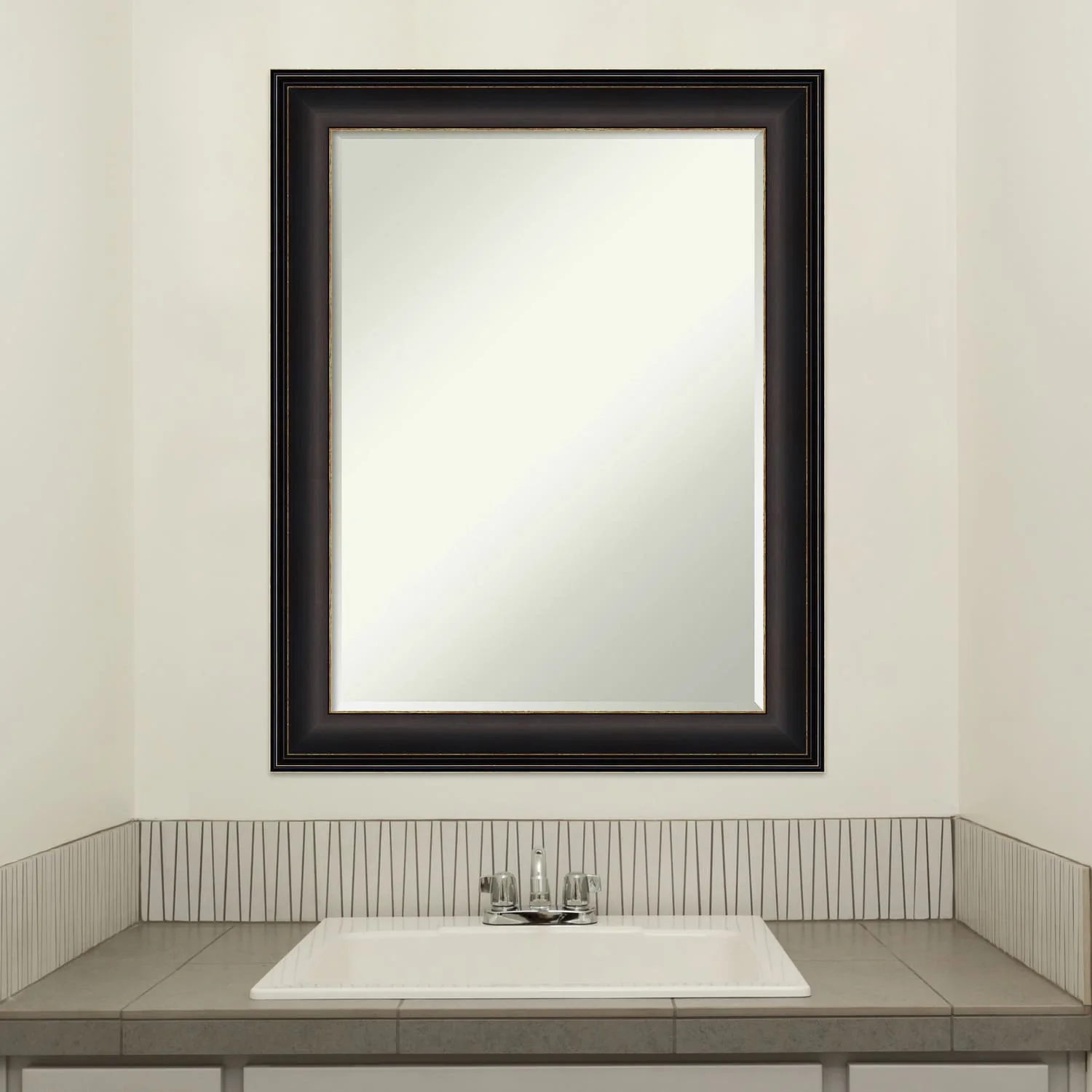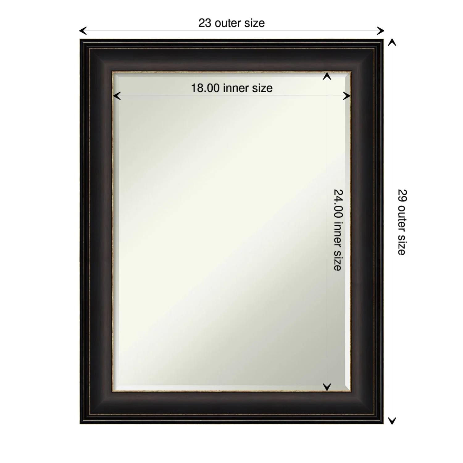 - MIRROR DETAILS: This mirror features premium glass for a clear, undistorted image and is finished with a petite 1/2-inch beveled edge which is more delicate than a traditional bevel.