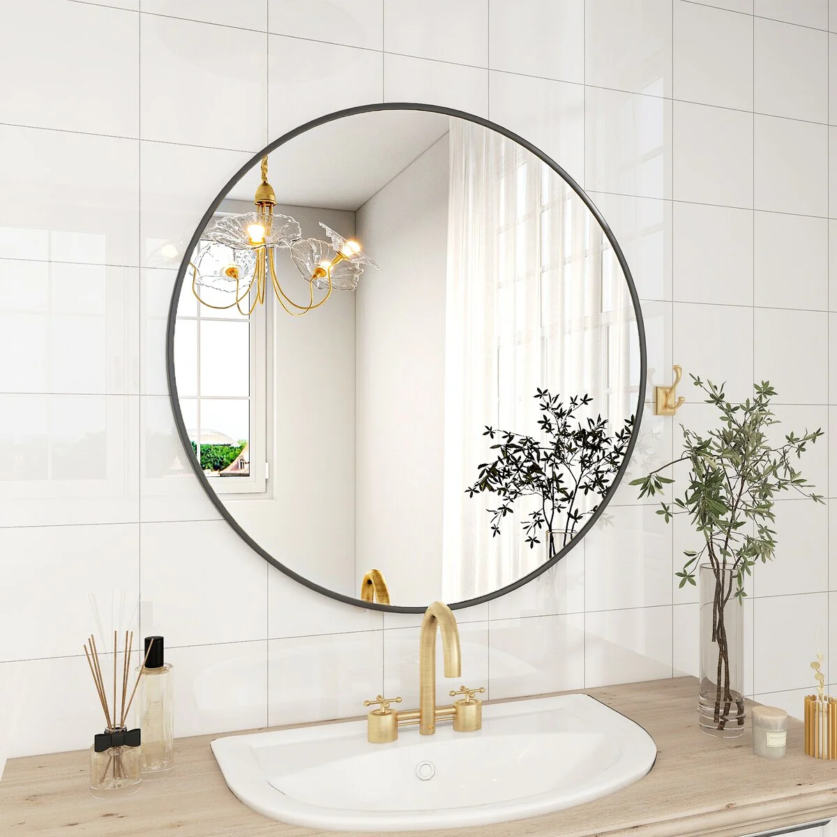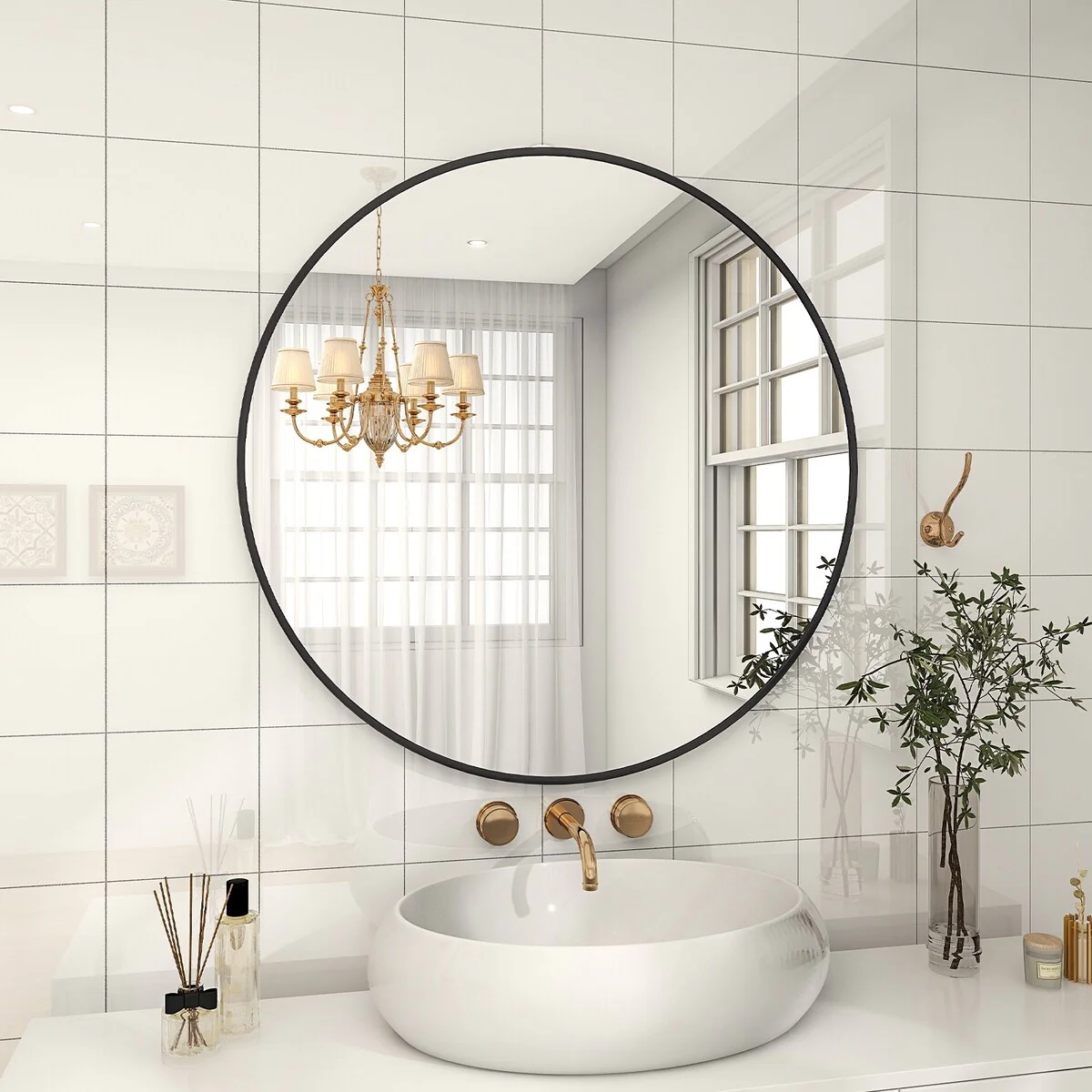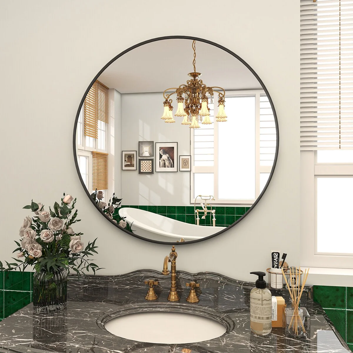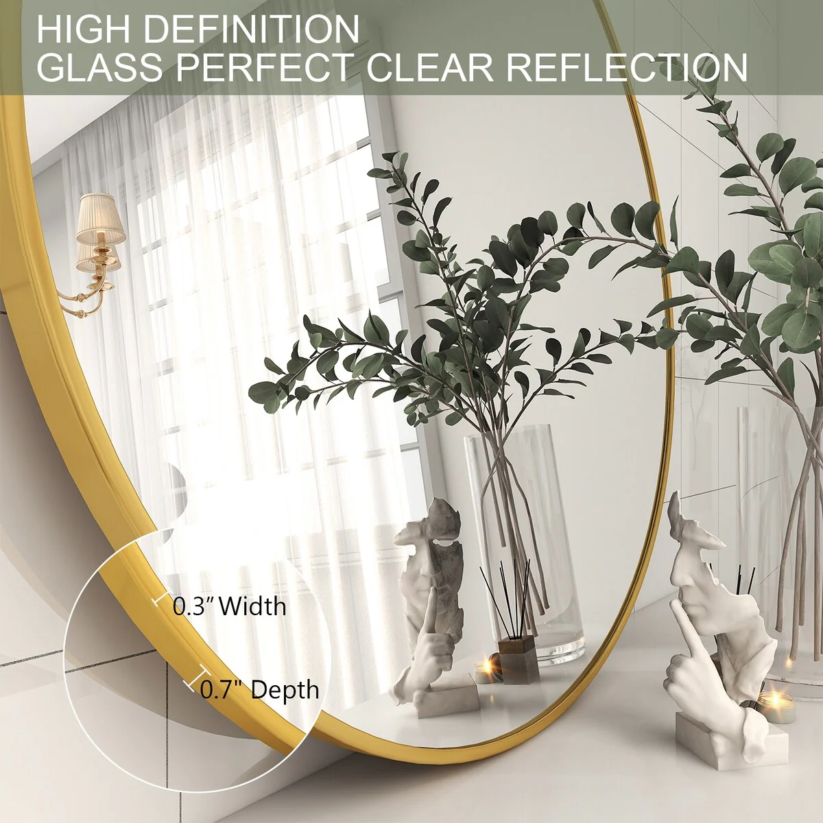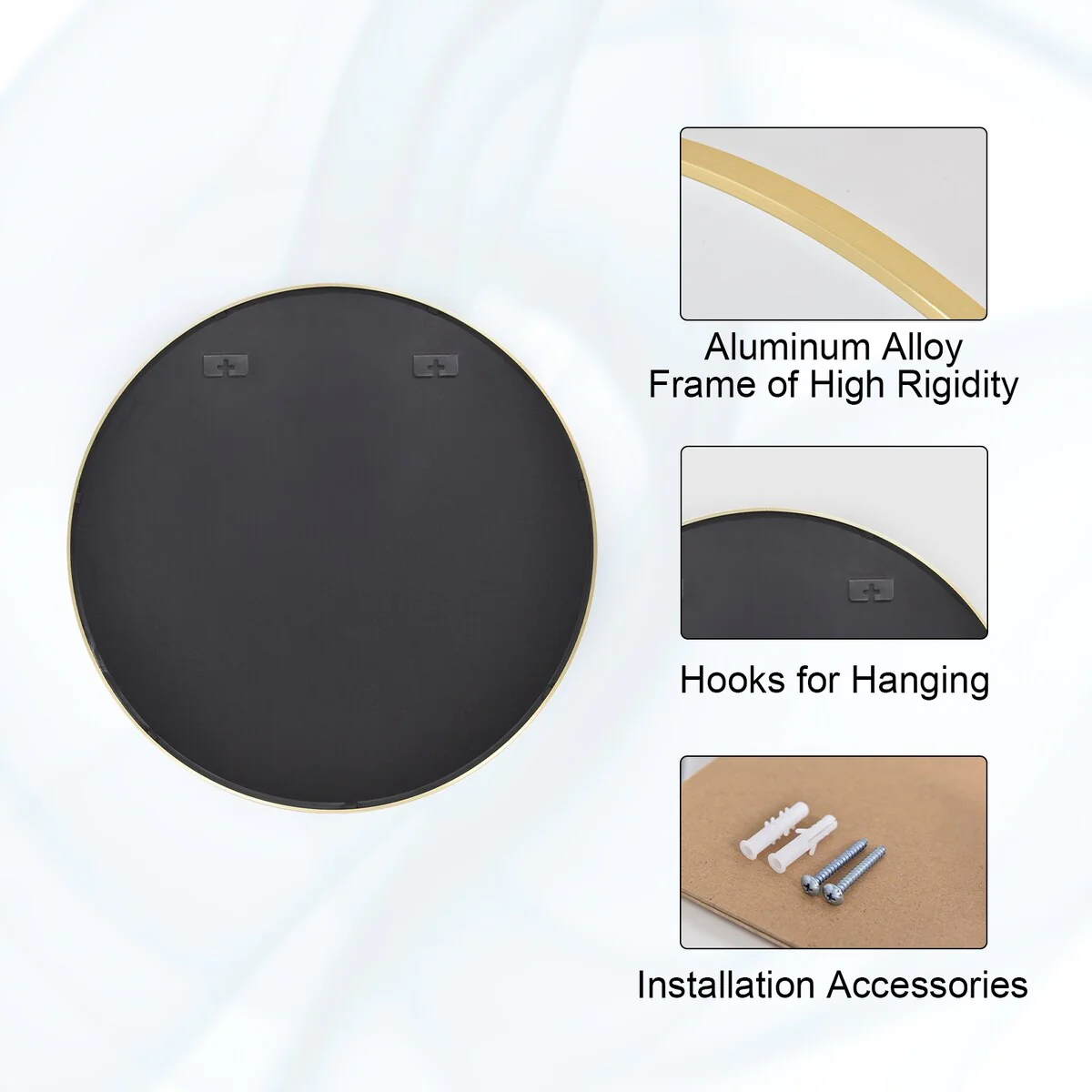 Features:Crystal Clear ReflectionShatter-proof membrane, scatter preventionEasy to InstallAdapting to Various FieldMore color and size optionsProduct Description:Size:24 / 30 / 36 Inches (Deviation may exist as the dimensions are measured manually)Material: Aluminum Alloy & GlassDesign: Thin frame, multipurpose, explosion-proof glassColor select: Black / GoldMounting Ways: Hanging on the wall