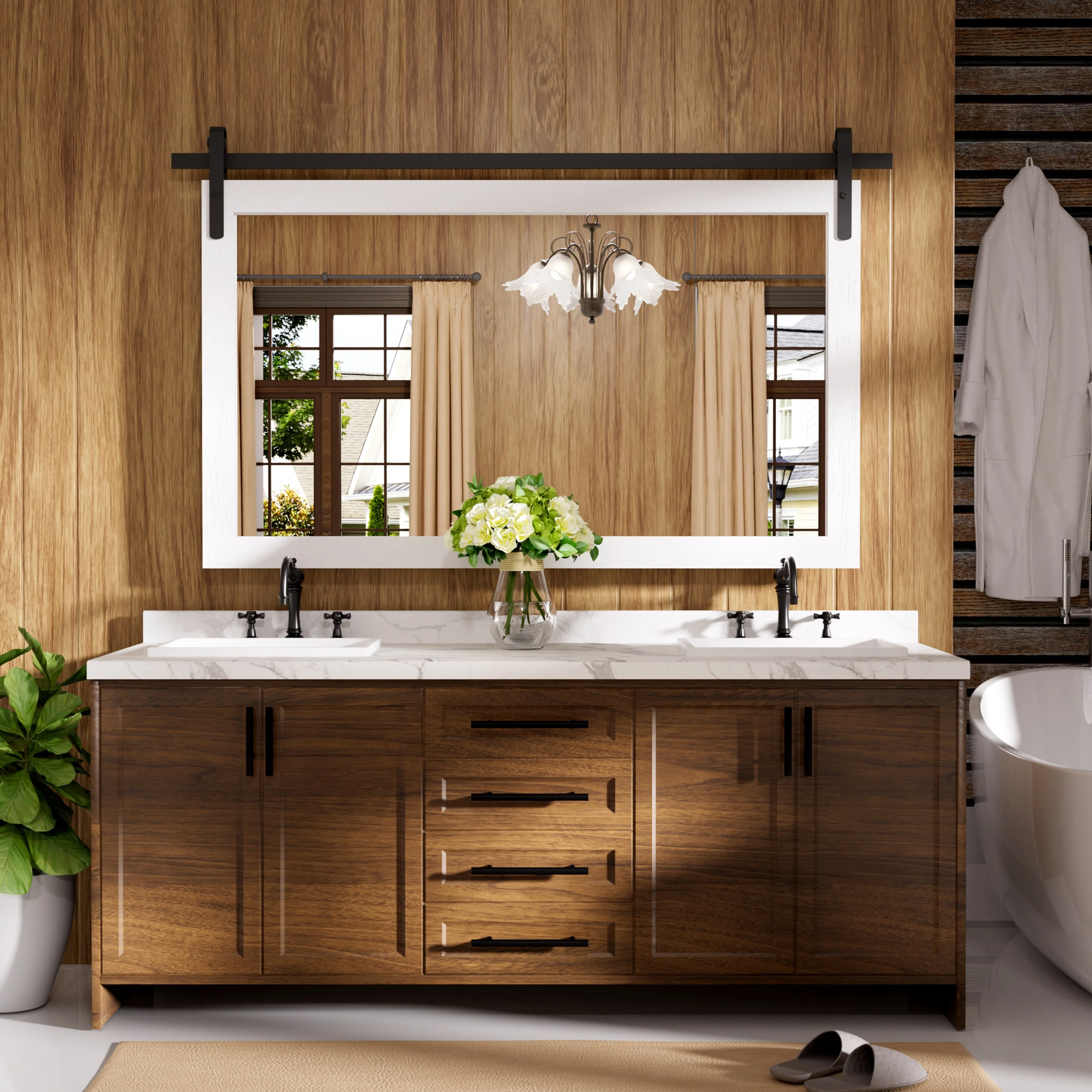 - Farm Style: The natural wood finish on the frame gives the bathroom mirror a rustic look. Create the focal point you want in bathrooms, living rooms, hallways, kitchens, entryways, private spaces!