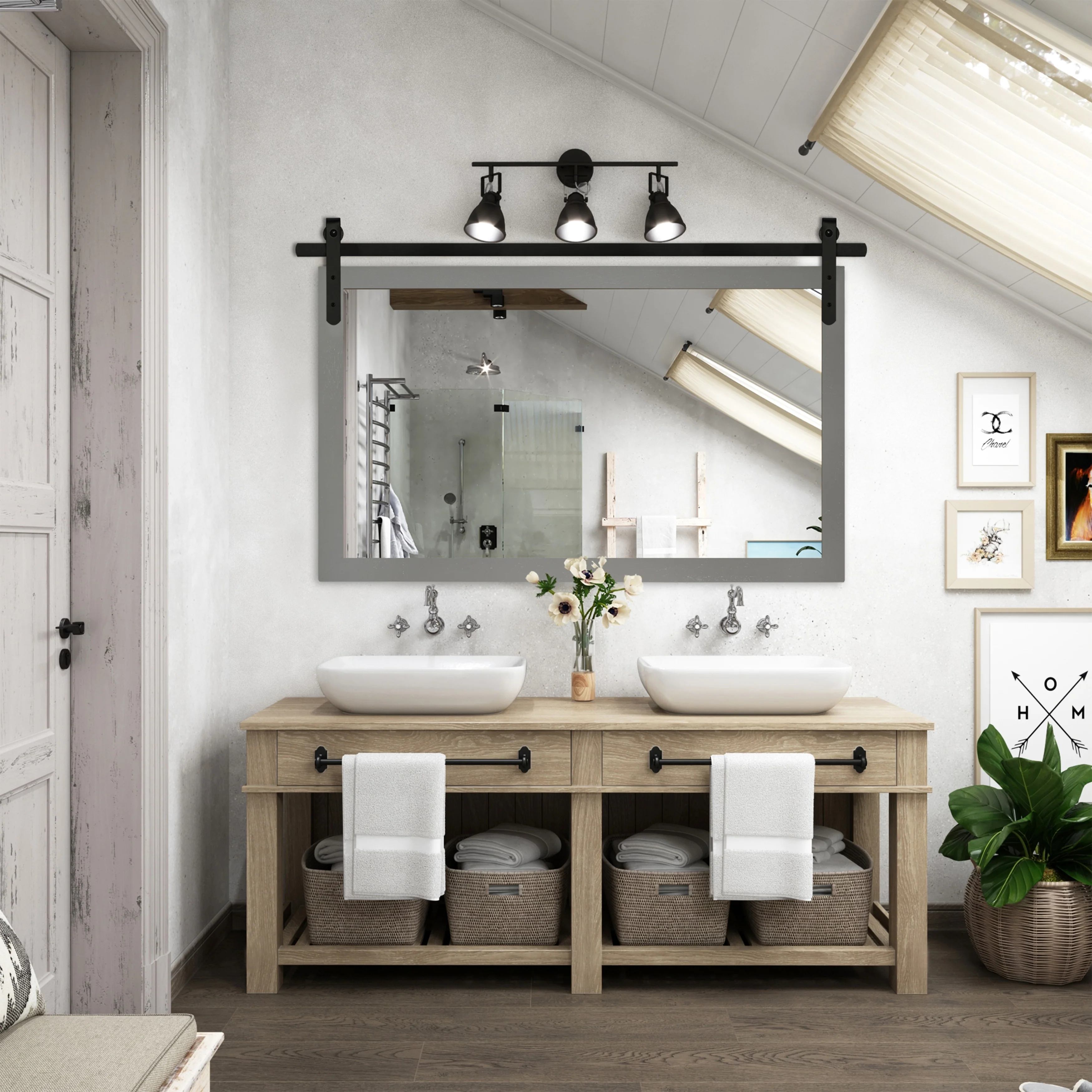 - Decorative Mirrors: Use farmhouse mirrors alone in your bathroom or place 2 or more of these rustic mirrors in your bathroom to decorate any room or create a larger living space.
