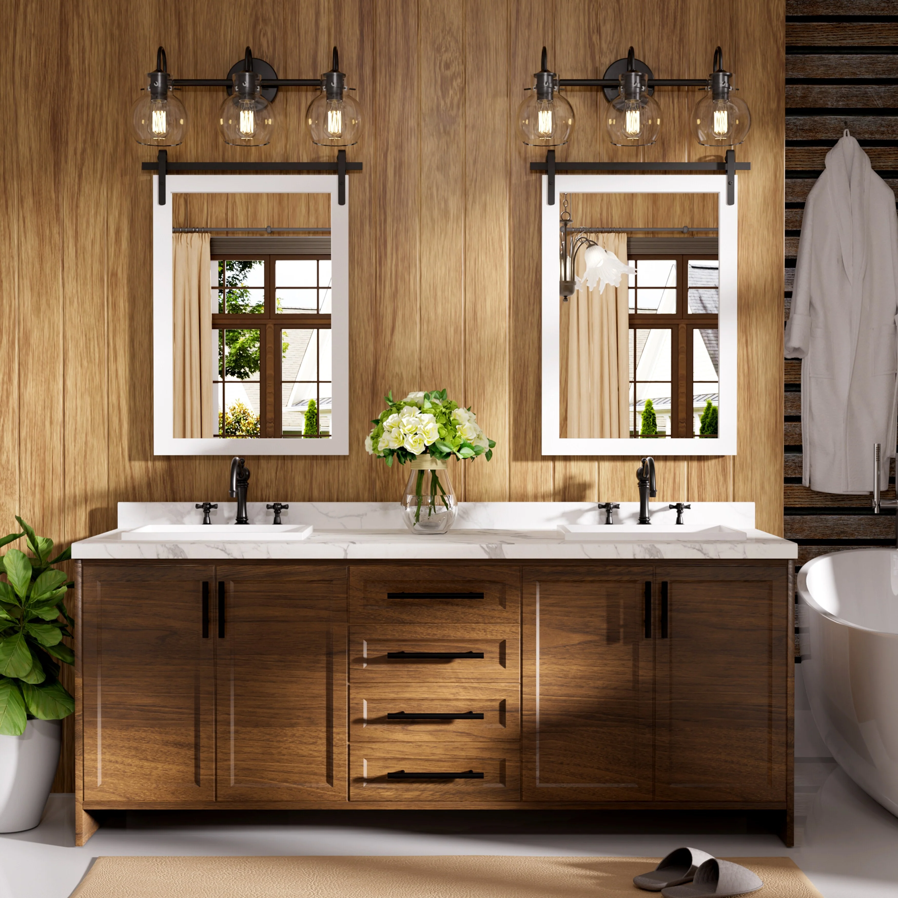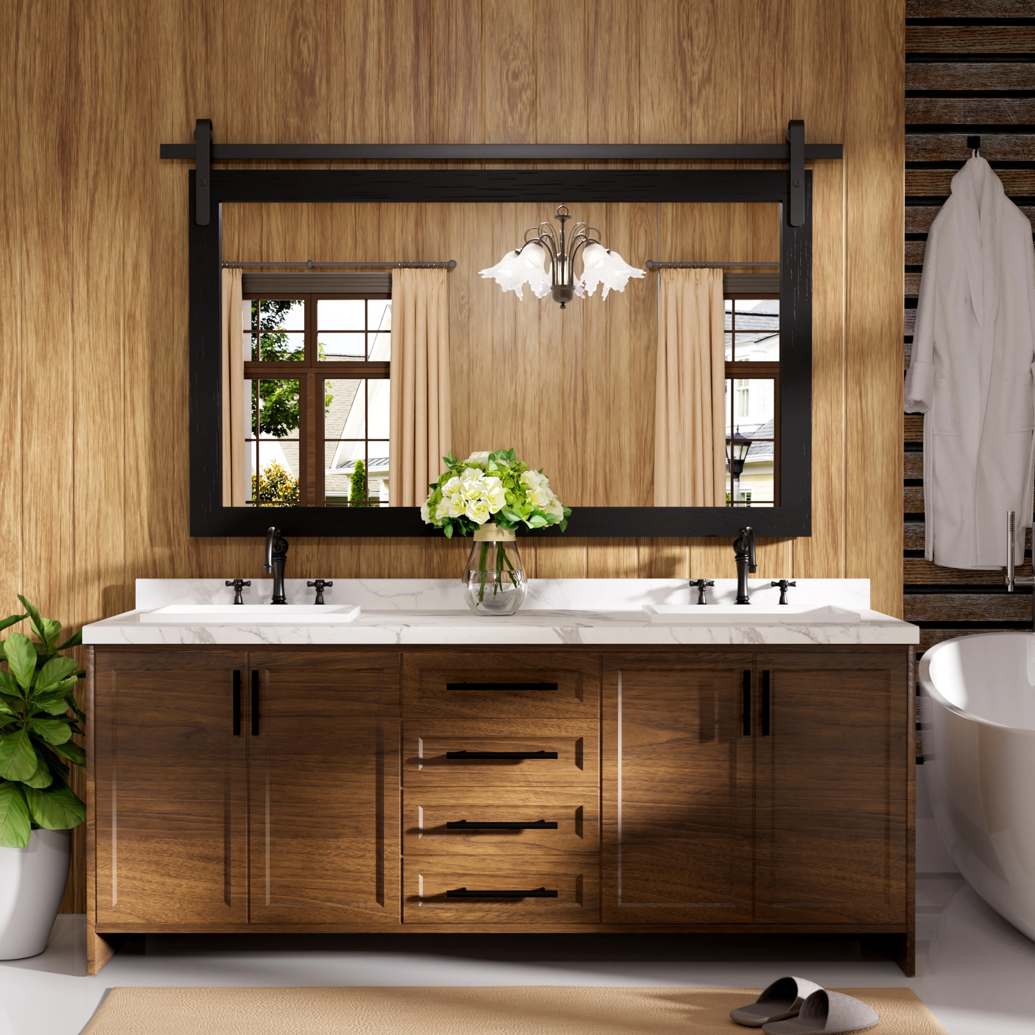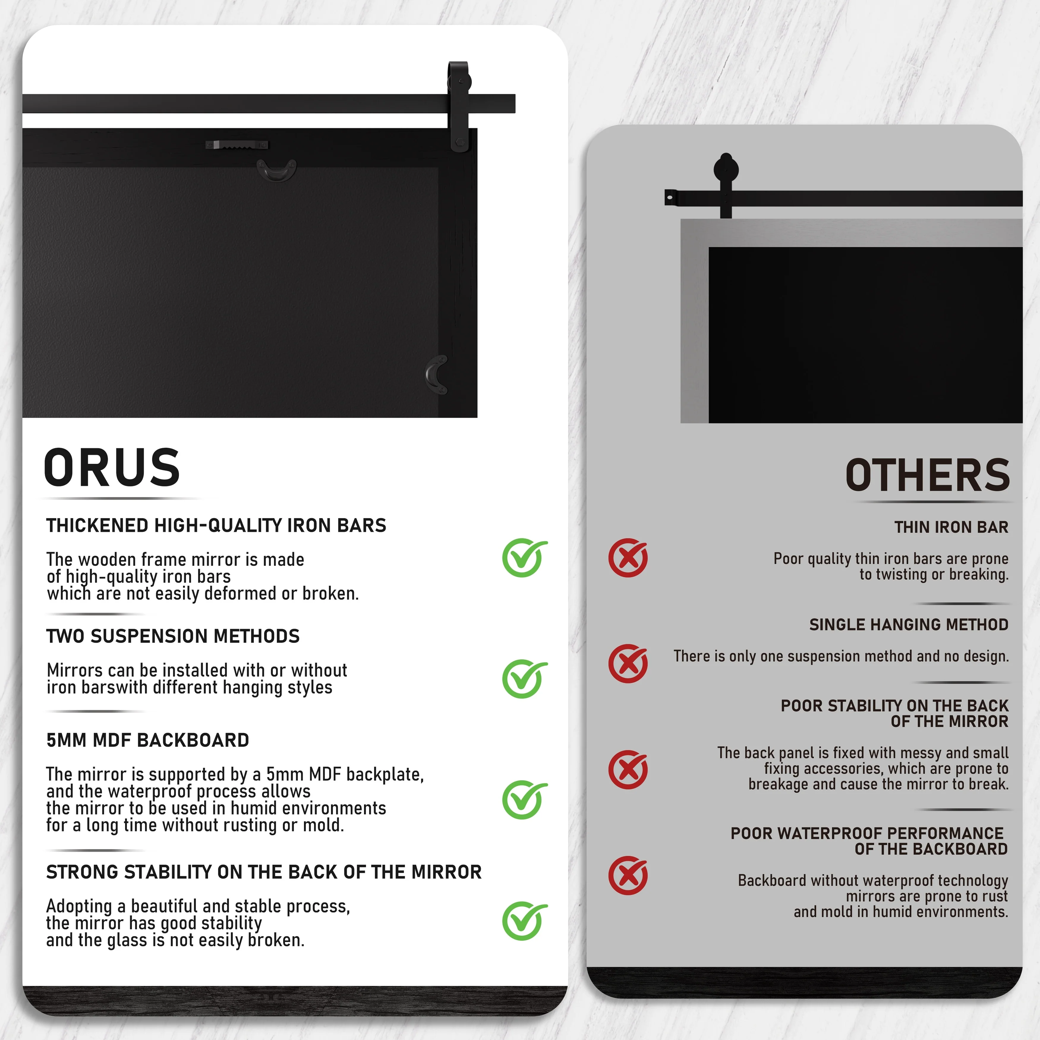 - Farm Style: The natural wood finish on the frame gives the bathroom mirror a rustic look. Create the focal point you want in bathrooms, living rooms, hallways, kitchens, entryways, private spaces!