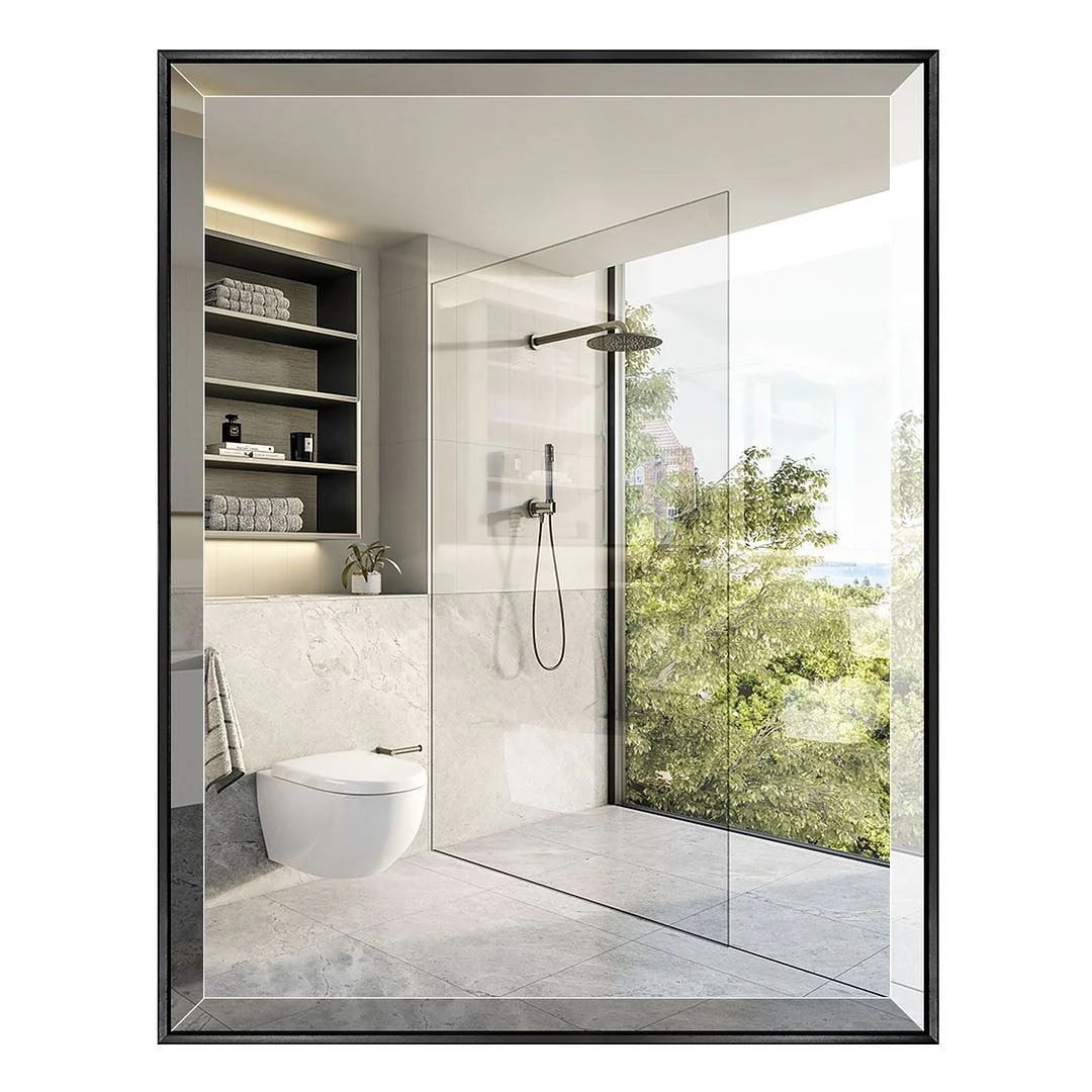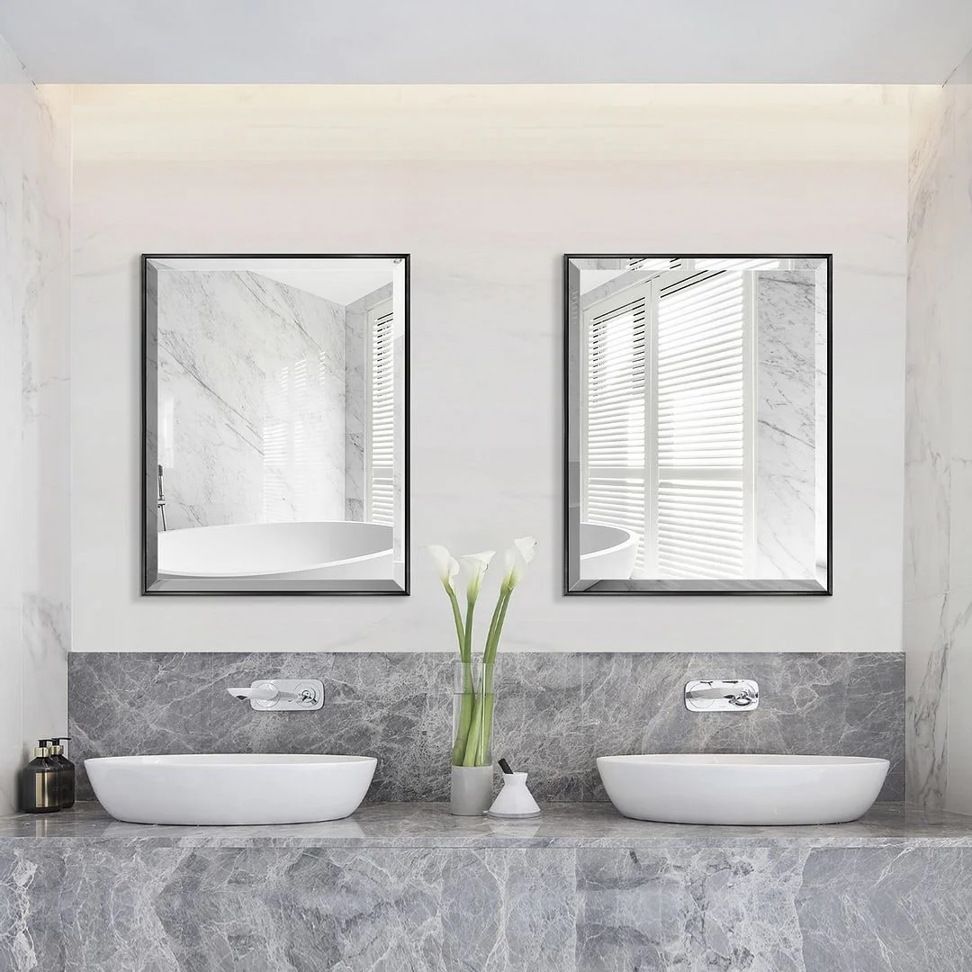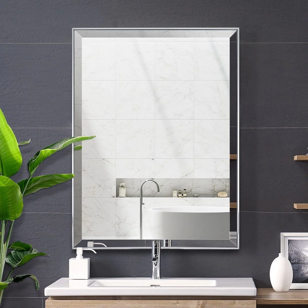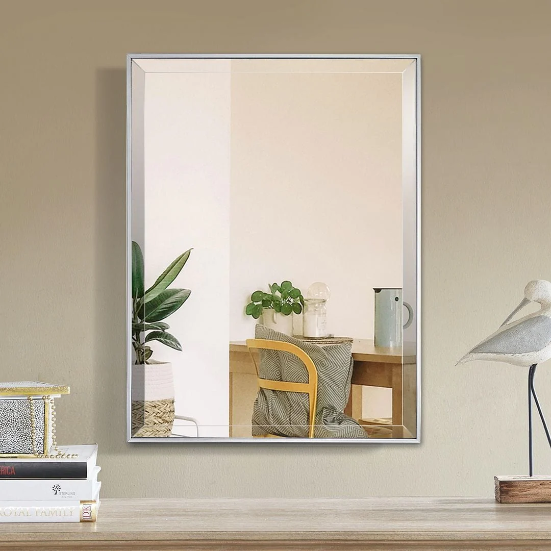 Brighten up your bedroom, bathroom, or hallway with this elegant wall mirror. A 1-inch beveled edge adds dimensionality to the rectangular glass mirror, which is mounted inside a polystyrene frame available in various stylish finishes. The mirror can be mounted either vertically or horizontally to match your preferences and comes with sturdy hooks for easy installation.