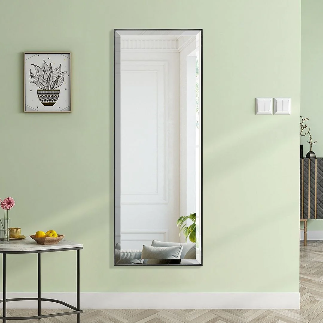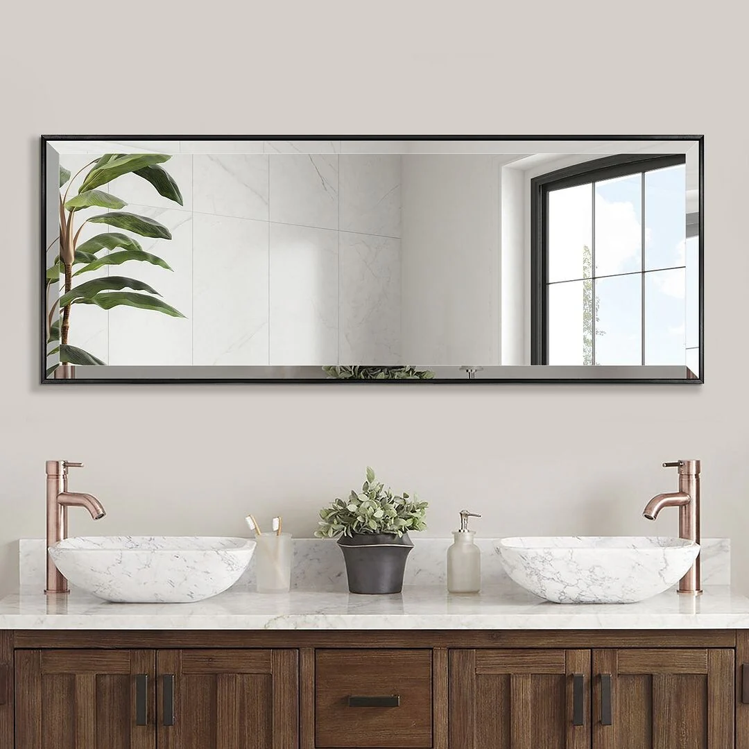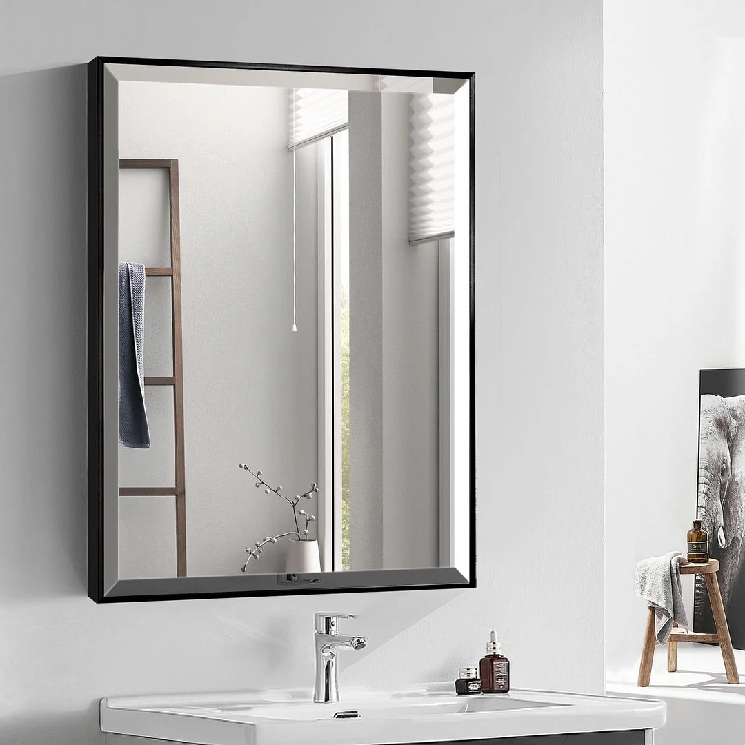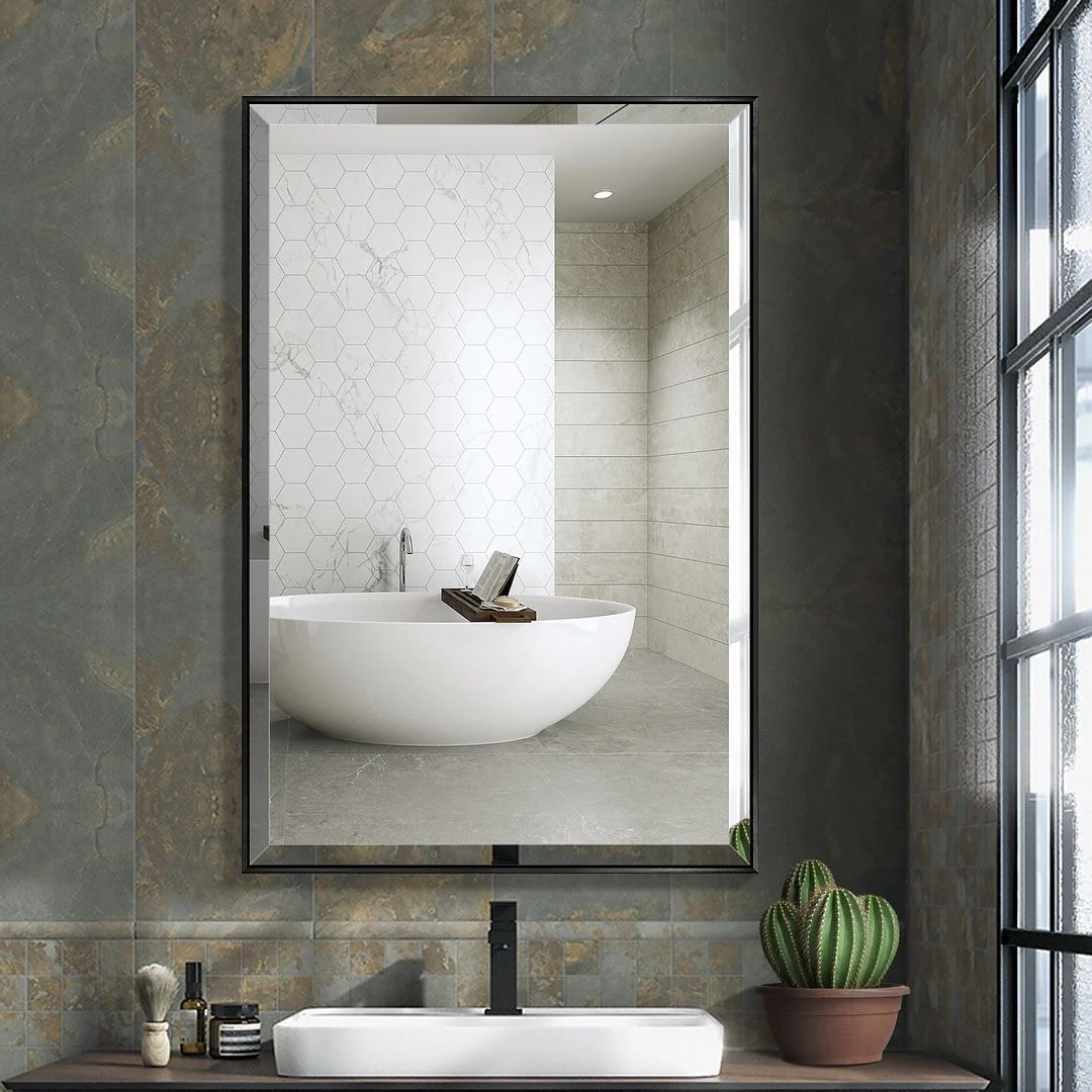 Brighten up your bedroom, bathroom, or hallway with this elegant wall mirror. A 1-inch beveled edge adds dimensionality to the rectangular glass mirror, which is mounted inside a polystyrene frame available in various stylish finishes. The mirror can be mounted either vertically or horizontally to match your preferences and comes with sturdy hooks for easy installation.