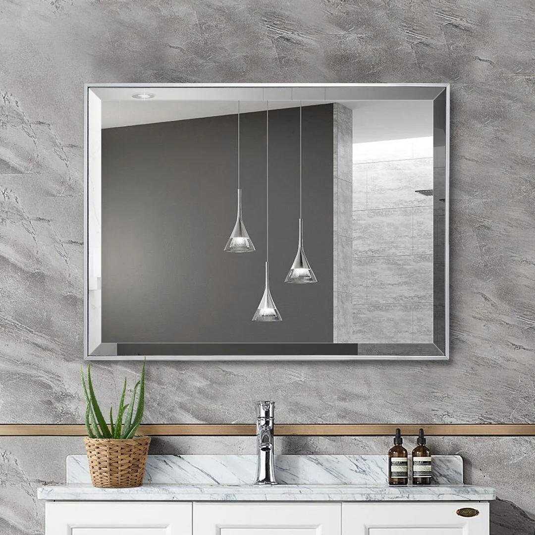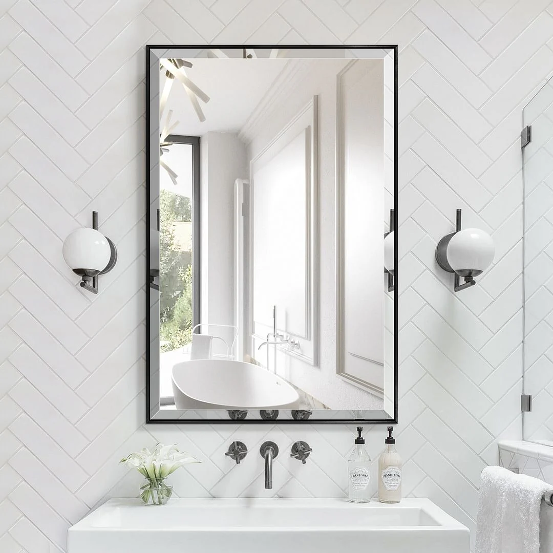 Brighten up your bedroom, bathroom, or hallway with this elegant wall mirror. A 1-inch beveled edge adds dimensionality to the rectangular glass mirror, which is mounted inside a polystyrene frame available in various stylish finishes. The mirror can be mounted either vertically or horizontally to match your preferences and comes with sturdy hooks for easy installation.