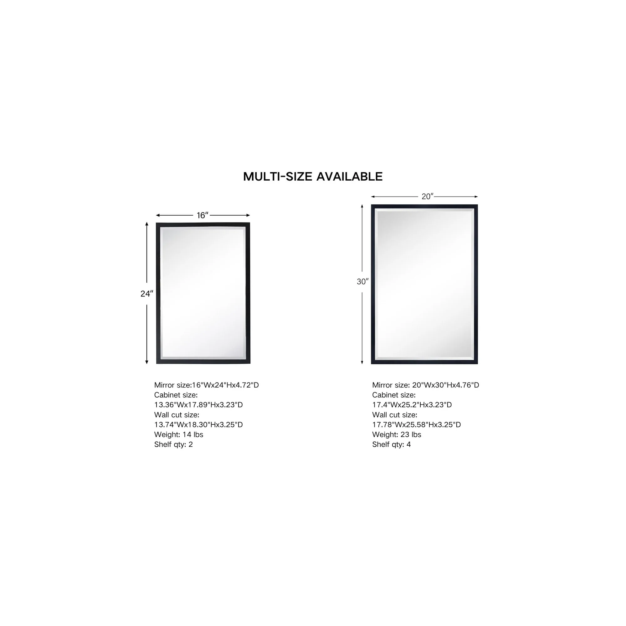 • Almost no assembly required: This bathroom medicine cabinet comes 95% assembled, customers only need to set the 2 glass shelves into the cabinet.