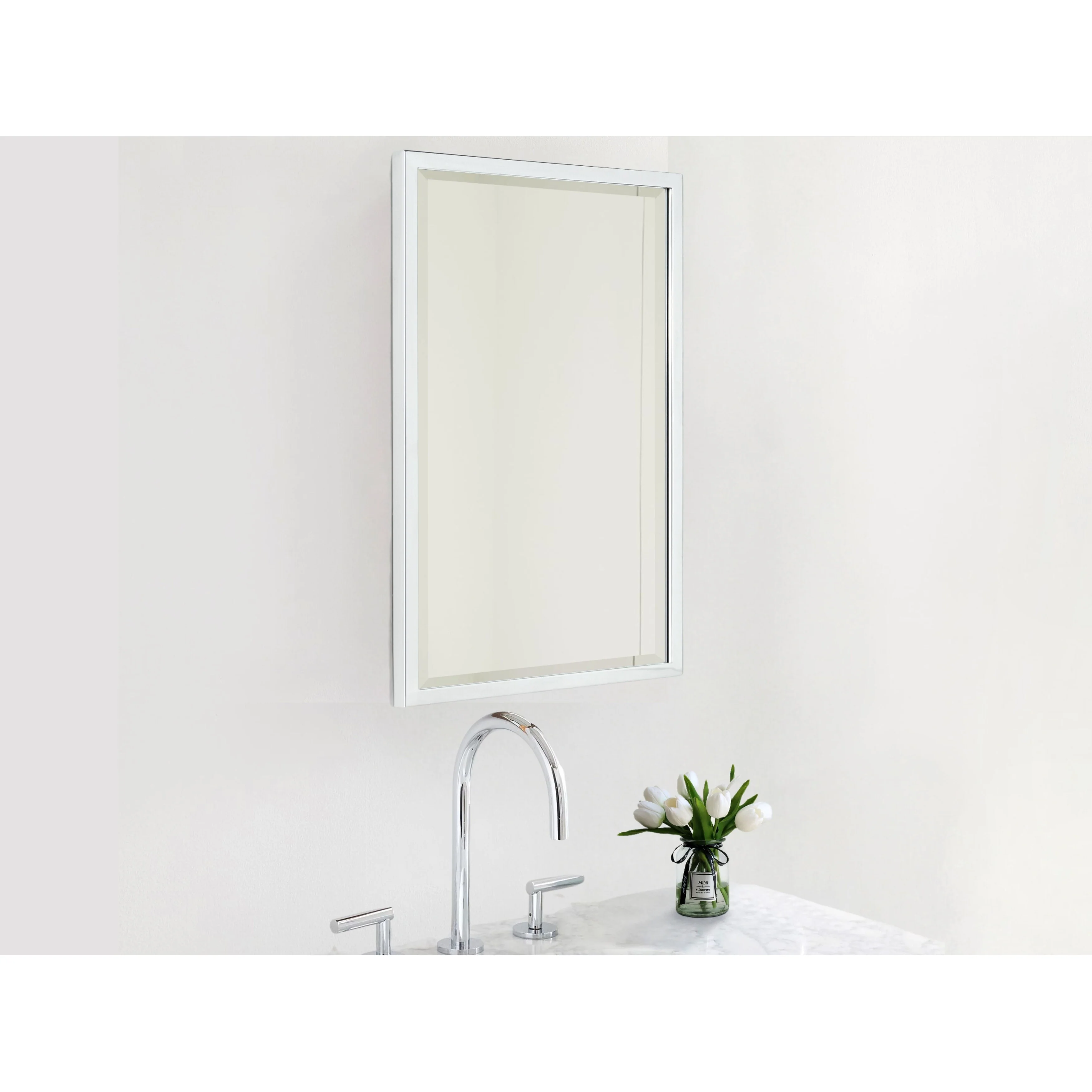 This medicine cabinet is metal framed with a matt finish, a great fit for a variety of bath decor. The mirror on the front door features a beveled look indicating an elegant and chic bathroom look.