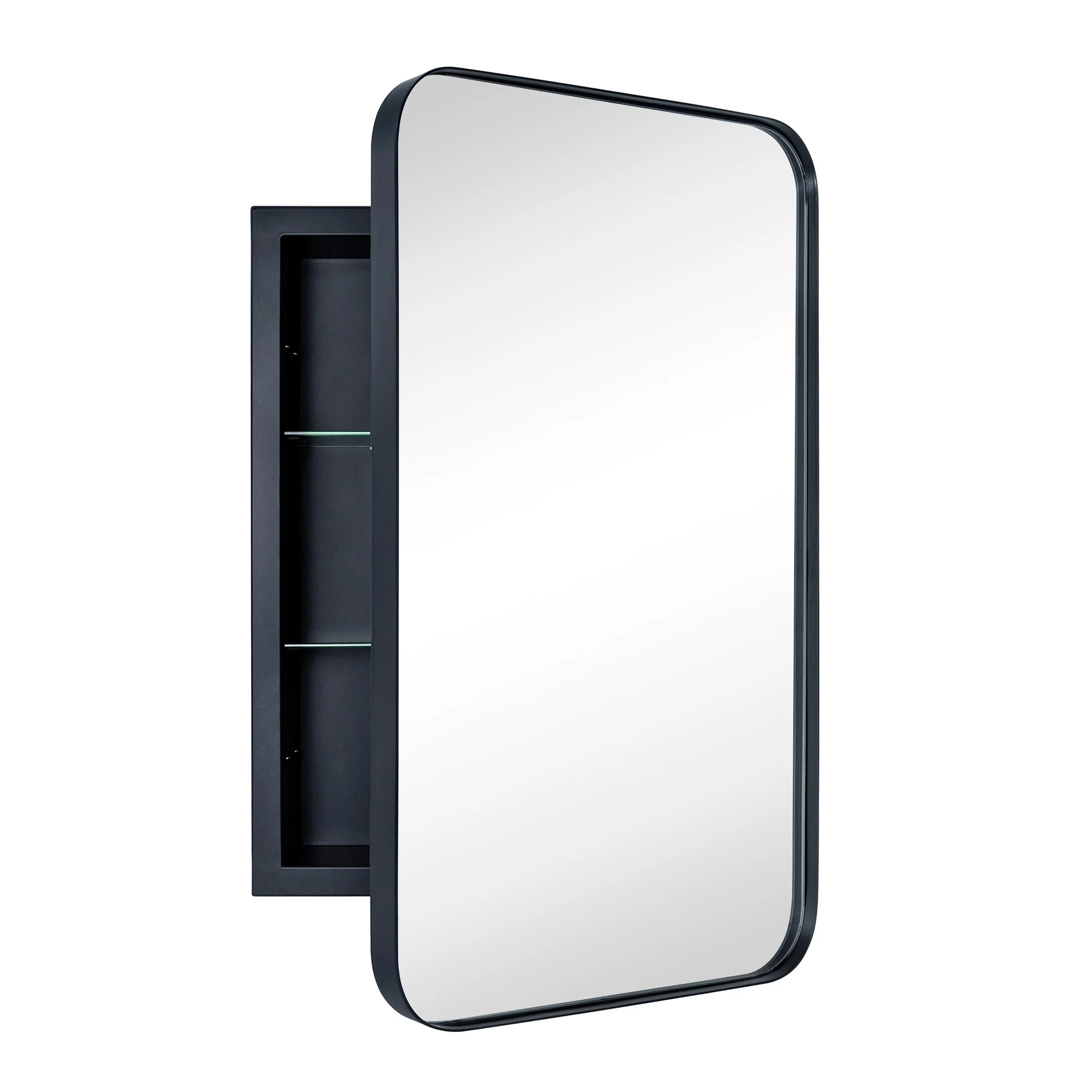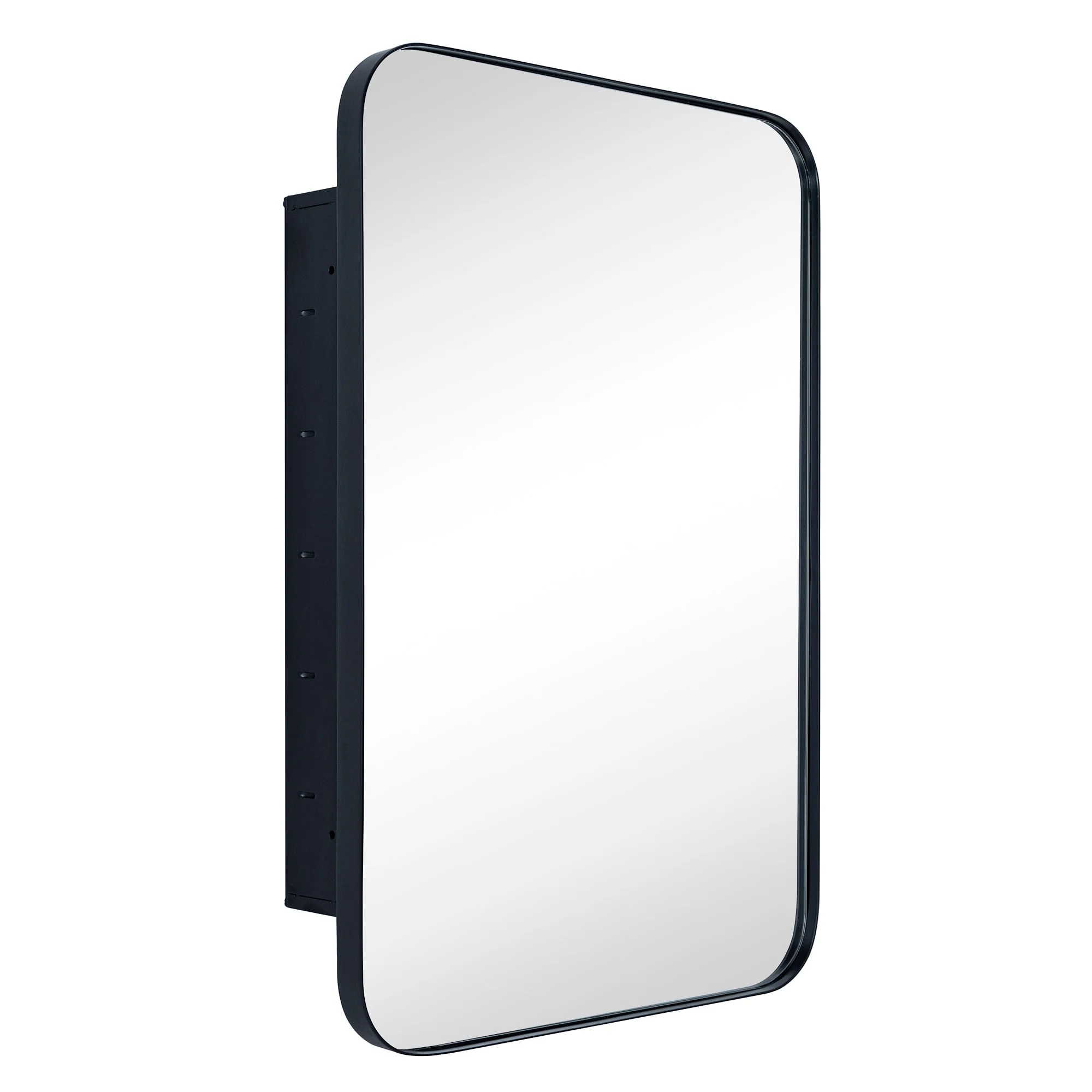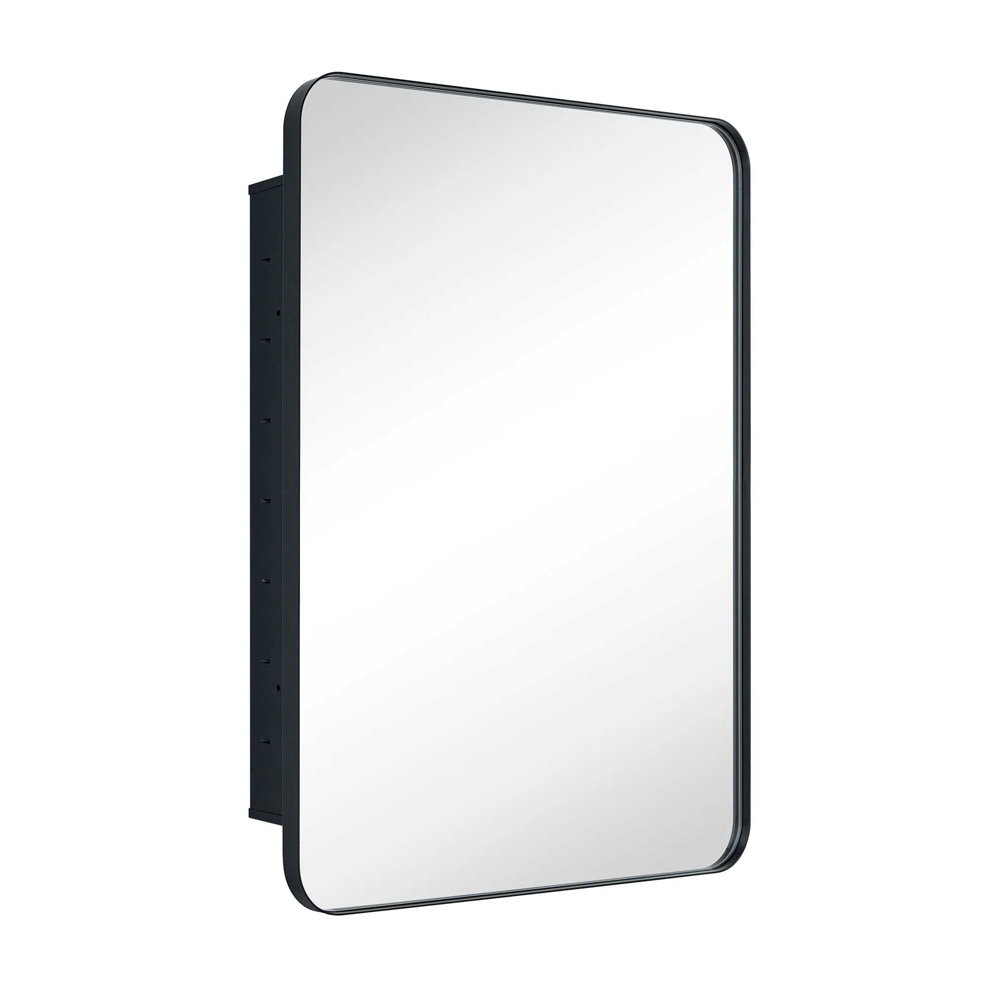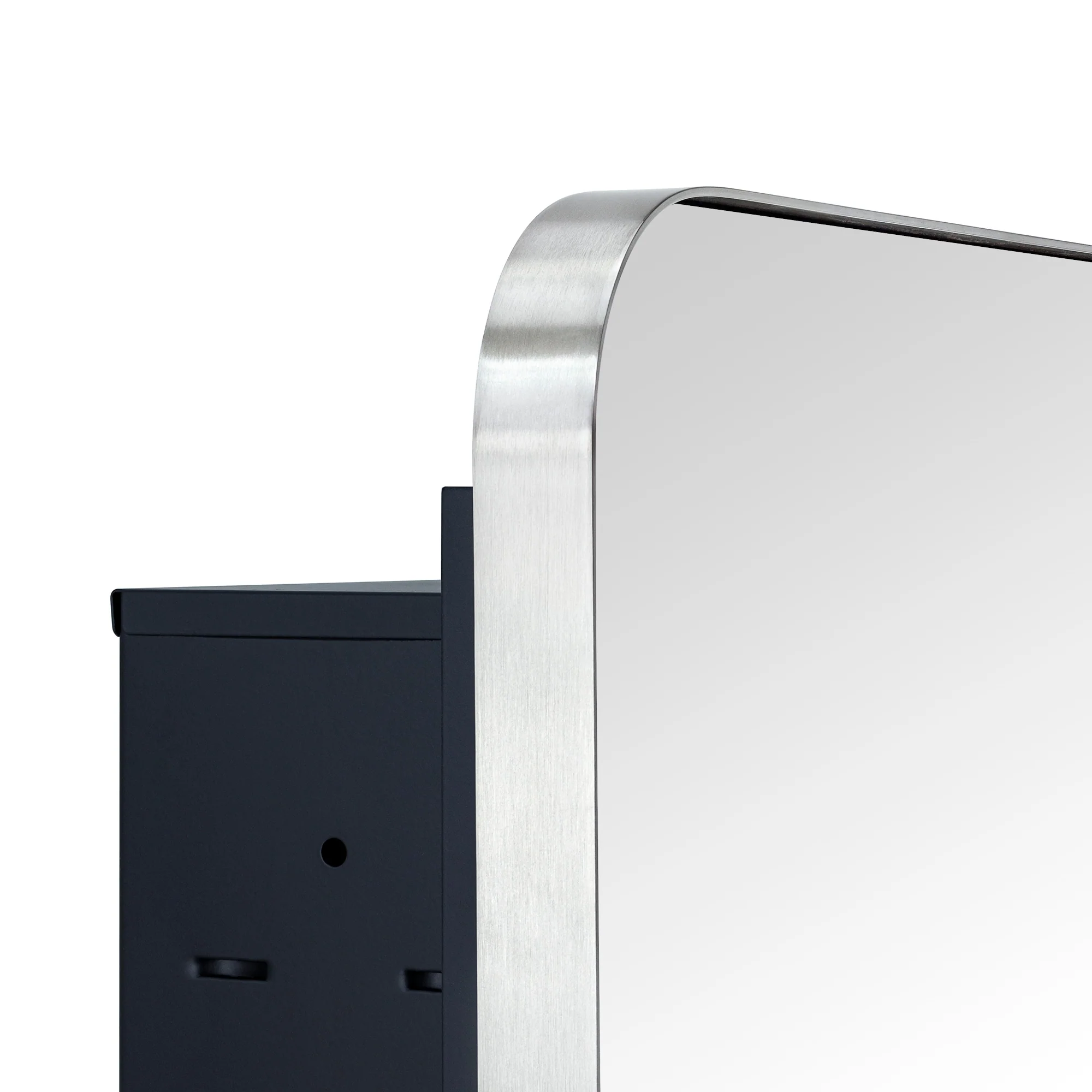 This stainless steel framed medicine cabinet is designed with a recessed mounted wall. Modern and contemporary styled to complement a variety of bathroom decor, this bathroom mirror with cabinet provides lots of space-enchanting reflections with a rounded rectangle of mirrored glass.