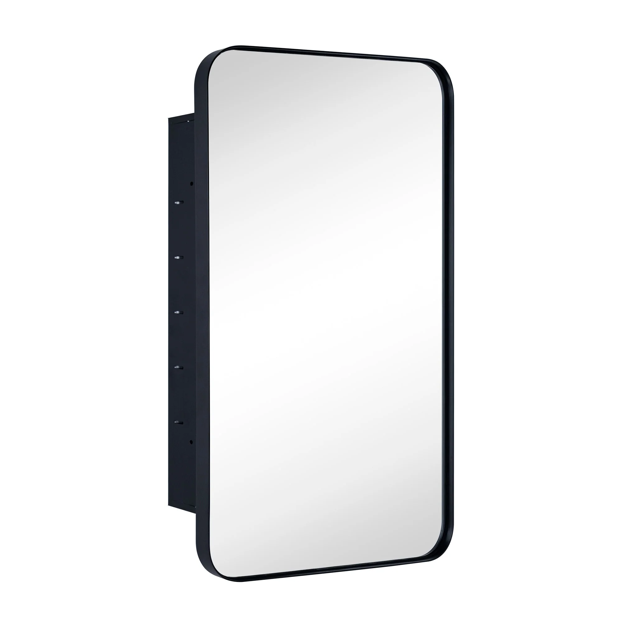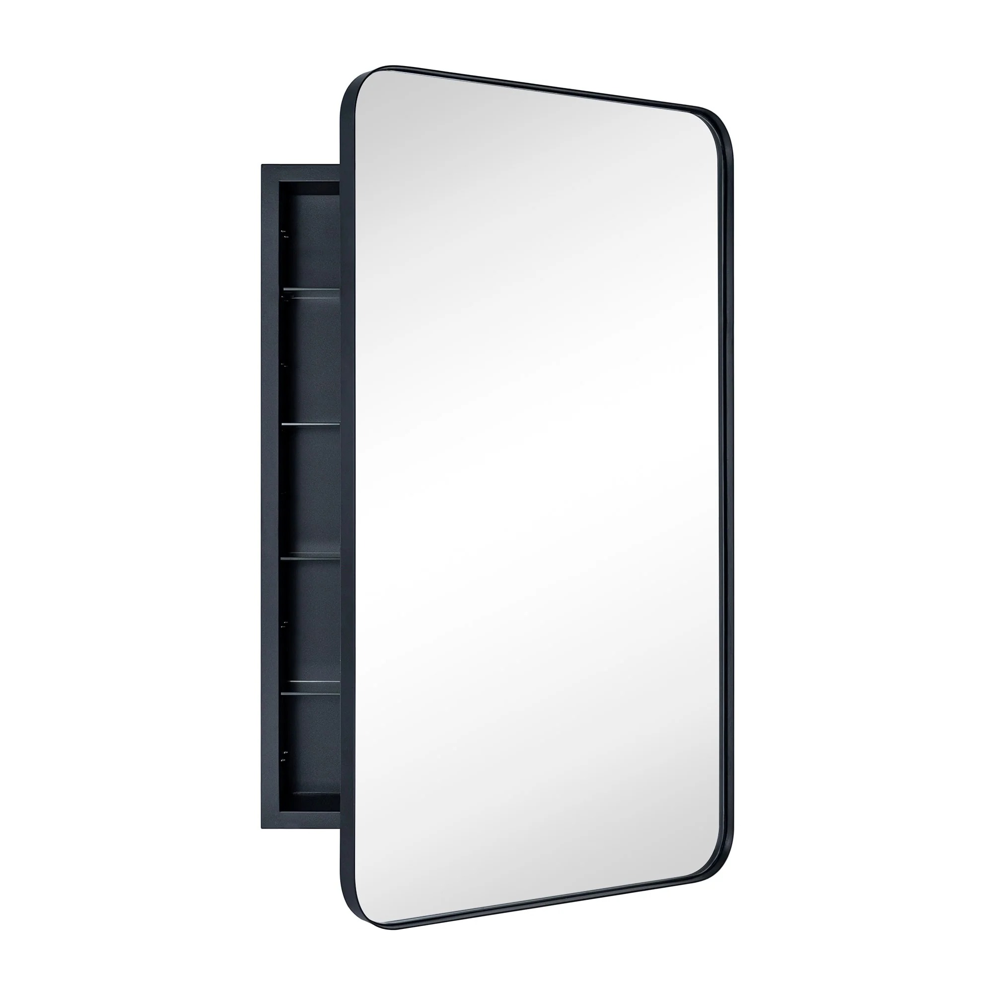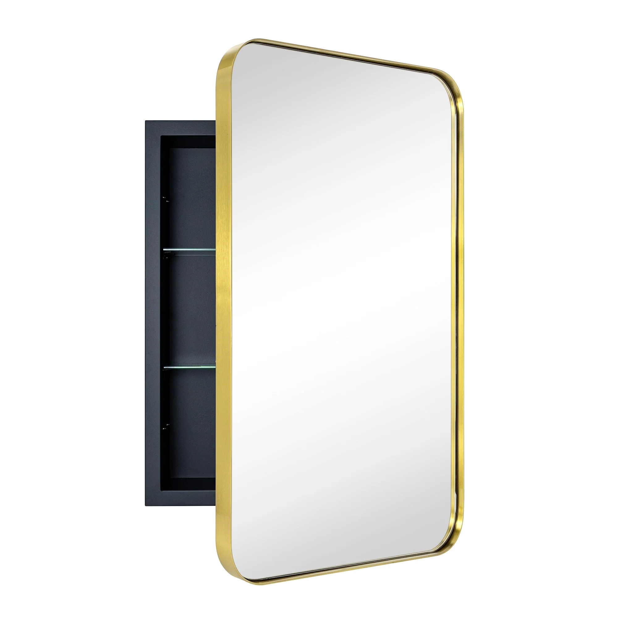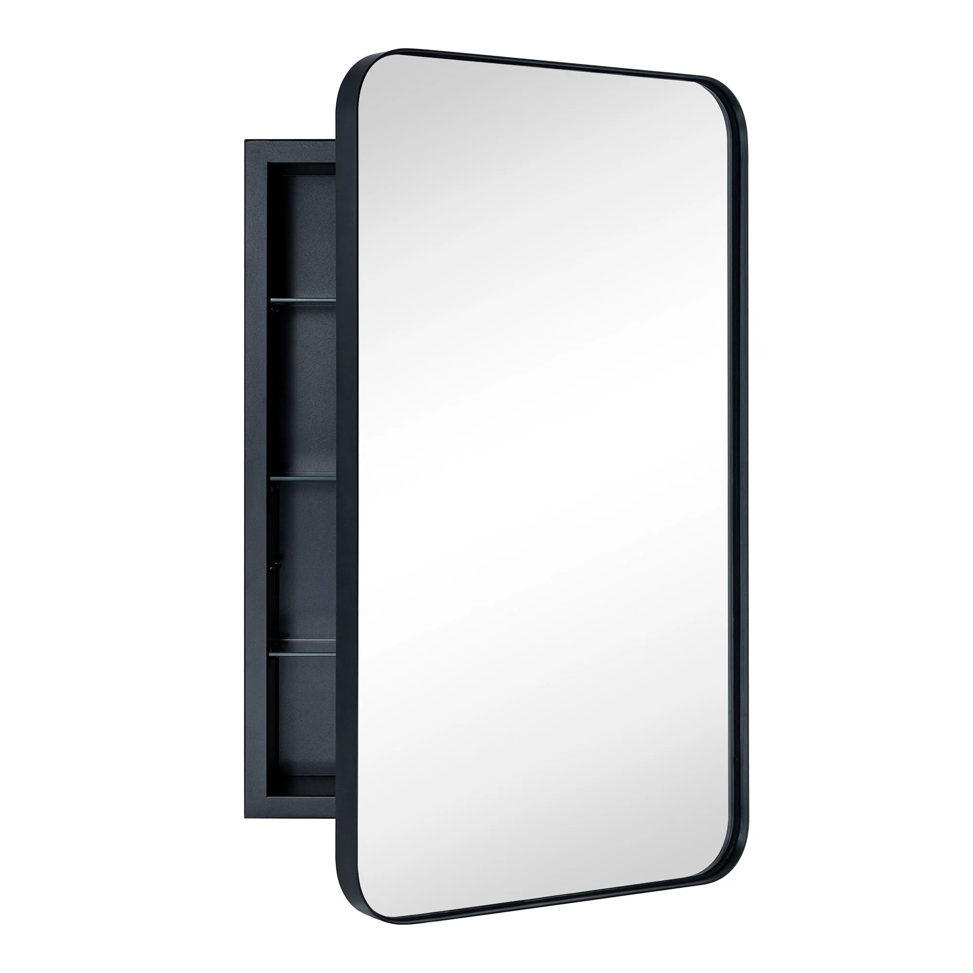 This stainless steel framed medicine cabinet is designed with a recessed mounted wall. Modern and contemporary styled to complement a variety of bathroom decor, this bathroom mirror with cabinet provides lots of space-enchanting reflections with a rounded rectangle of mirrored glass.