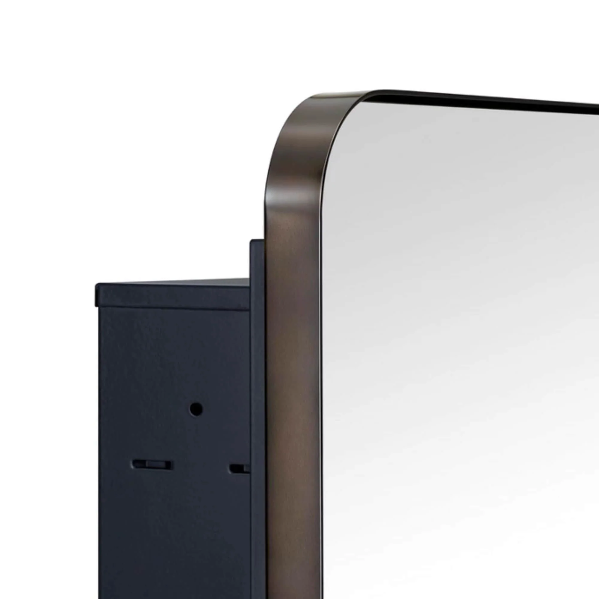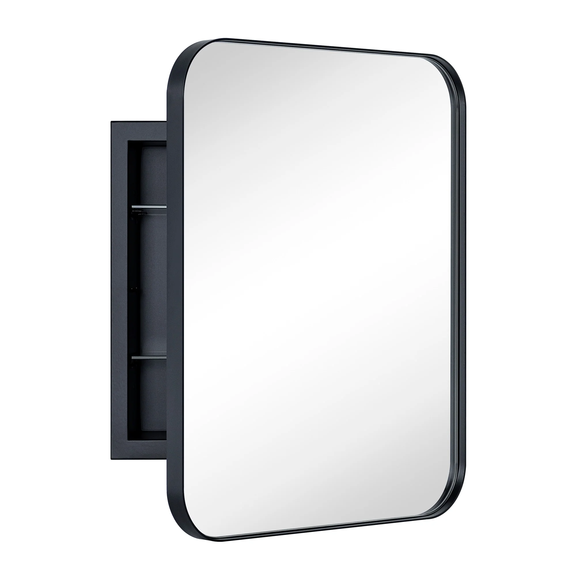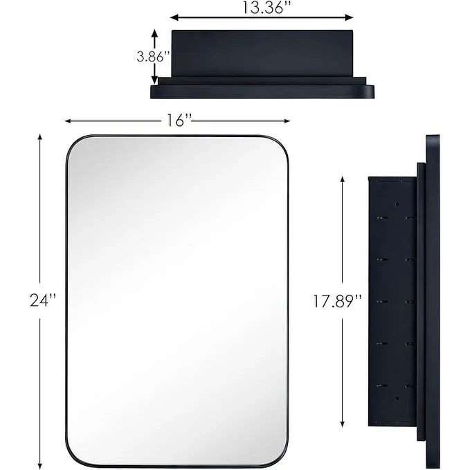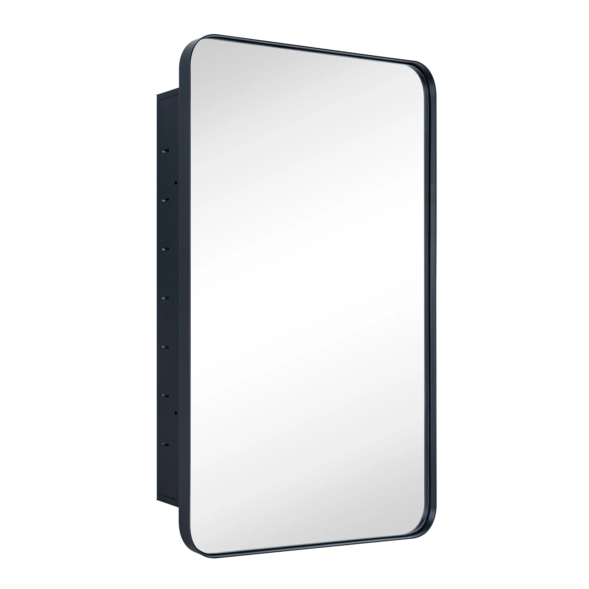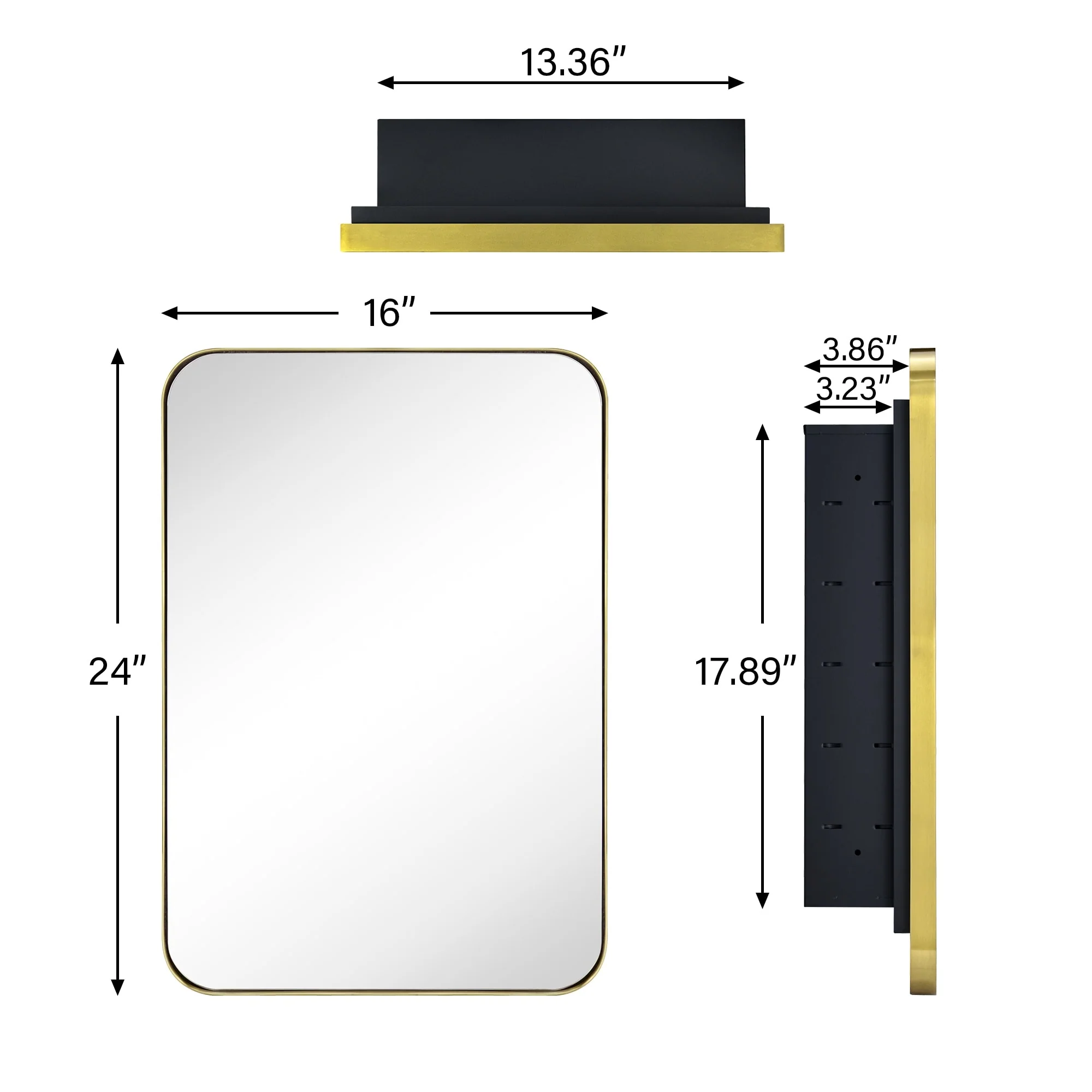 This stainless steel framed medicine cabinet is designed with a recessed mounted wall. Modern and contemporary styled to complement a variety of bathroom decor, this bathroom mirror with cabinet provides lots of space-enchanting reflections with a rounded rectangle of mirrored glass.