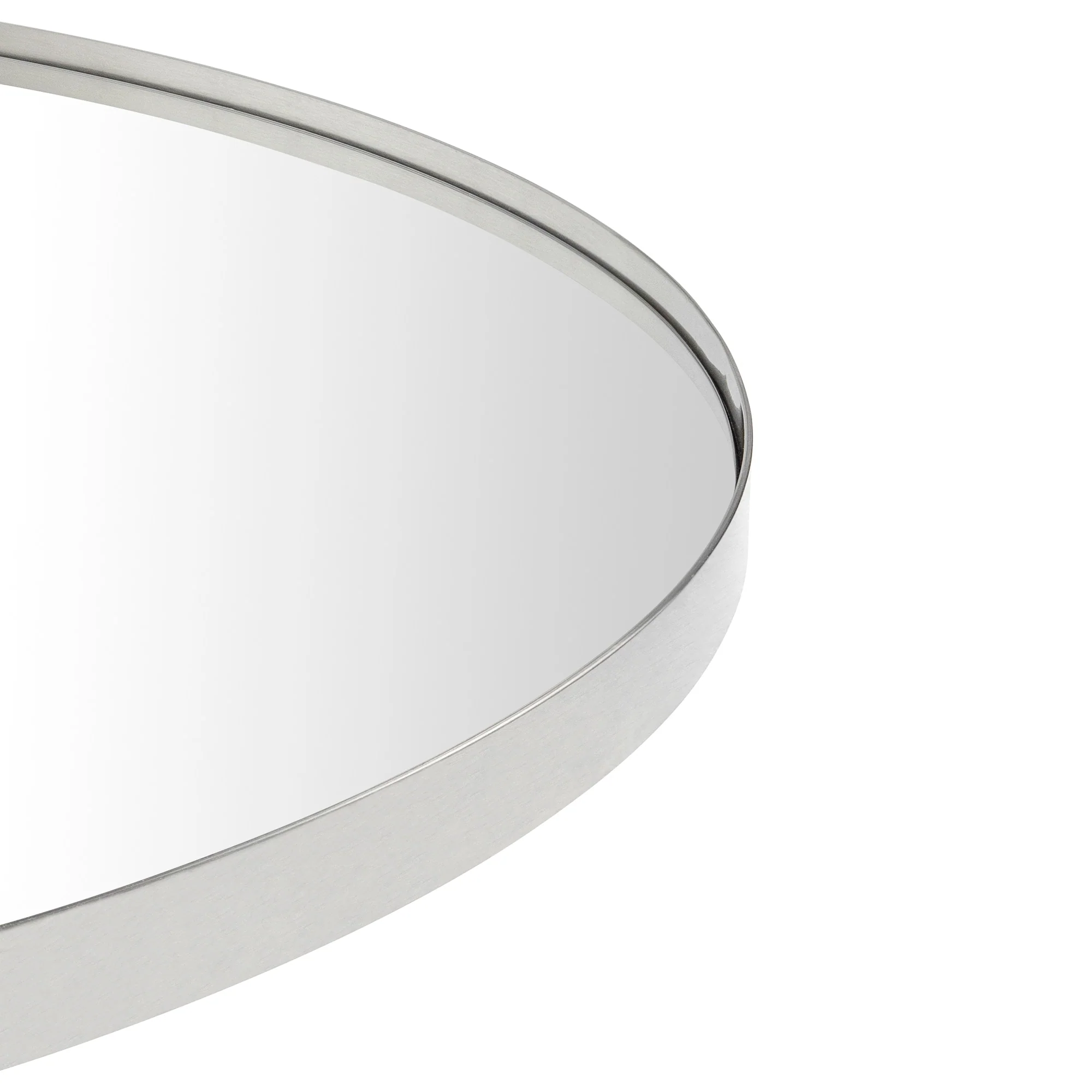 This modern and chic style metal round mirror matches any room and any decor perfectly. Every single mirror is carefully crafted with over 60 processing on one item. With the stainless steel metal framing, it is super safe to hang as a bathroom vanity mirror as well. Can be a perfect fit for either your bathroom, entryway, mantel mirror, or living room.