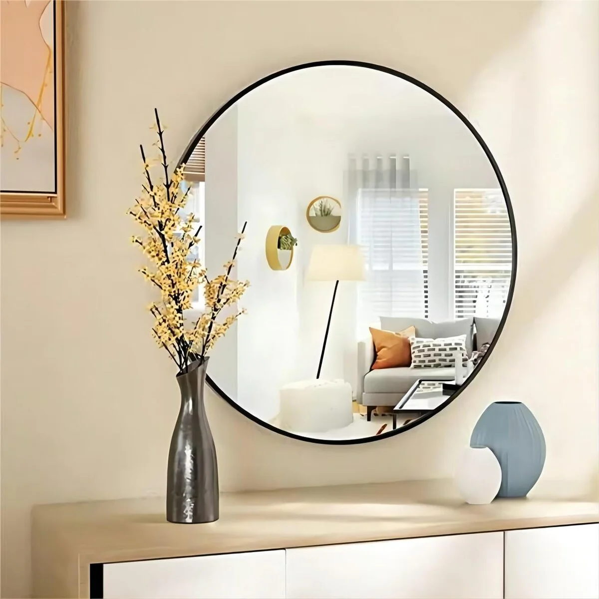 Elevate your bathroom d茅cor with our YVANLA Wall Mounted Bathroom Round Mirror with Metal Frame. Handcrafted with attention to detail, this mirror boasts a high-quality aluminum alloy and float glass construction that ensures a crystal-clear reflection every time. The sleek, round shape takes up minimal wall space and doubles as a stunning piece of art. Plus, the shatter-proof membrane provides added safety and scatter prevention. With easy installation and various size and color options, this mirror is a versatile addition to any space.