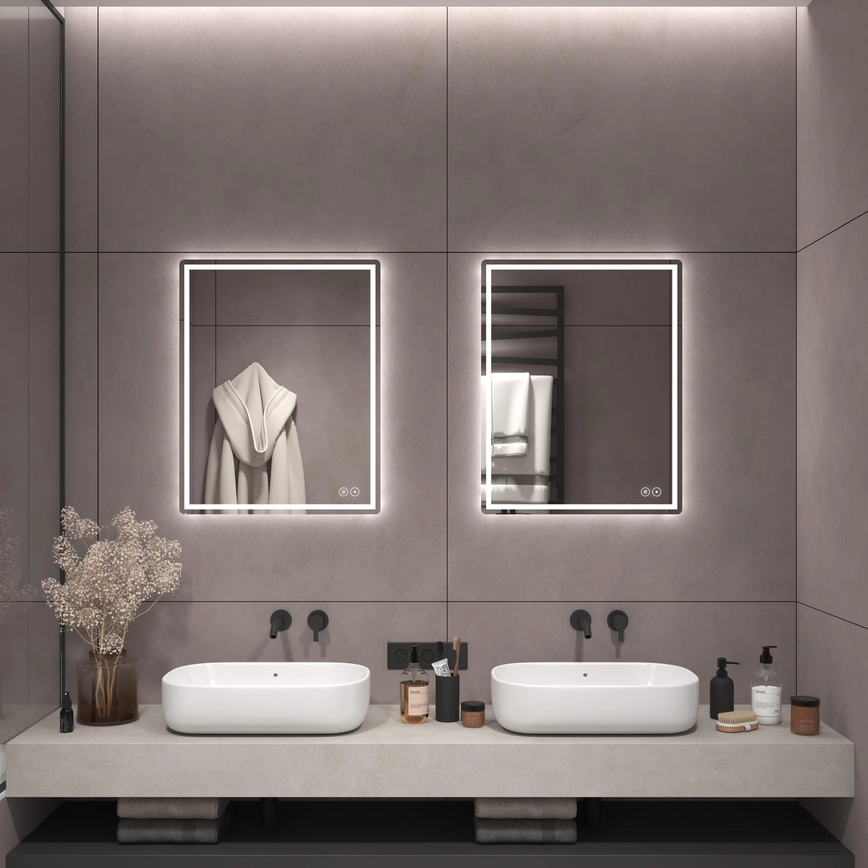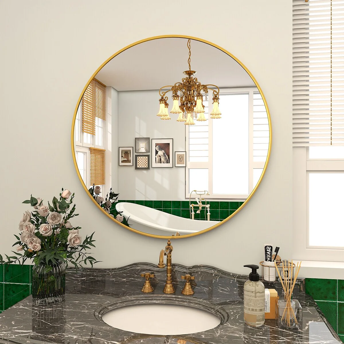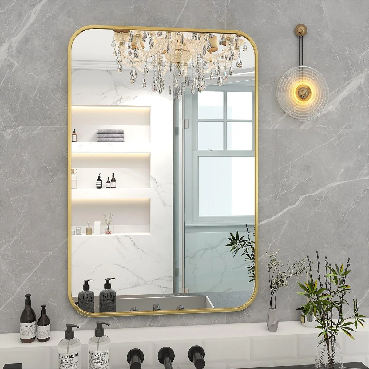 Modern Wall Mirror, Rectangular Mirror with Metal Frame, Bathroom Mirror with Round Corner Vanity Mirror for Vertical/Horizontal