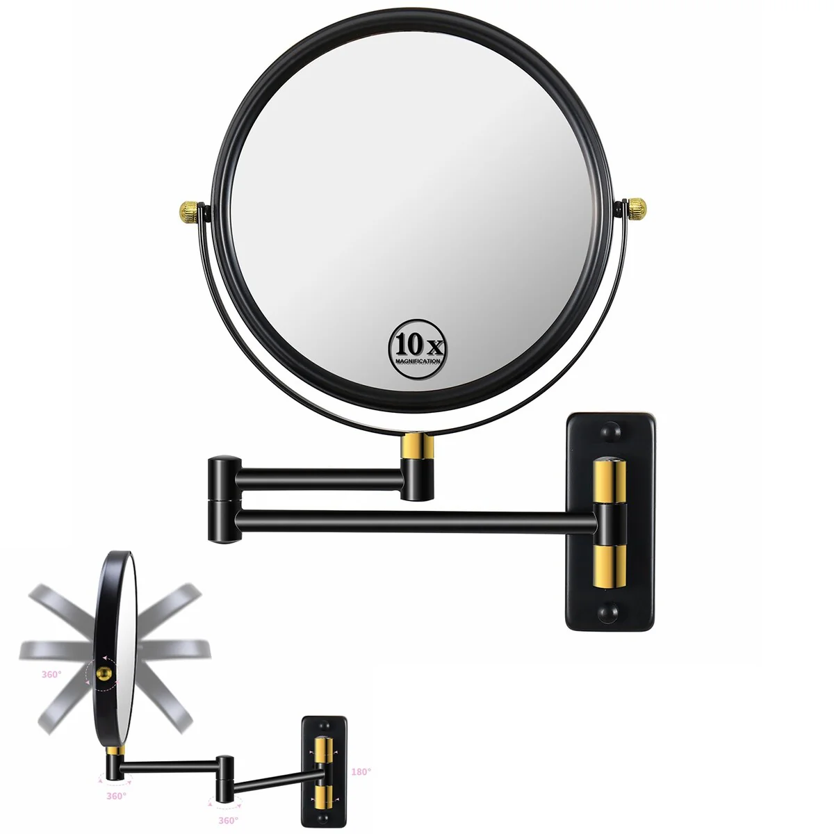 360掳 Swivel Wall Mounted Makeup Vanity Mirror with Extension Arm, 1X / 10X Magnification Mirror, 8-inch Makeup Mirror