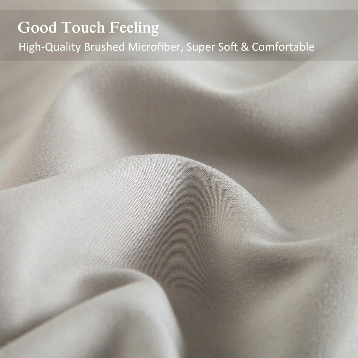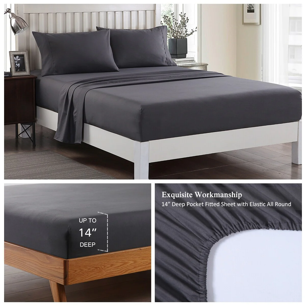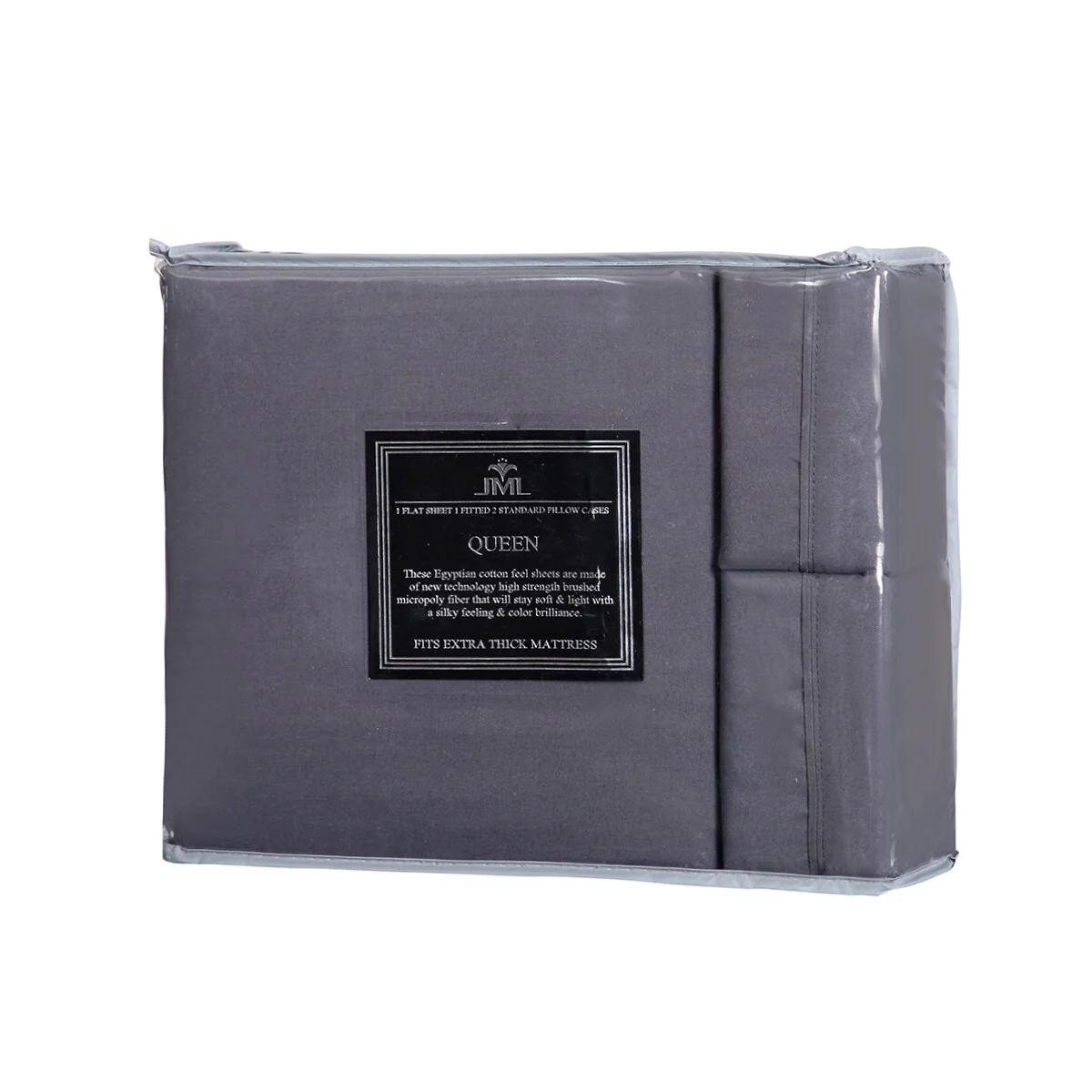 Material:100% Brushed Microfiber, 90gsm,More Breathable,Stronger and Longer Lasting Than Cotton.Twin Size 3 Piece Bed Sheets Set - Flat sheet 66'x96', fitted sheet 39'x75' and pillowcase 20'x30'. Deep pocket fitted sheet with elastic make it possible to fits mattresses up to 14'.Full Size 4 Piece Bed Sheets Set - Flat sheet 81'x96', fitted sheet 54'x75' and 2 pillowcases 20'x30'. Deep pocket fitted sheet with elastic make it possible to fits mattresses up to 14'.Queen Size 4 Piece Bed Sheets Set - Flat sheet 90'x102', fitted sheet 60'x80' and 2 pillowcases 20'x30'. Deep pocket fitted sheet with elastic make it possible to fits mattresses up to 14'.King Size 4 Piece Bed Sheets Set - Flat sheet 102'x108', fitted sheet 78'x80' and 2 pillowcases 20'x40'. Deep pocket fitted sheet with elastic make it possible to fits mattresses up to 14'.Package Included:Twin:1 flat sheet,1 fitted sheet,1 pillowcaseFull:1 flat sheet,1 fitted sheet,2 pillowcaseQueen:1 flat sheet,1 fitted sheet,2 pillowcaseKing:1 flat sheet,1 fitted sheet,2 pillowcaseFeatures:Feel More Comfort Than Cotton - If you're looking for very soft sheets you have found them! JML bed sheets sets is made of brushed microfiber, 90GSM, 2200 thread count (softer than 1800, even 2000), more breathable and durable than cotton. No fading, wrinkle and shrink resistantElegant & Details Design - The deep pocket with elastic makes the fitted sheet snug to your mattress, so this won't change the feel of your mattress. And solid-color microfiber sheet set matches easily for room decor.The Best Bedding Gift - We understand the comfortable bed is very important to create a pleasant, calm, and peaceful night sleep. so we created this perfect sheet set - silky soft touch, cool and breathable, hypoallergenic, environmental friendly and resistant to dust mites. great gift for families and friends.Easy Care - luxury sheets are resistant to fading, staining, shrinking, and wrinkles! They are machine washable in cold water and dry quickly on tumble! They are more durable than cotton sheets. Dtg
