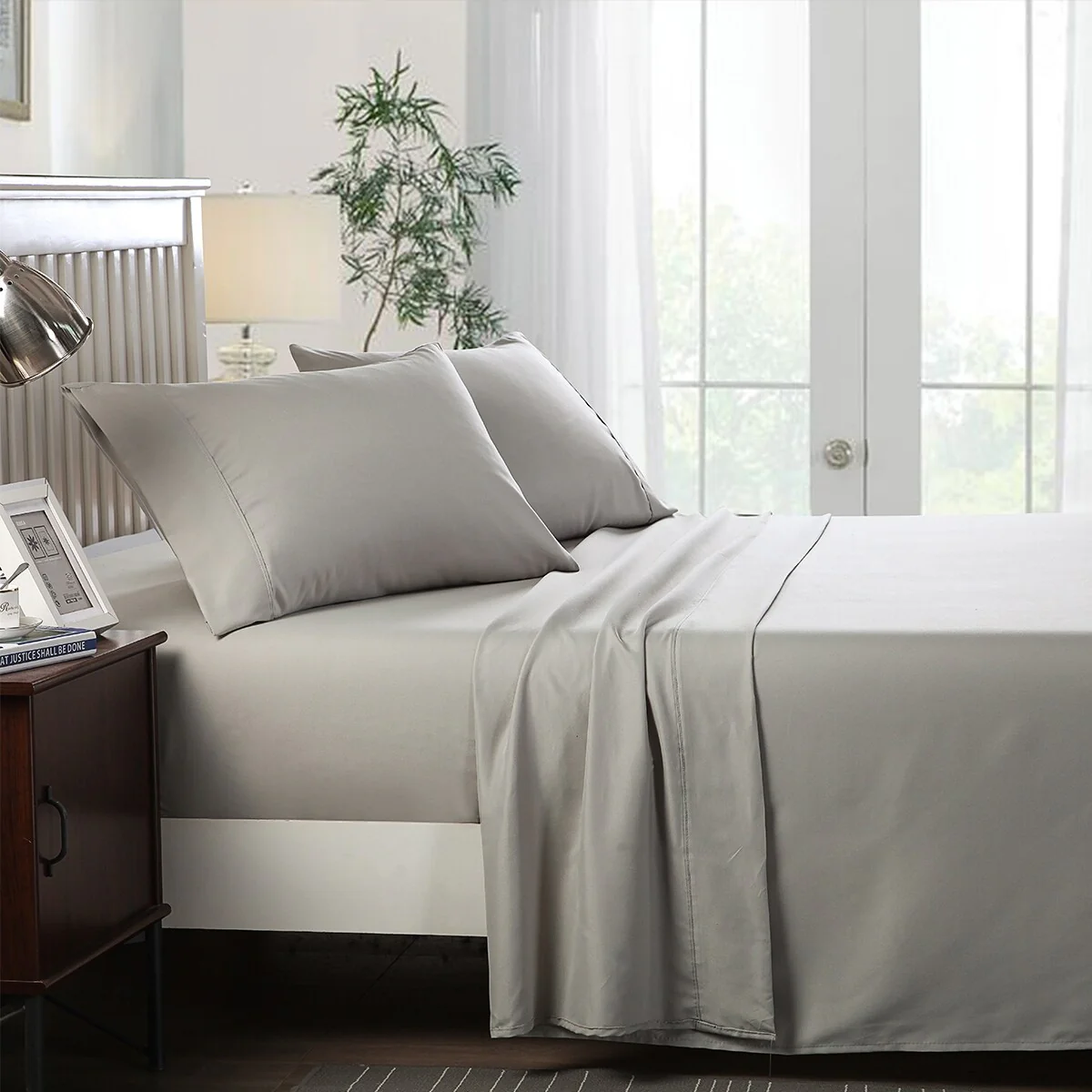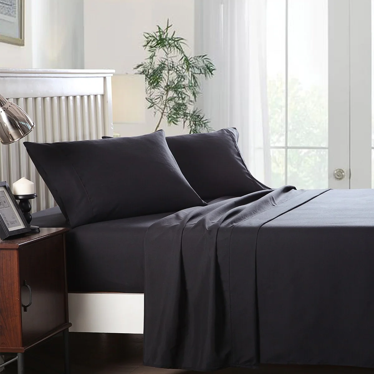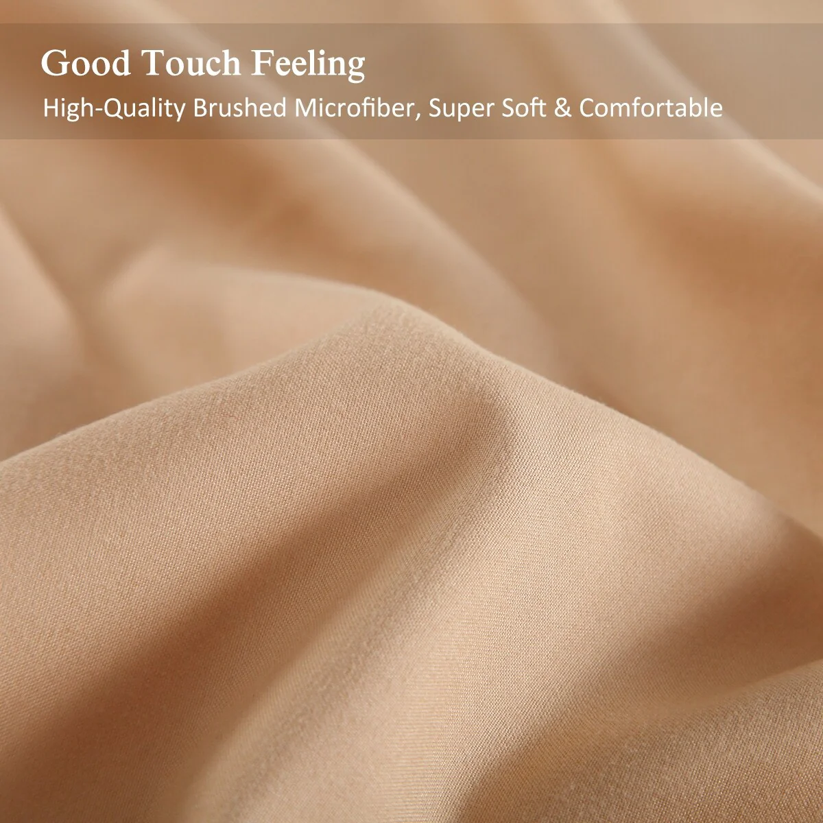 Material:100% Brushed Microfiber, 90gsm,More Breathable,Stronger and Longer Lasting Than Cotton.Twin Size 3 Piece Bed Sheets Set - Flat sheet 66'x96', fitted sheet 39'x75' and pillowcase 20'x30'. Deep pocket fitted sheet with elastic make it possible to fits mattresses up to 14'.Full Size 4 Piece Bed Sheets Set - Flat sheet 81'x96', fitted sheet 54'x75' and 2 pillowcases 20'x30'. Deep pocket fitted sheet with elastic make it possible to fits mattresses up to 14'.Queen Size 4 Piece Bed Sheets Set - Flat sheet 90'x102', fitted sheet 60'x80' and 2 pillowcases 20'x30'. Deep pocket fitted sheet with elastic make it possible to fits mattresses up to 14'.King Size 4 Piece Bed Sheets Set - Flat sheet 102'x108', fitted sheet 78'x80' and 2 pillowcases 20'x40'. Deep pocket fitted sheet with elastic make it possible to fits mattresses up to 14'.Package Included:Twin:1 flat sheet,1 fitted sheet,1 pillowcaseFull:1 flat sheet,1 fitted sheet,2 pillowcaseQueen:1 flat sheet,1 fitted sheet,2 pillowcaseKing:1 flat sheet,1 fitted sheet,2 pillowcaseFeatures:Feel More Comfort Than Cotton - If you're looking for very soft sheets you have found them! JML bed sheets sets is made of brushed microfiber, 90GSM, 2200 thread count (softer than 1800, even 2000), more breathable and durable than cotton. No fading, wrinkle and shrink resistantElegant & Details Design - The deep pocket with elastic makes the fitted sheet snug to your mattress, so this won't change the feel of your mattress. And solid-color microfiber sheet set matches easily for room decor.The Best Bedding Gift - We understand the comfortable bed is very important to create a pleasant, calm, and peaceful night sleep. so we created this perfect sheet set - silky soft touch, cool and breathable, hypoallergenic, environmental friendly and resistant to dust mites. great gift for families and friends.Easy Care - luxury sheets are resistant to fading, staining, shrinking, and wrinkles! They are machine washable in cold water and dry quickly on tumble! They are more durable than cotton sheets. Dtg