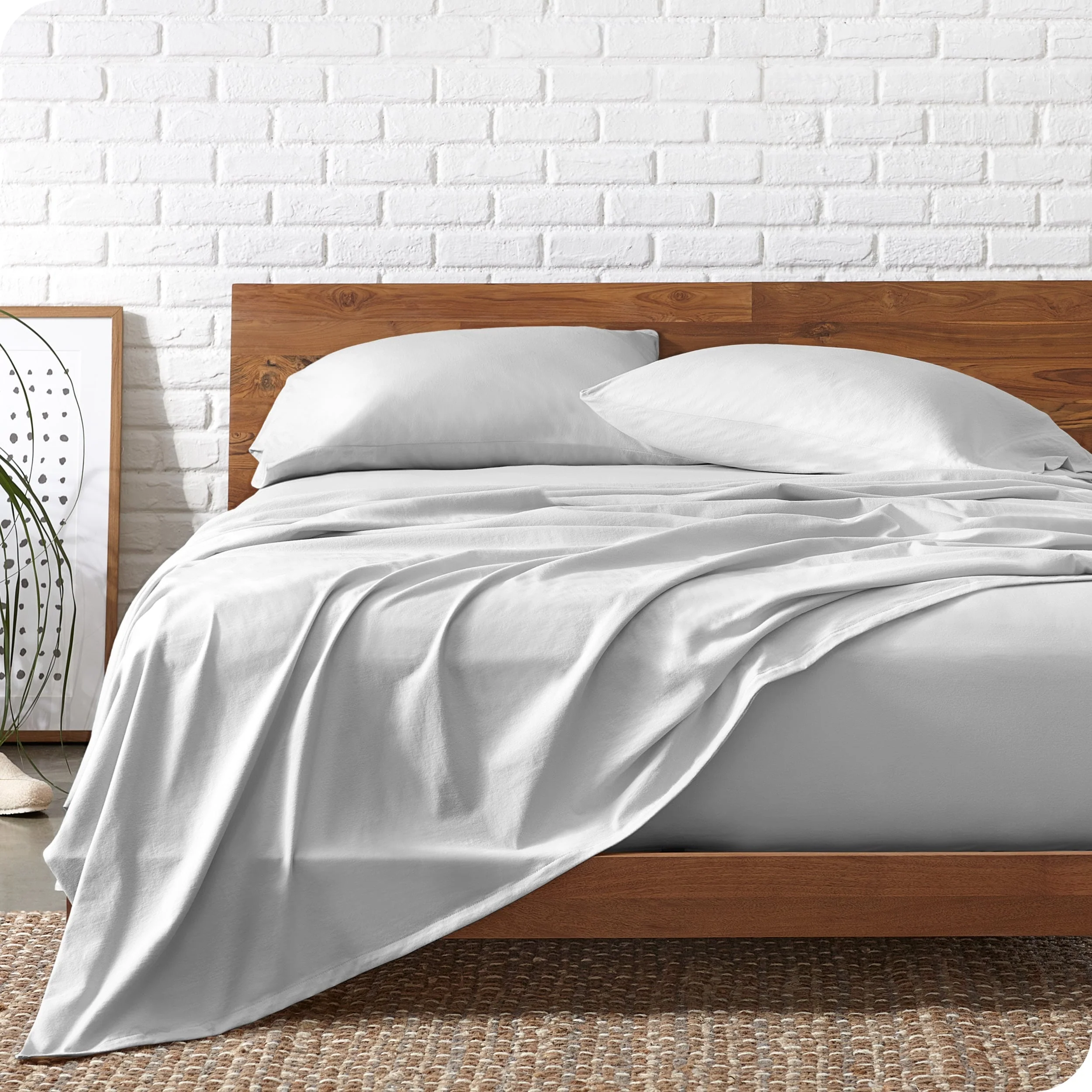 Expertly tailored to fit over any bed, this sheet set boasts deep pockets and a breathable design. The organic cotton jersey is cozy and inviting, evoking the feeling of sleeping in your favorite t-shirt. These sheets are soft, durable, and machine washable for your convenience.