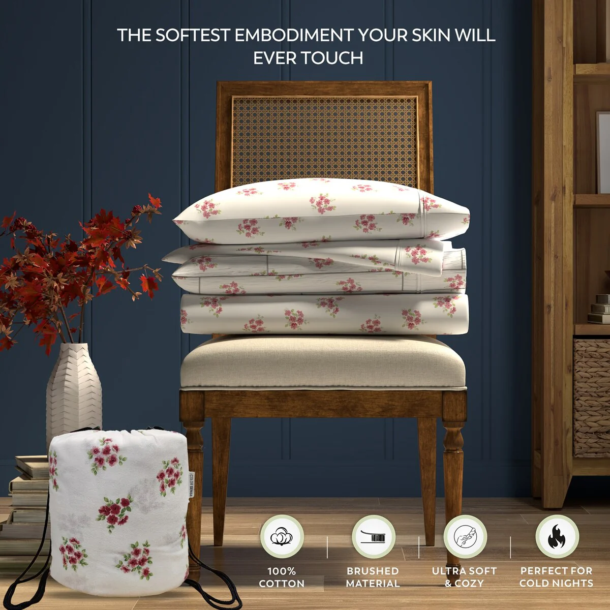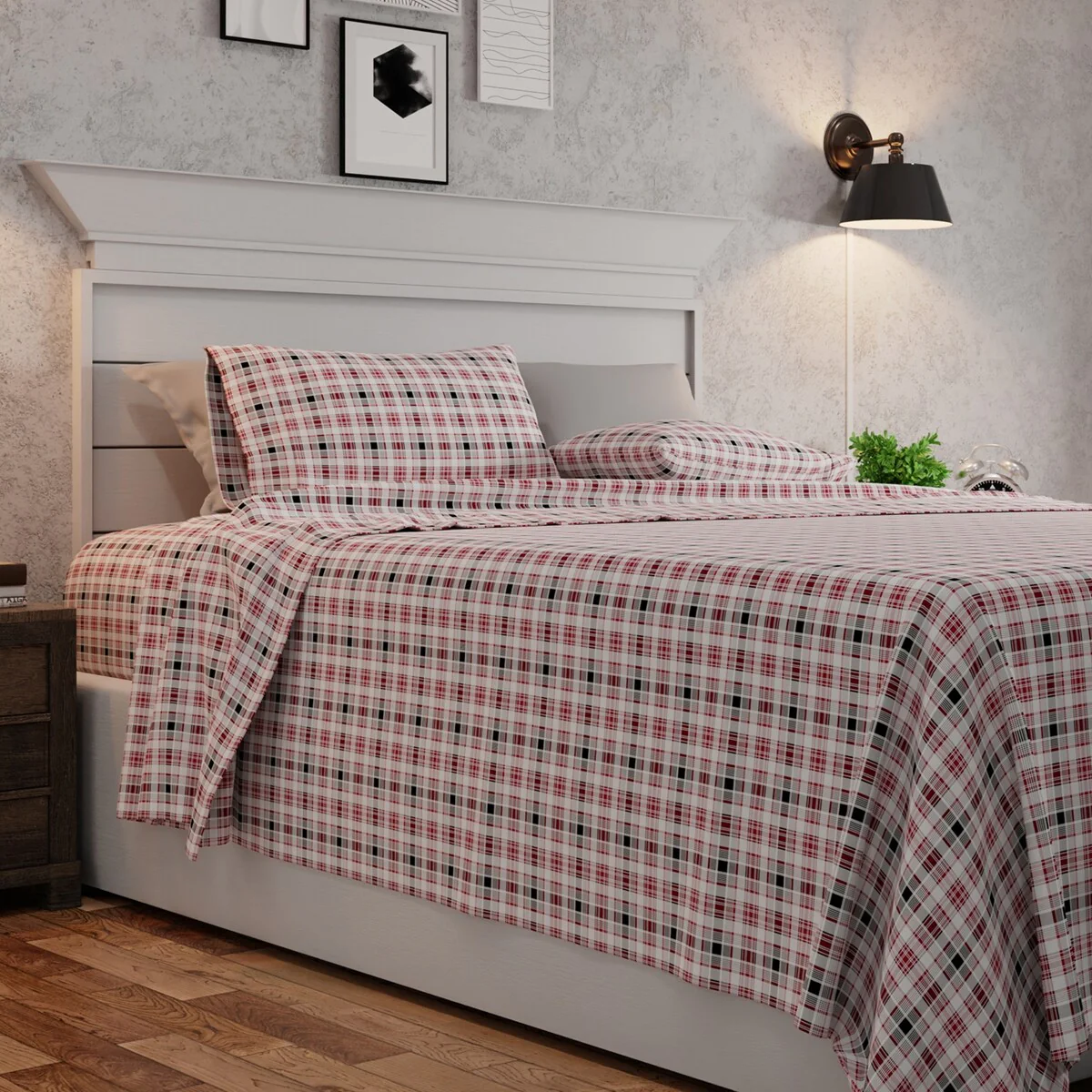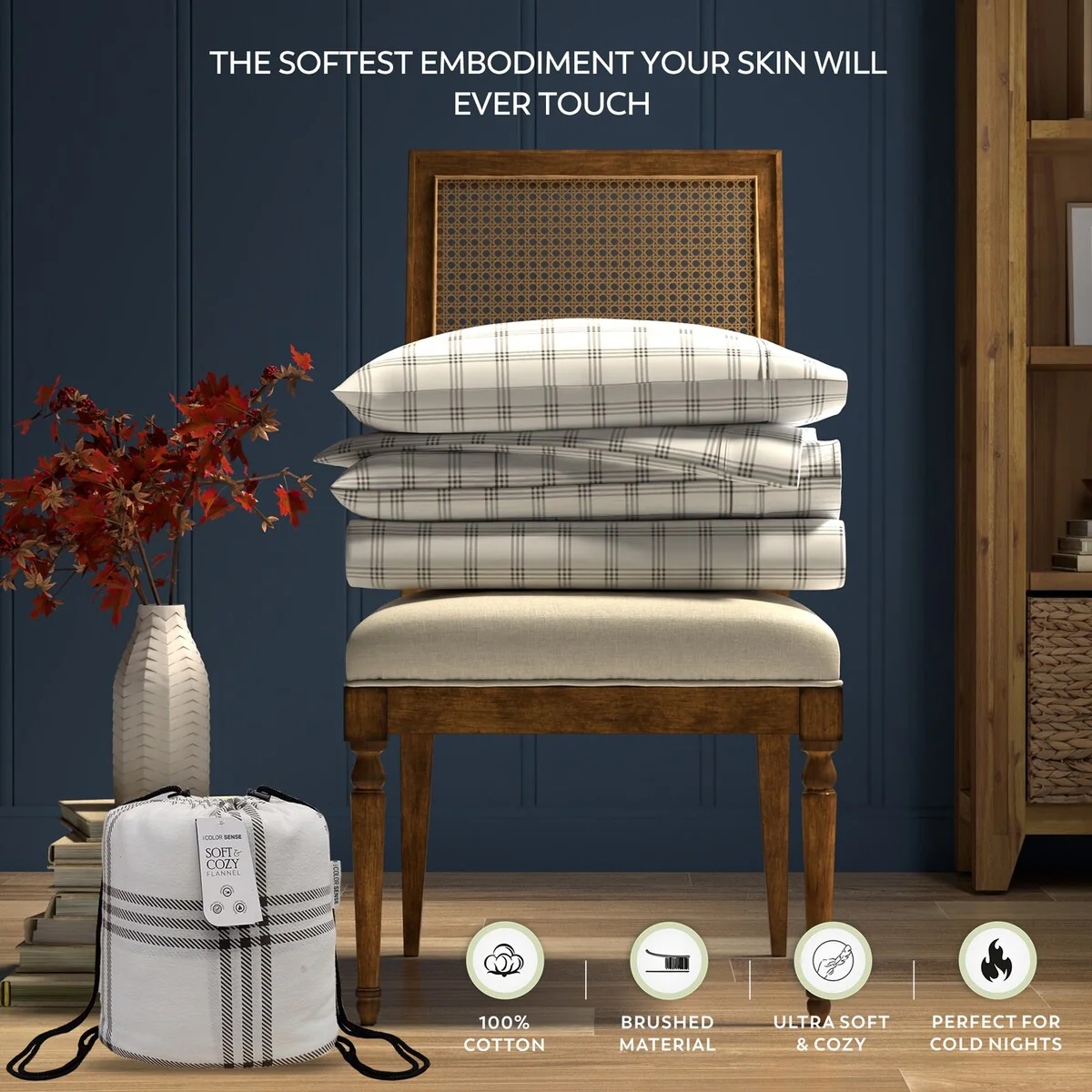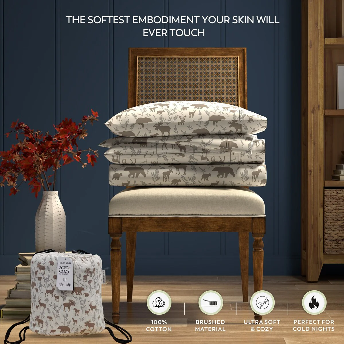 Unwind in pure bliss with the Color Sense 100% cotton 160GSM flannel sheet set. Featuring a brushed percale weave, this super-soft and cozy sheet set comes with a fuzzy/napped finish that is sure to keep you warm and comfortable all winter long. Also, these sheets come packed in a reusable drawstring bag, which is made of the same materials as sheets, making it a sustainable alternative for your storage needs. This high-quality sheet set is STANDARD 100 by OEKO-TEX certified which means it is made in environmentally friendly facilities under safe and socially responsible working conditions for credible safety and reliability. It comes in two sizes - Queen and King to best suit your need.