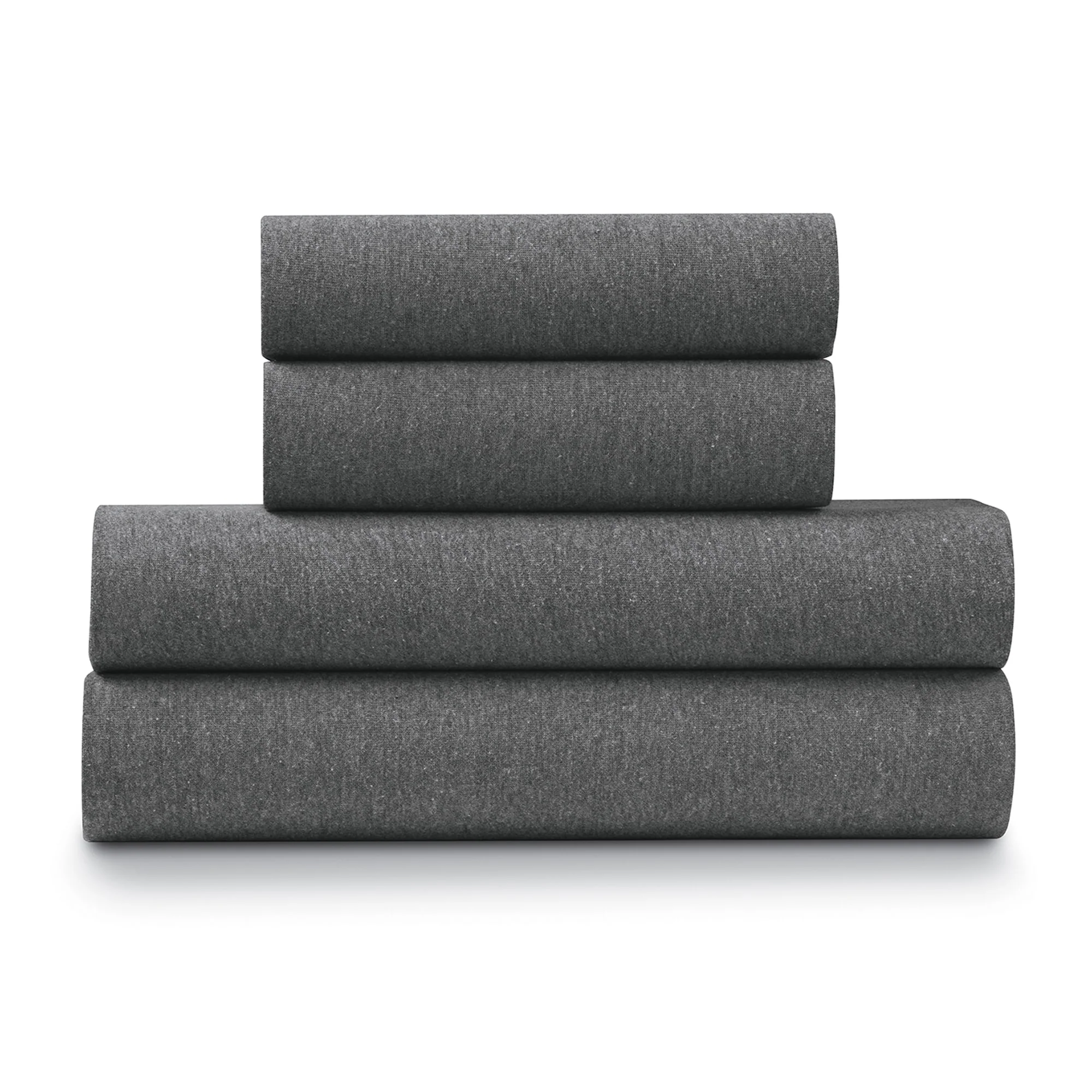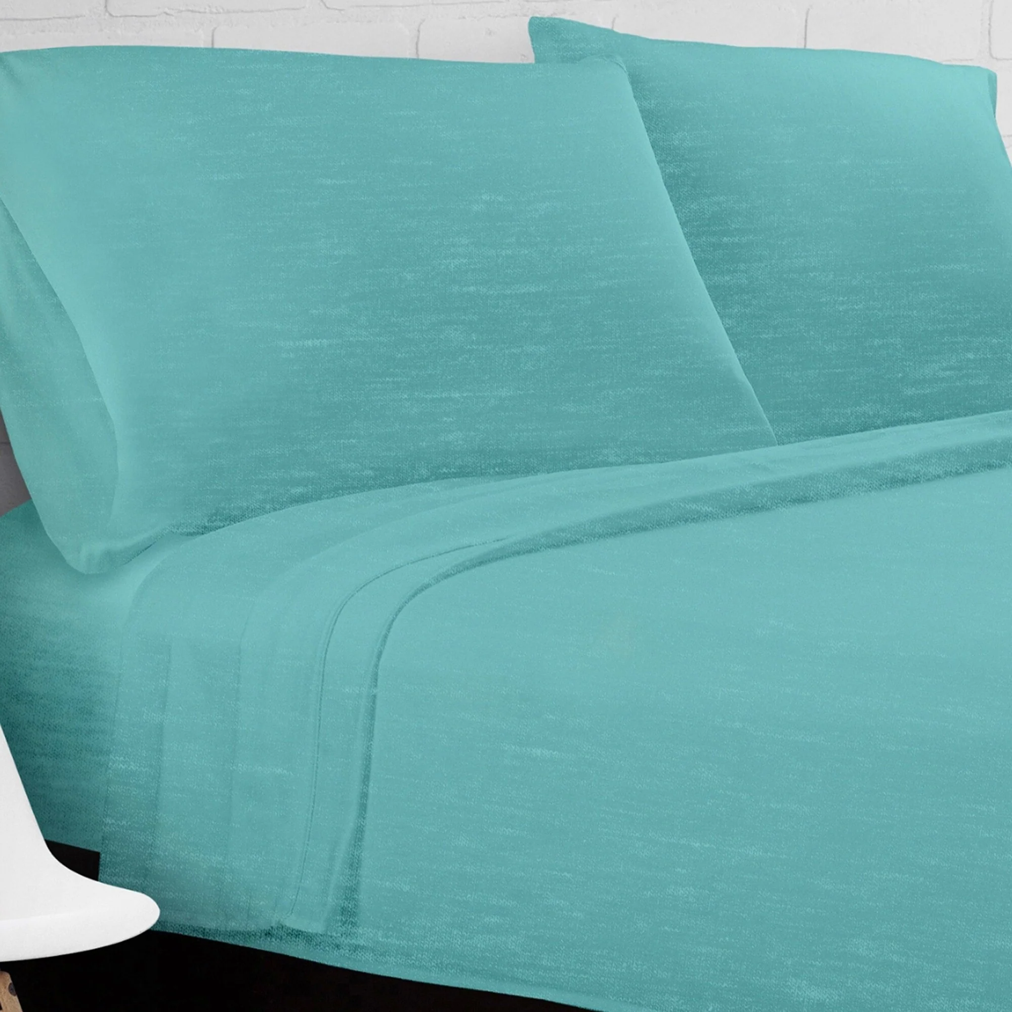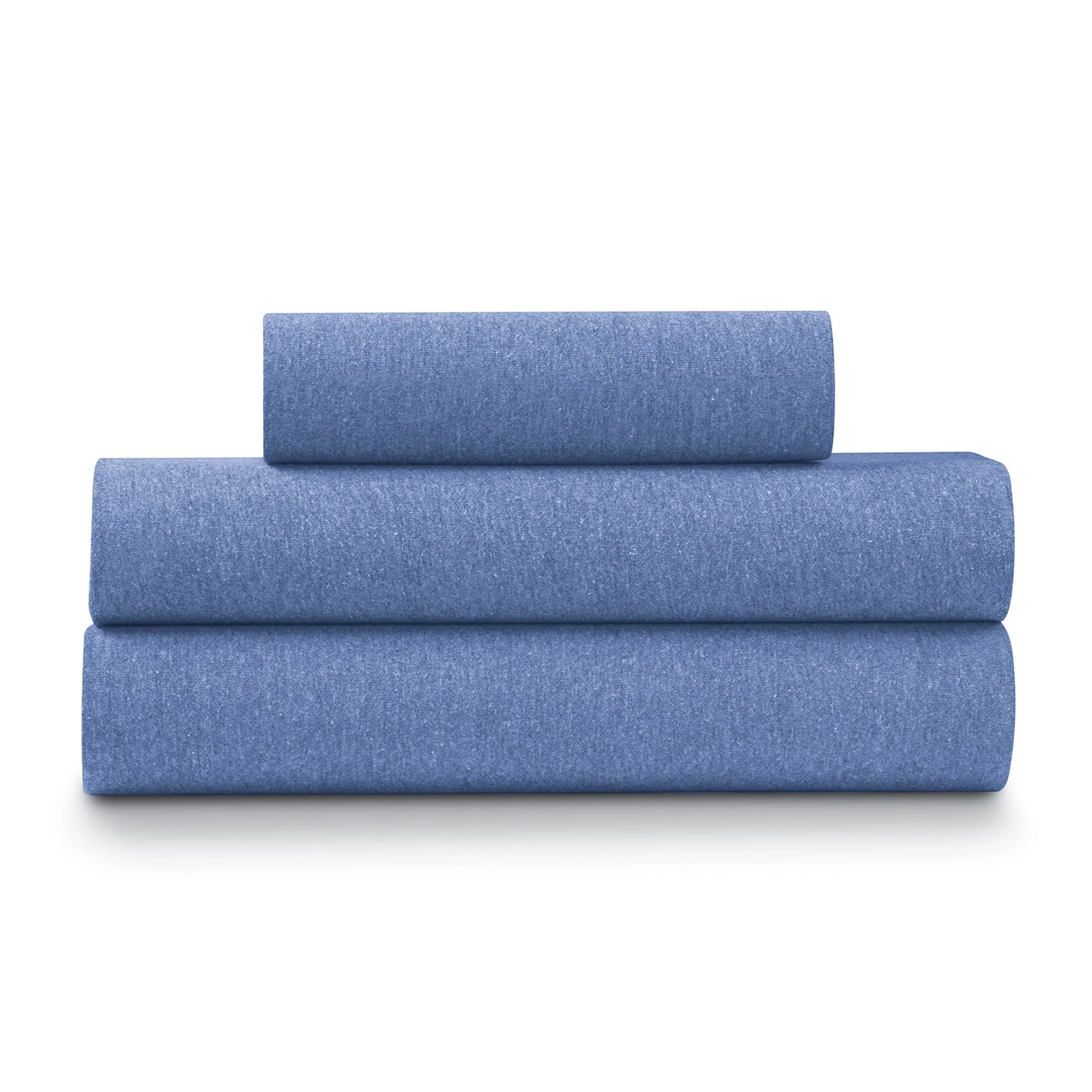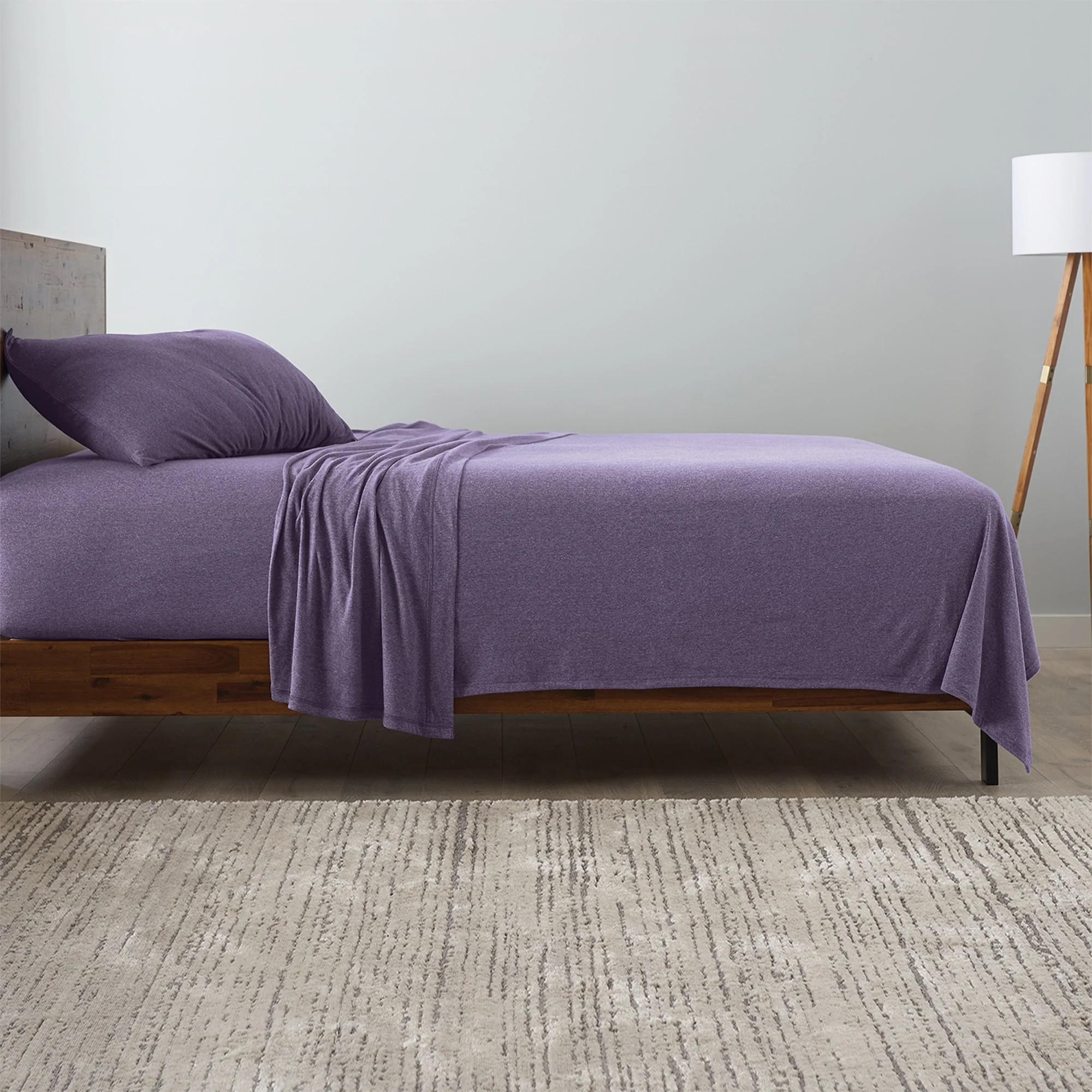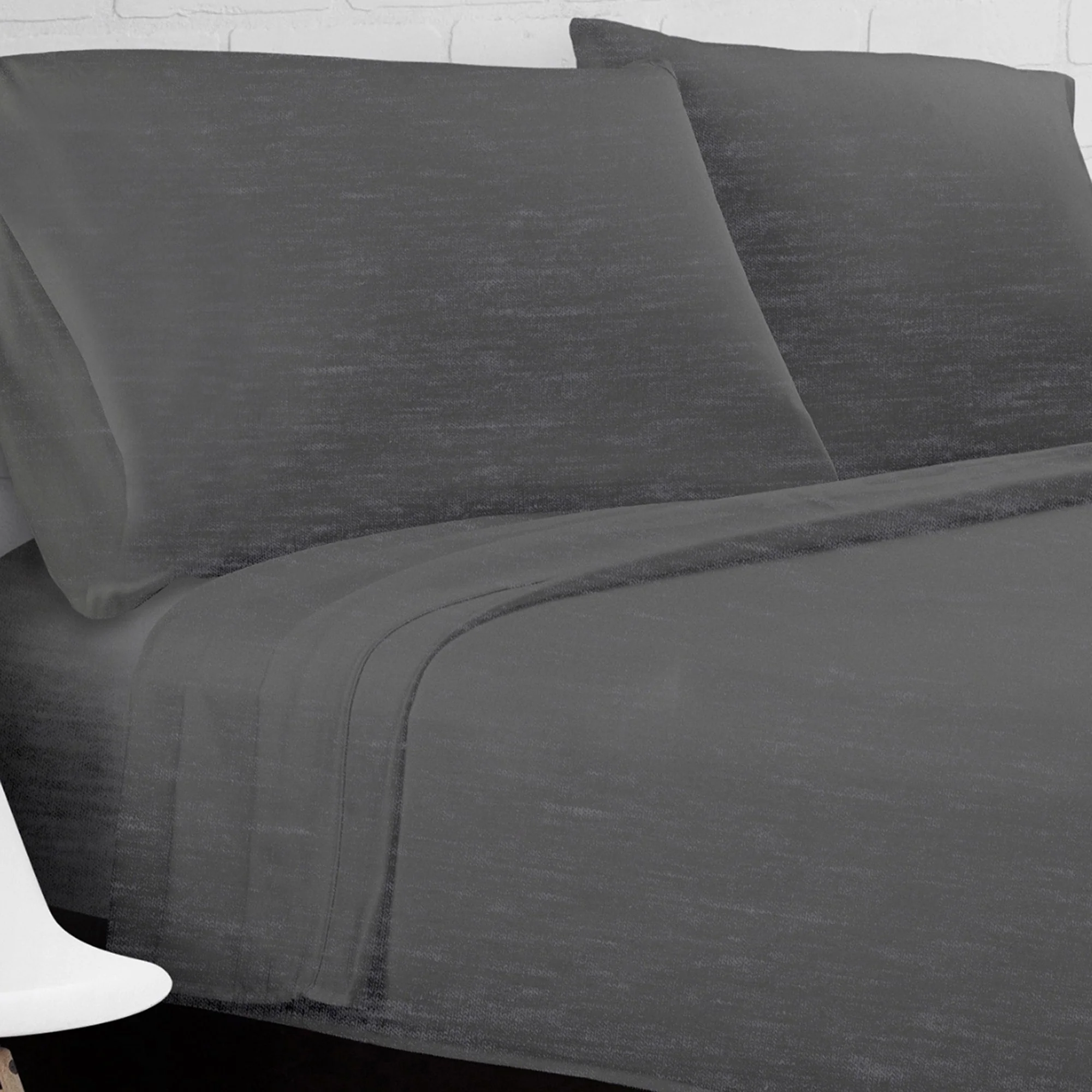 Enjoy unparalleled comfort as you slip into bed on these jersey-knit sheets. These sheets feel like an ultra-soft T-shirt and they are machine washable for easy care. Choose from a variety of color options, each with a lovely heathered look.