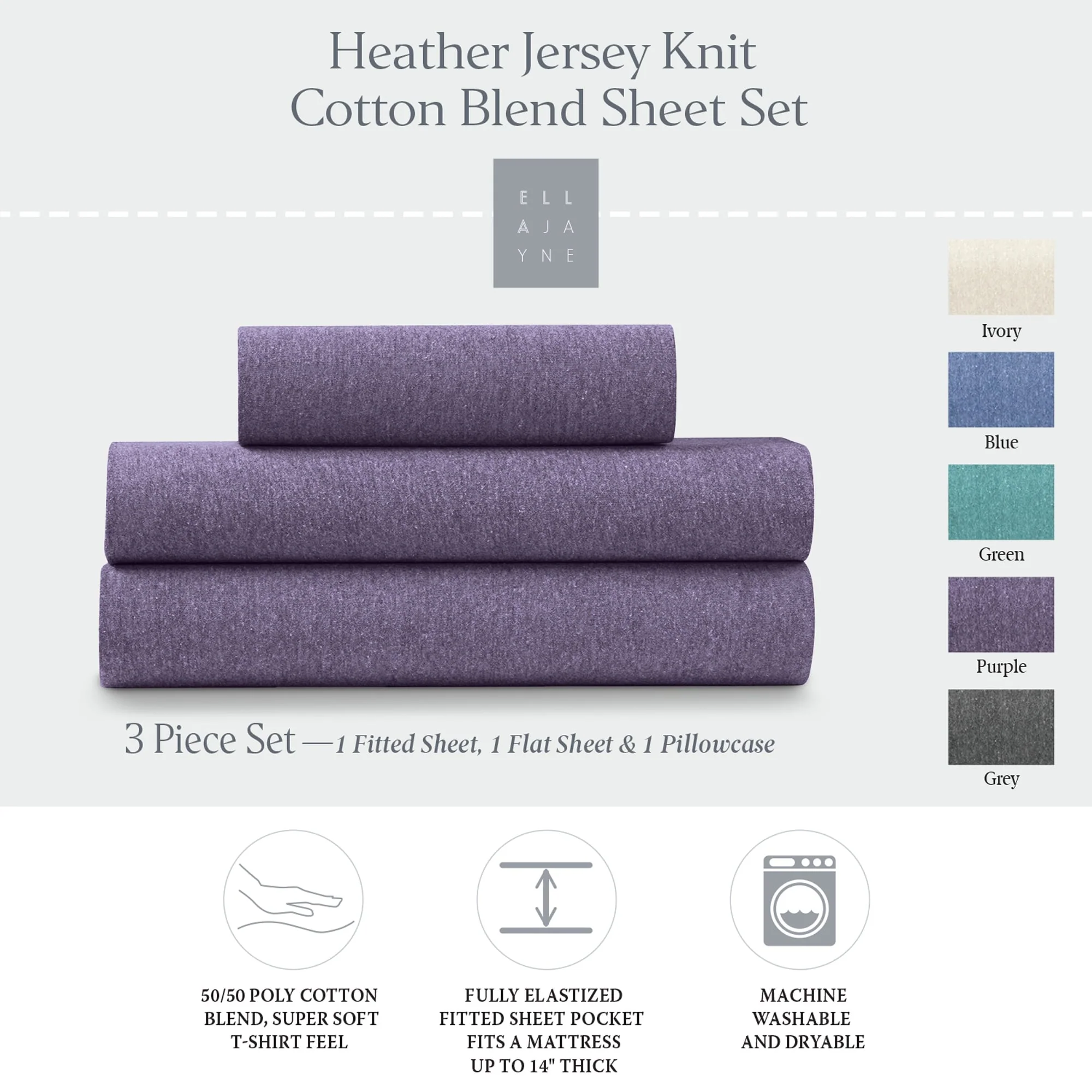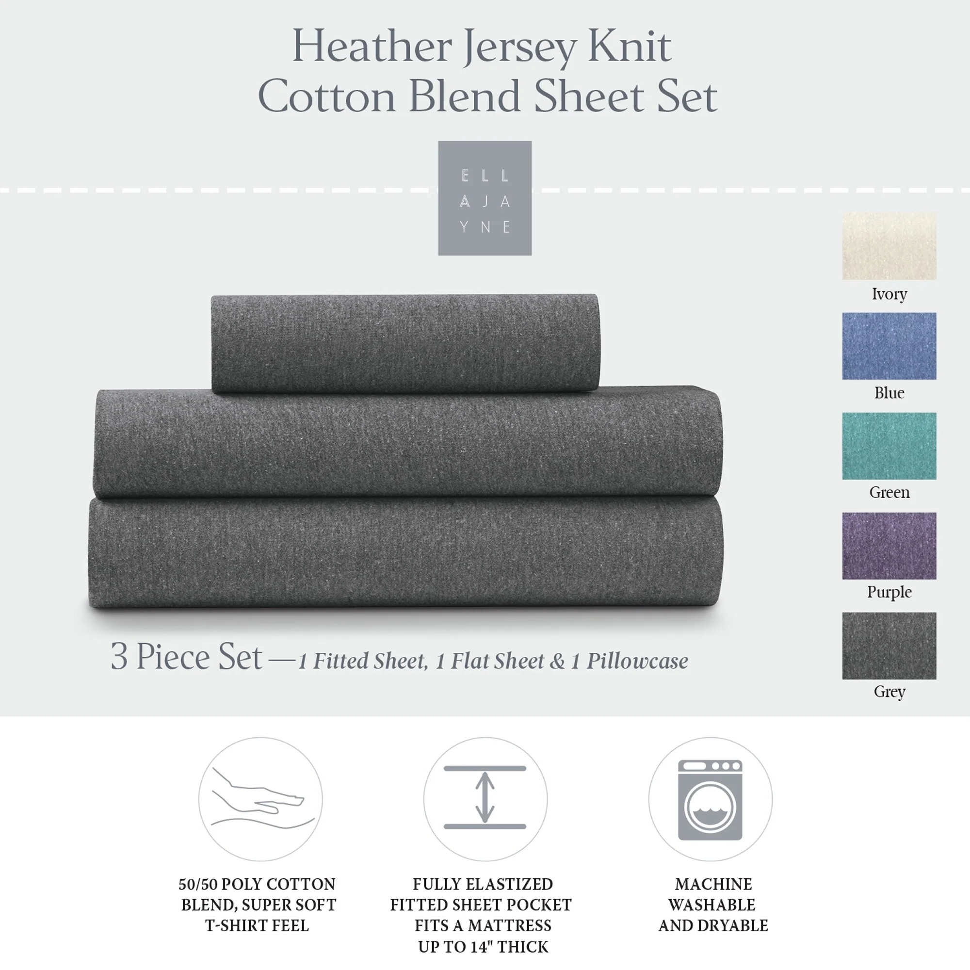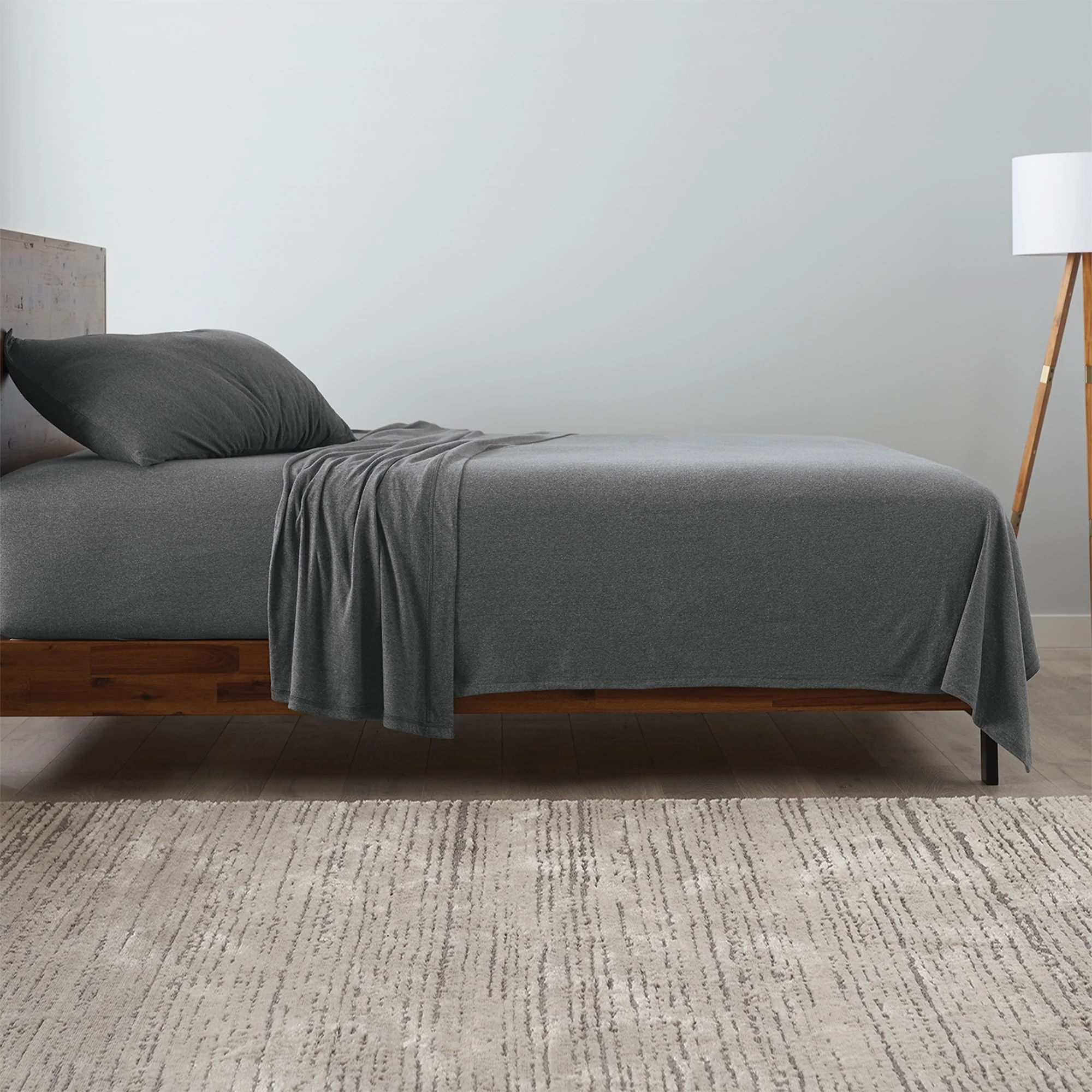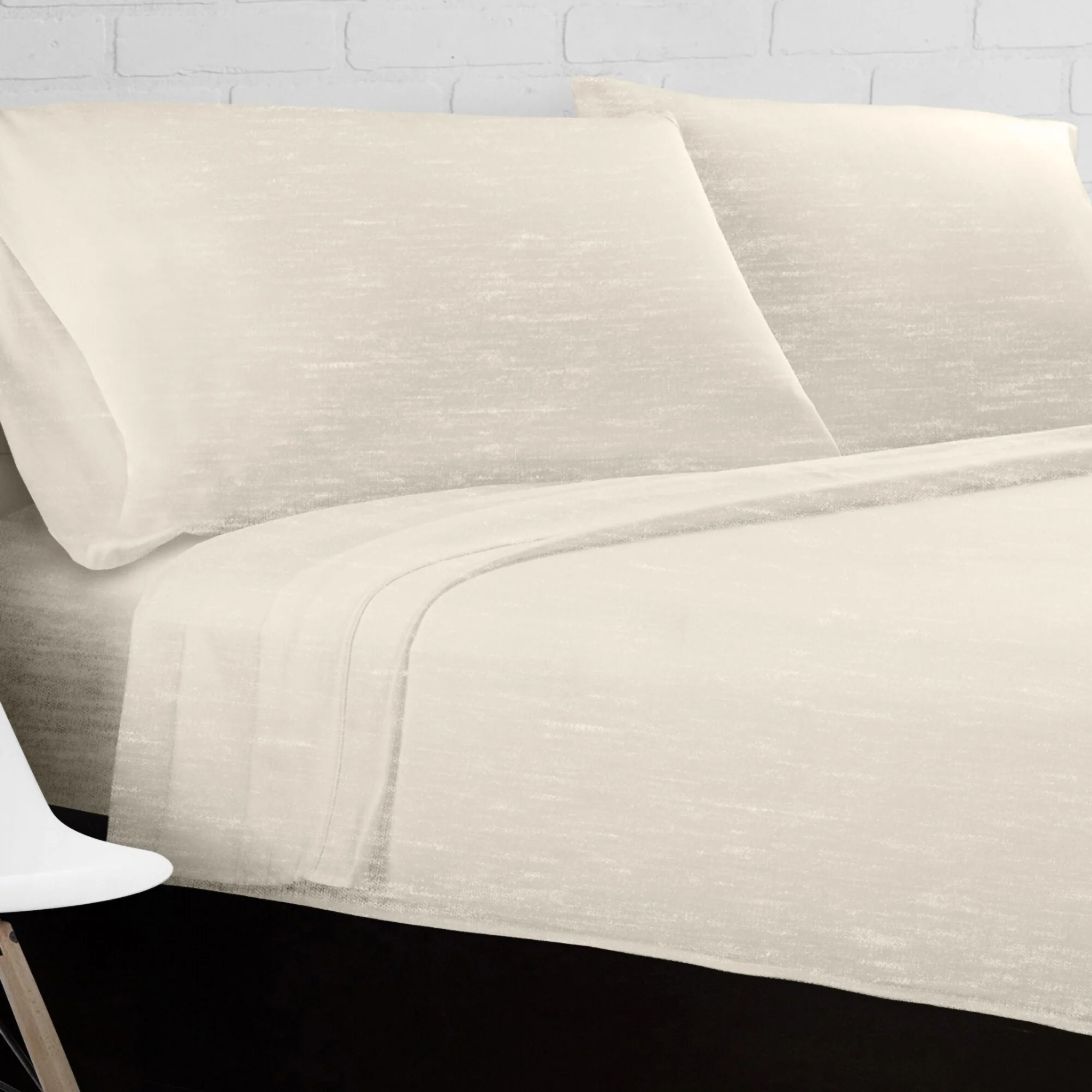 Enjoy unparalleled comfort as you slip into bed on these jersey-knit sheets. These sheets feel like an ultra-soft T-shirt and they are machine washable for easy care. Choose from a variety of color options, each with a lovely heathered look.