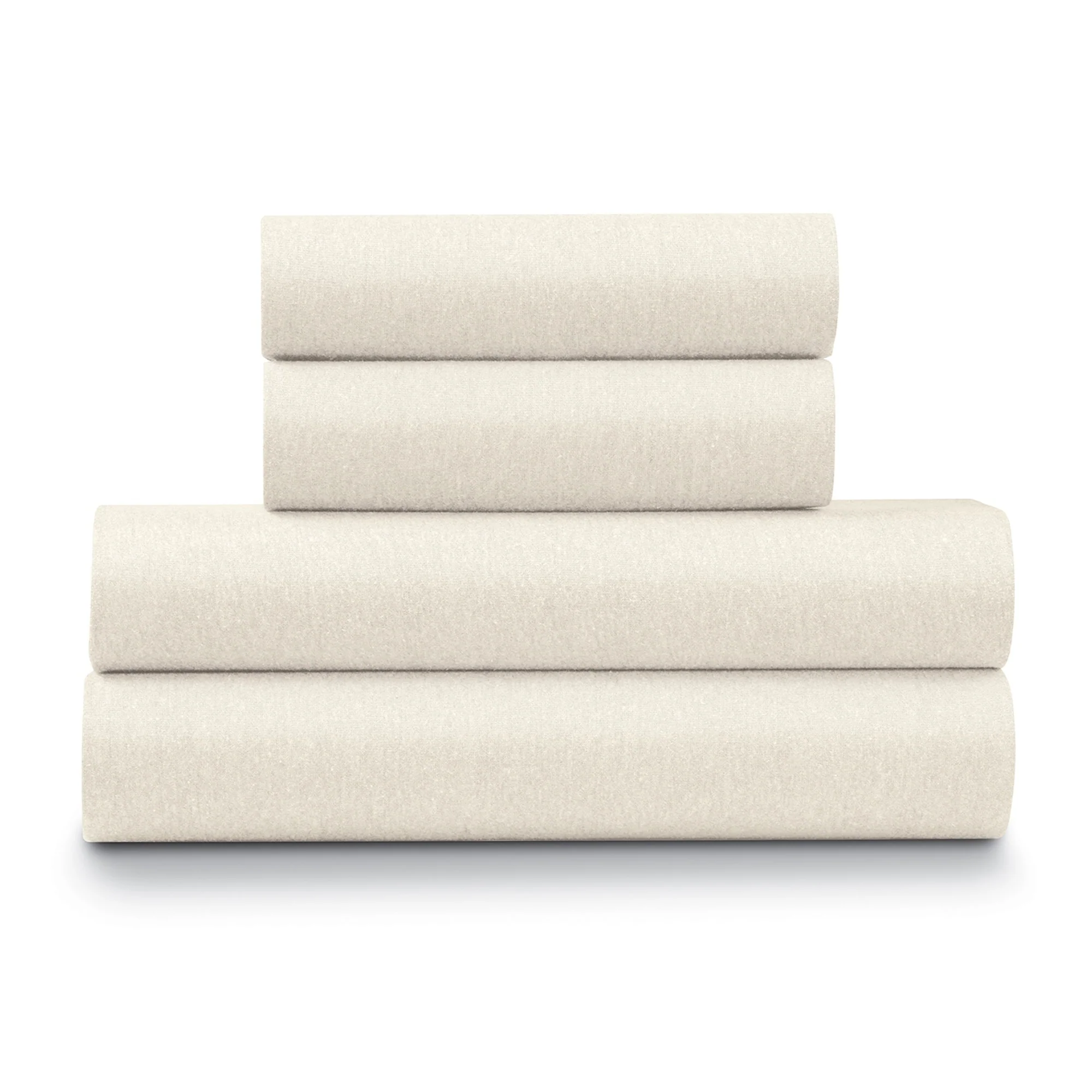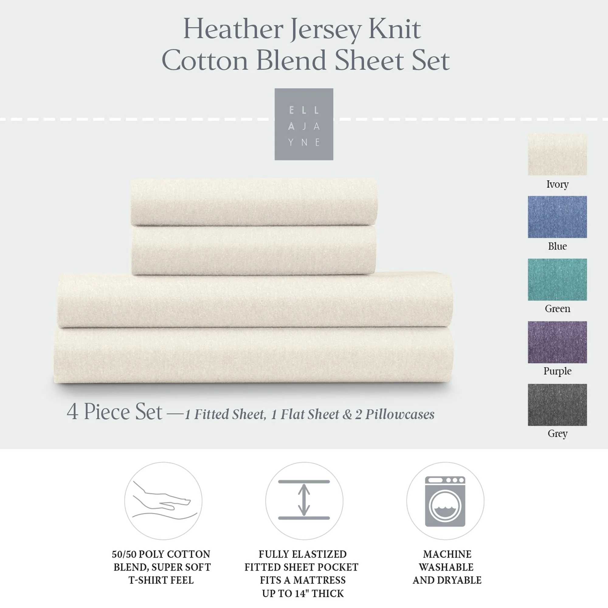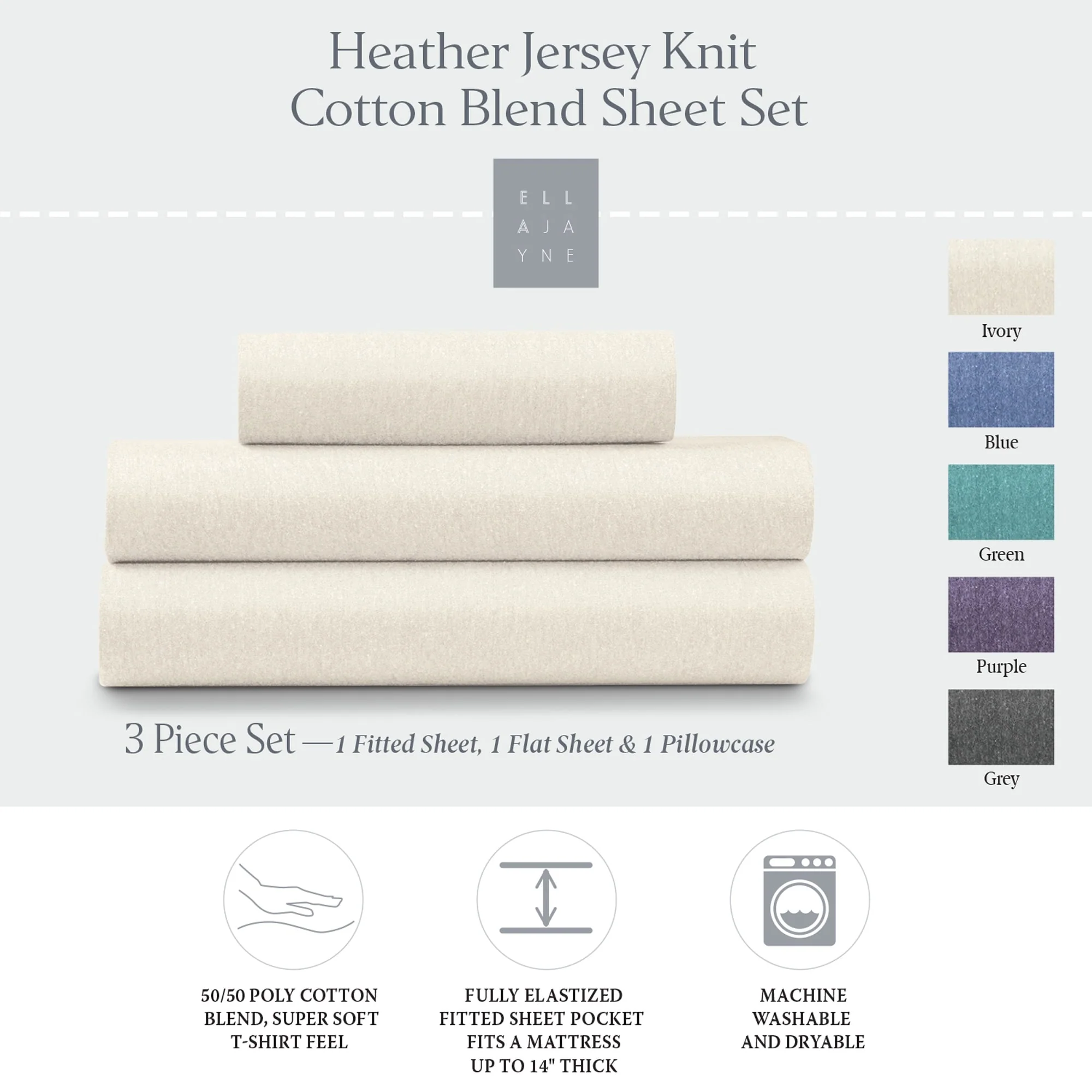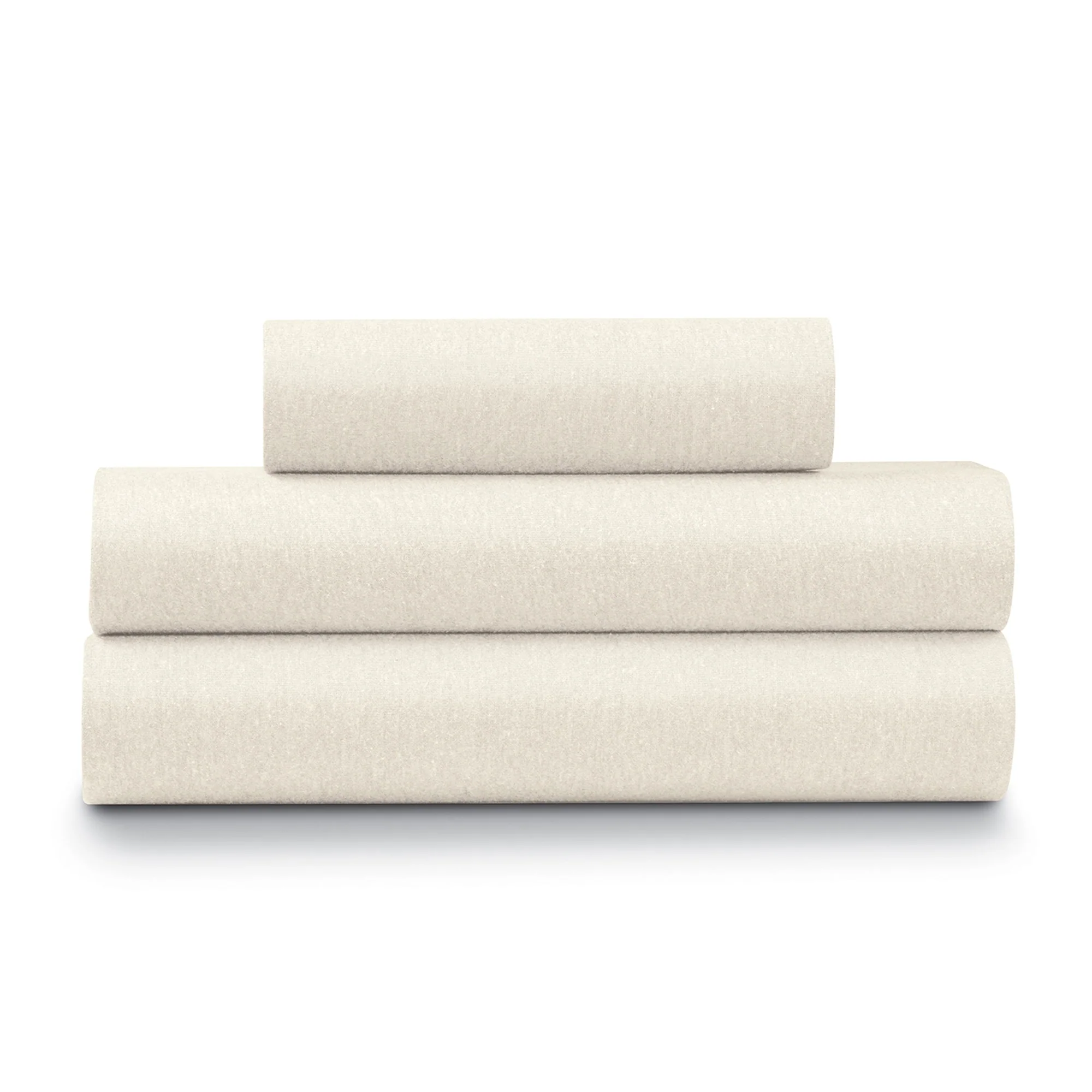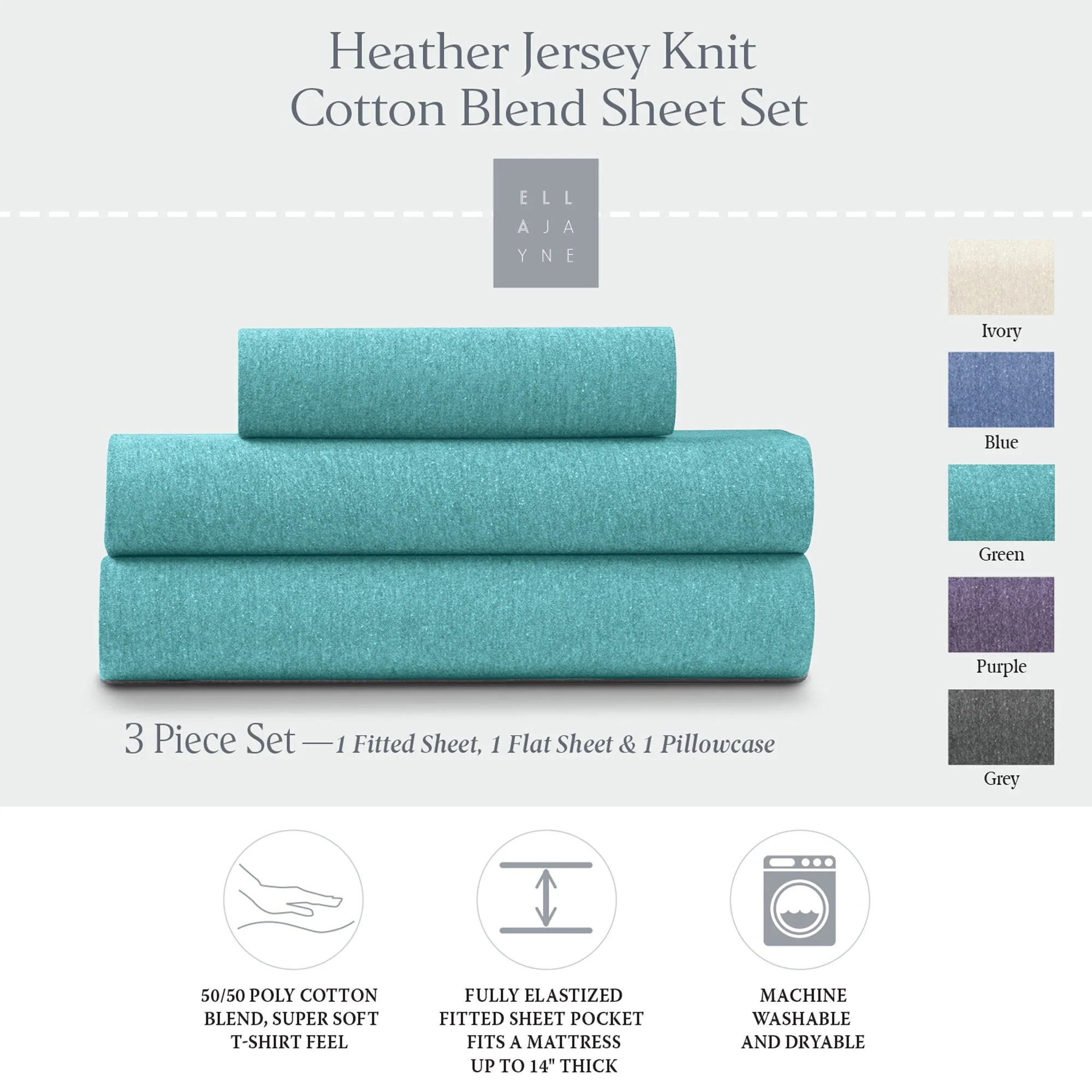 Enjoy unparalleled comfort as you slip into bed on these jersey-knit sheets. These sheets feel like an ultra-soft T-shirt and they are machine washable for easy care. Choose from a variety of color options, each with a lovely heathered look.