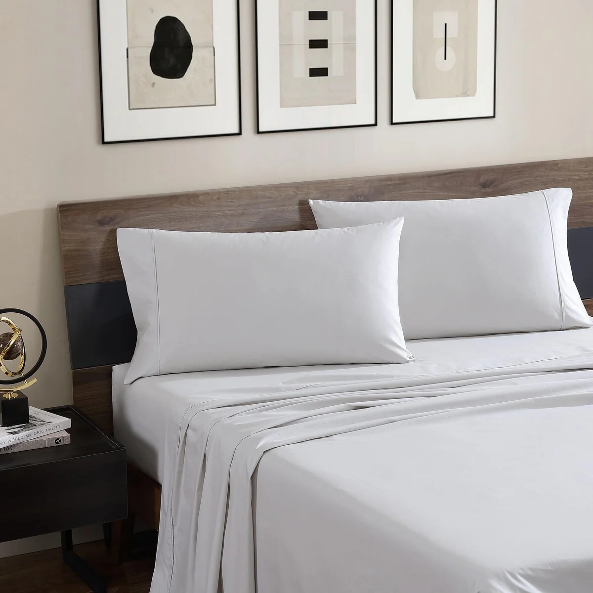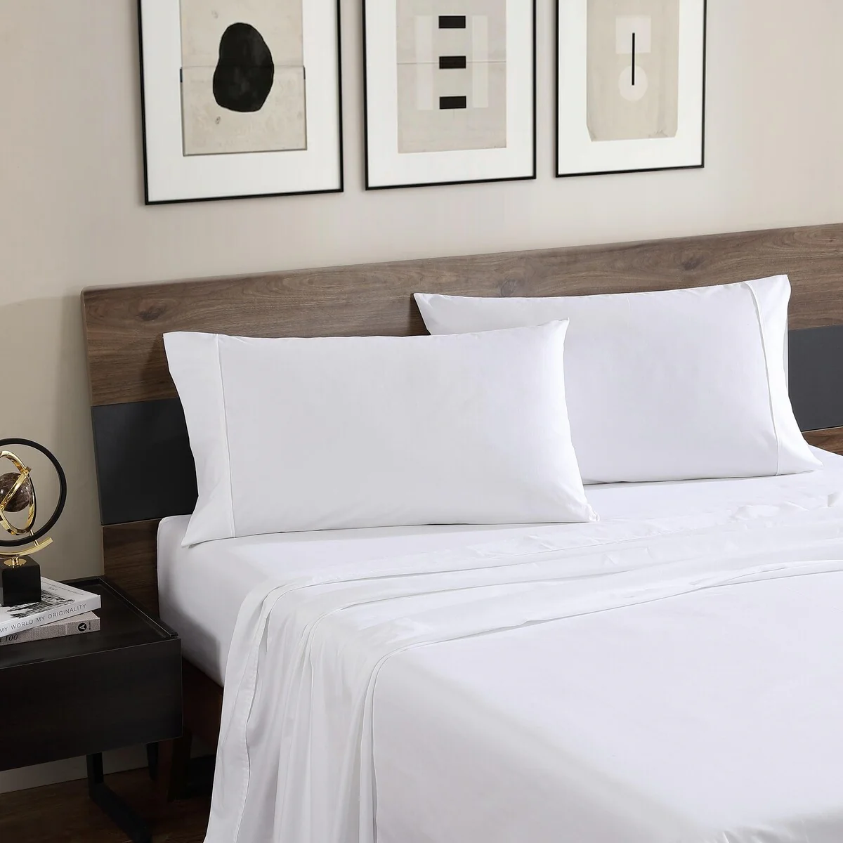 - One flat sheet, one fitted sheet and one standard pillowcase