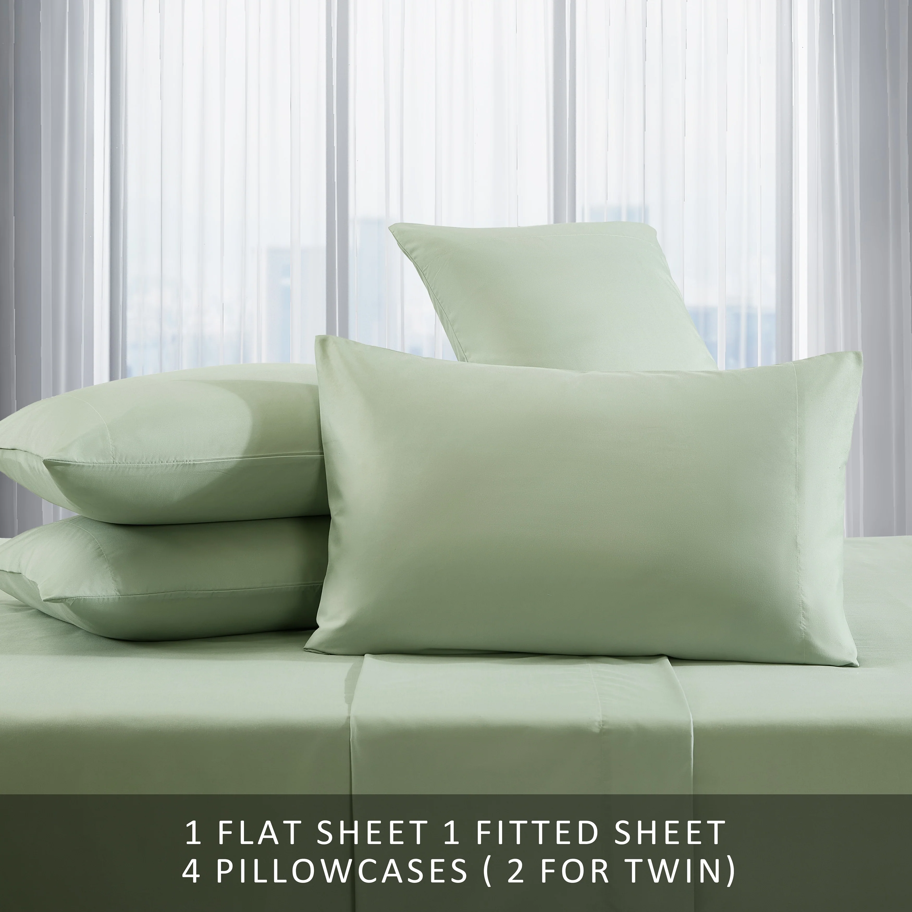 Twin Sheet Set includes: One flat sheet (96'L x 66'W), one fitted sheet (75'L x 39'W) and two standard pillowcases (20'L x 30'W)