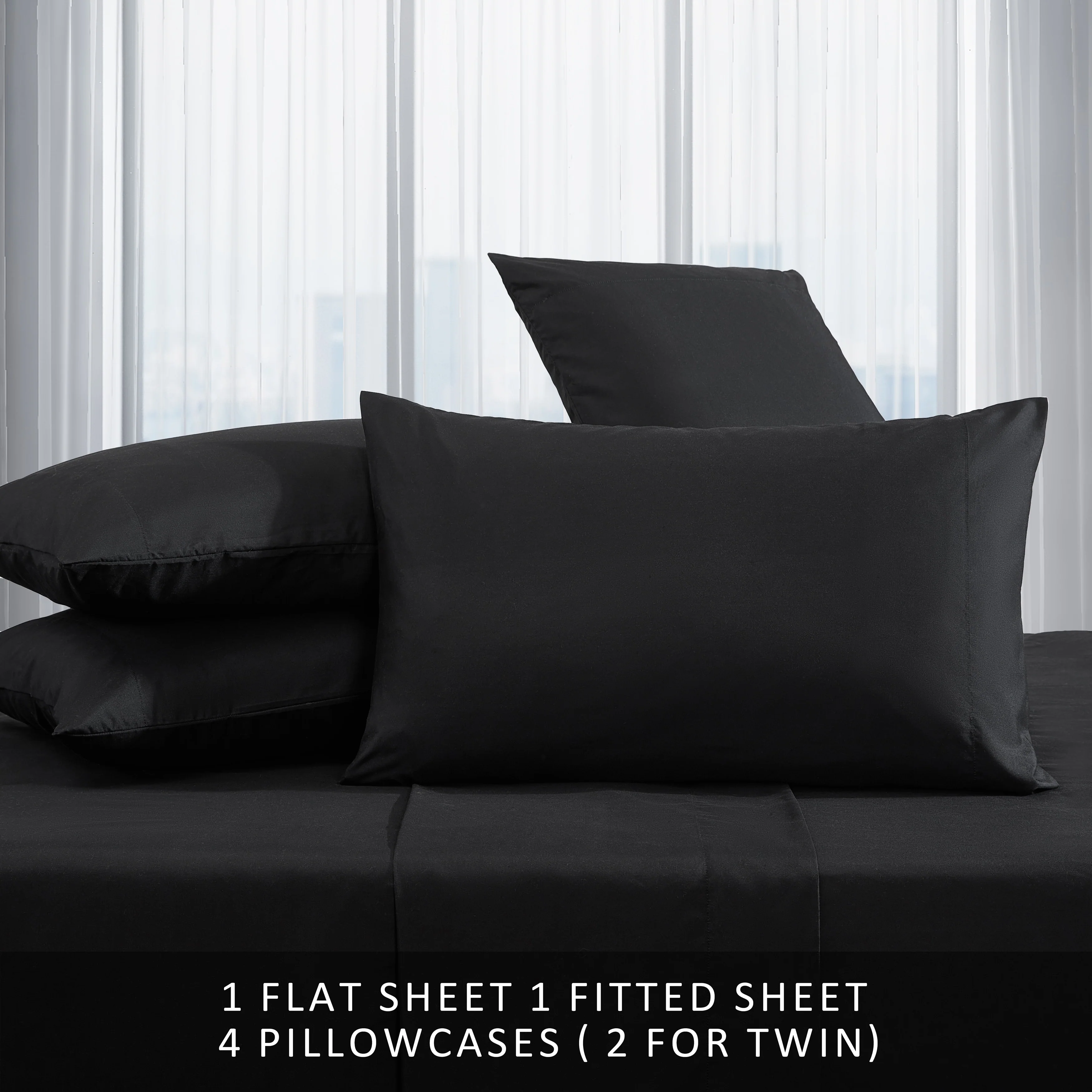 - Set includes a fully elastic deep pocket fitted sheet- installed all-around to keep the fitted sheet in place