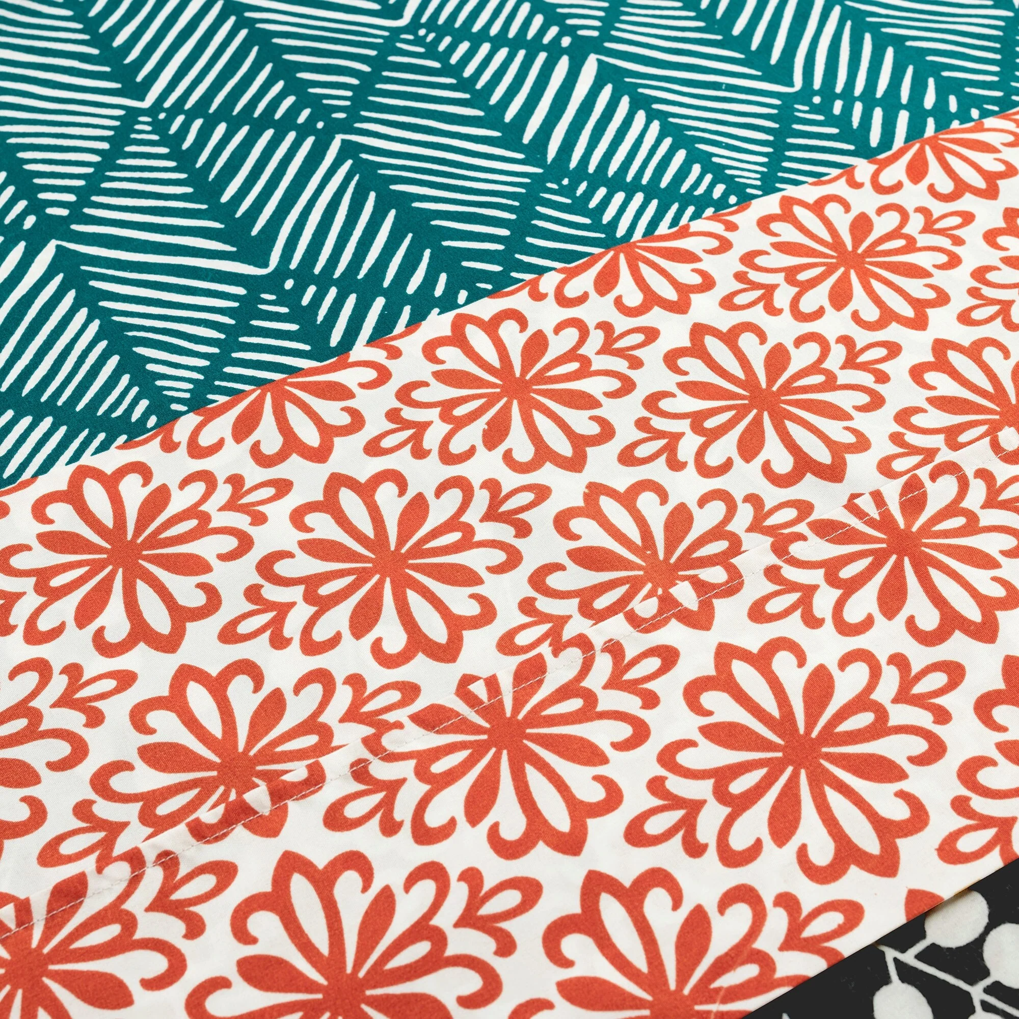 Decorate your bohemian bedroom by starting with the basics - the sheets. This complete sheet set is embellished with swirls of botanical patterns and geometric shapes in an exciting color palette. Each piece of this set is made with naturally hypoallergenic fabric that is so soft to the touch. These sheets are durable and will last many nights. Comfort is key with bed sheets, and this material is very breathable and is sure to keep you cool all year long. The free-spirited pattern pairs perfectly with its coordinating bedding set or can be styled independently. This set includes 1 flat sheet, 1 fitted sheet, 2 matching pillowcases and 2 solid pillowcases. The fitted sheet has a 9 inch drop. For your convenience this sheet set has easy care instructions. Please refer to the care label for best results.