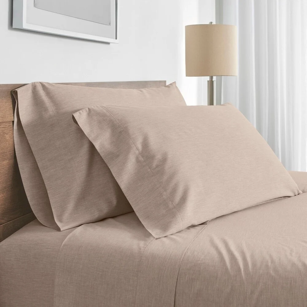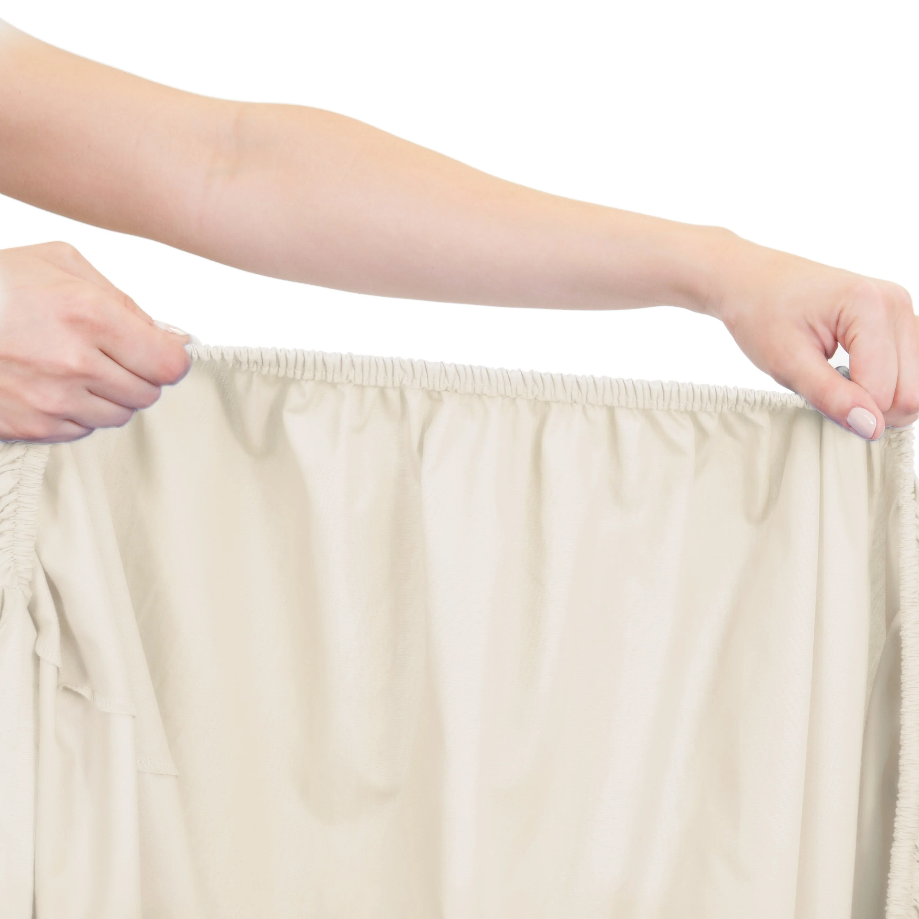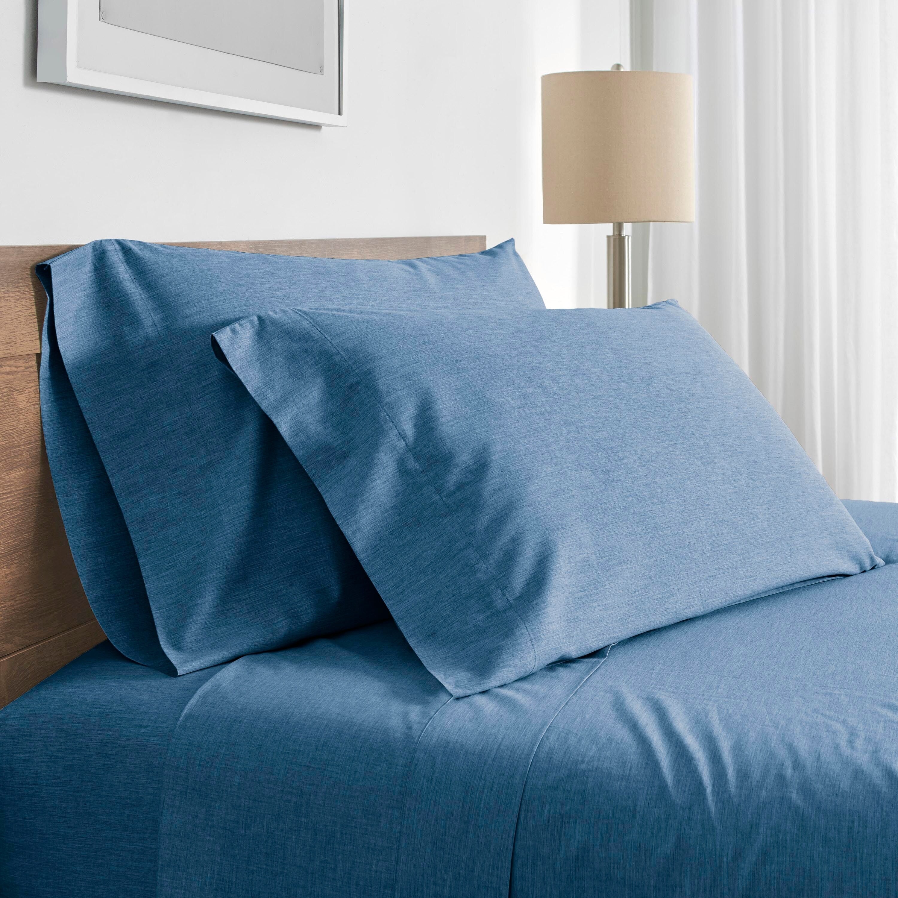 This super soft and satiny 300-thread count sheet set is 100-percent cotton. Offered in your choice of a variety of colors, this sheet set is a perfect match for your decor. Deep pocket fitted sheets, with elastic edging all around, will fit mattresses up to 19-inches deep. Set includes flat and fitted sheet.