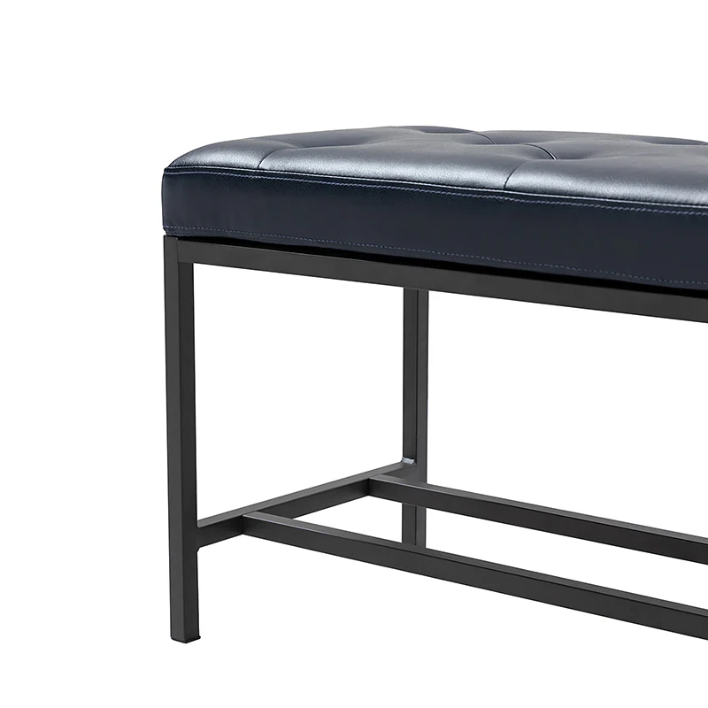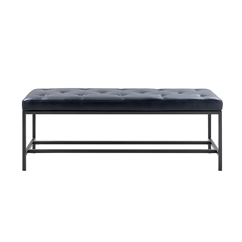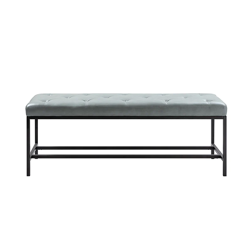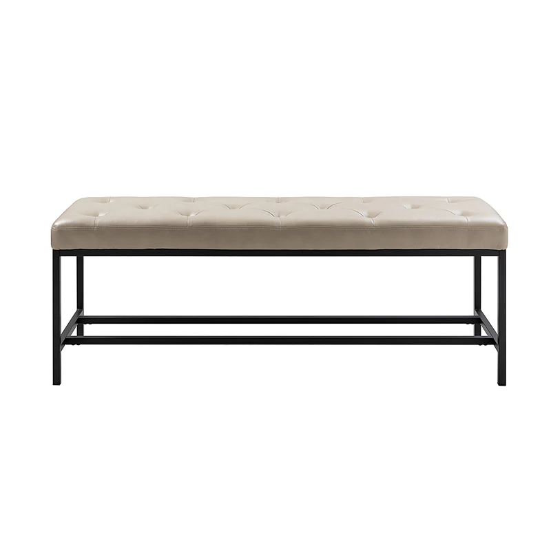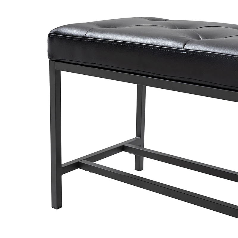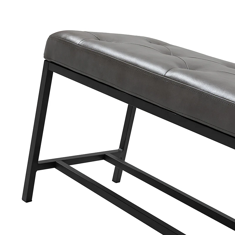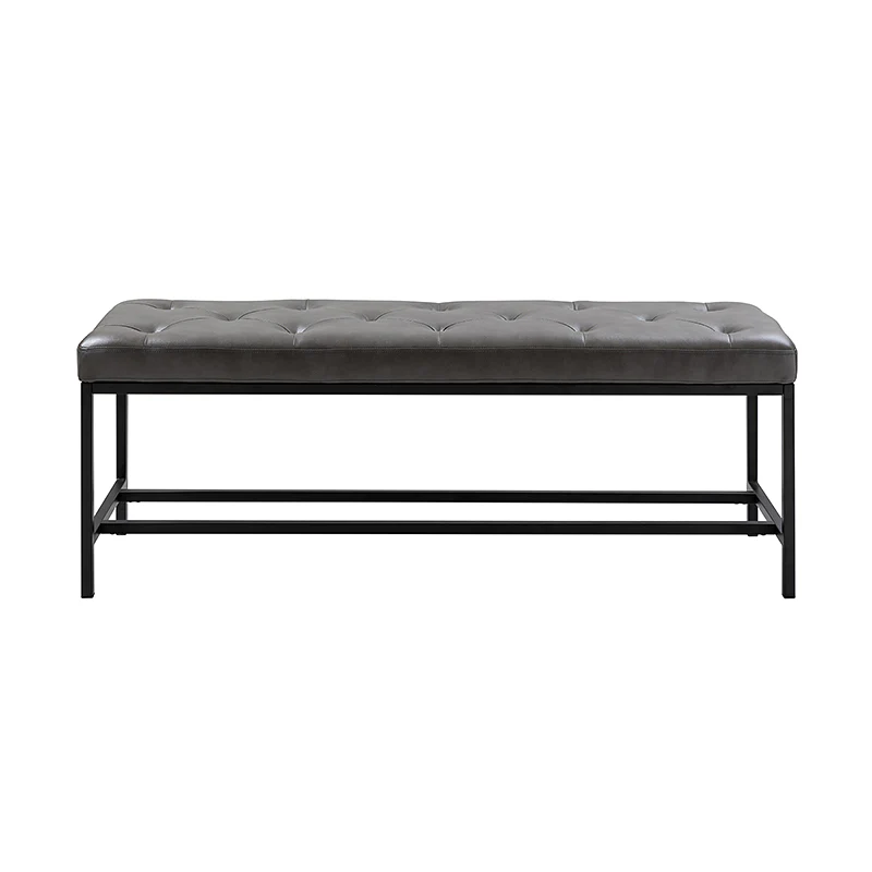 Presenting the epitome of elegance, behold this exquisite bench that flawlessly combines the finest elements of industrial, contemporary, transitional, vintage, and modern styles. Crafted with meticulous precision, its vegan leather upholstery showcases its timeless beauty and ensures effortless cleaning. With its versatile placement options, this bench becomes a dining companion, an end-of-bed luxury, a comfy footrest, or even a makeshift coffee table, adapting effortlessly to your ever-changing needs. The inclusion of a storage shelf adds practicality to its charm, while the button-tufted accents elevate its sophistication. Embrace the ease of maintenance and revel in its multifunctional design, as this remarkable bench enhances your home with its aesthetics and functionality.