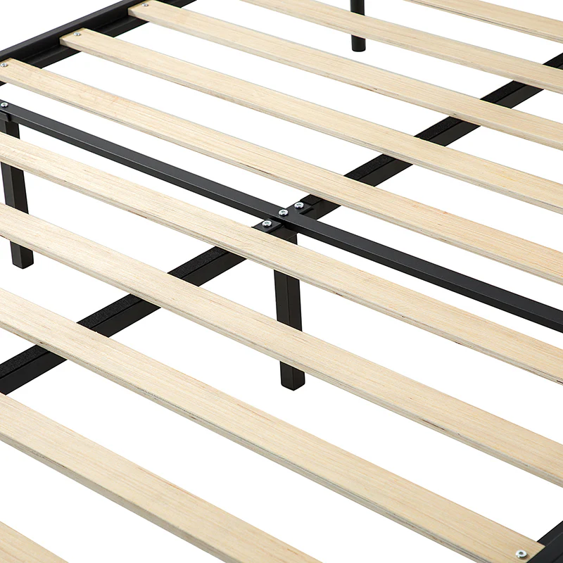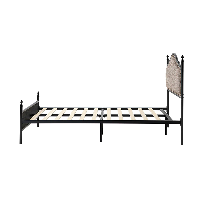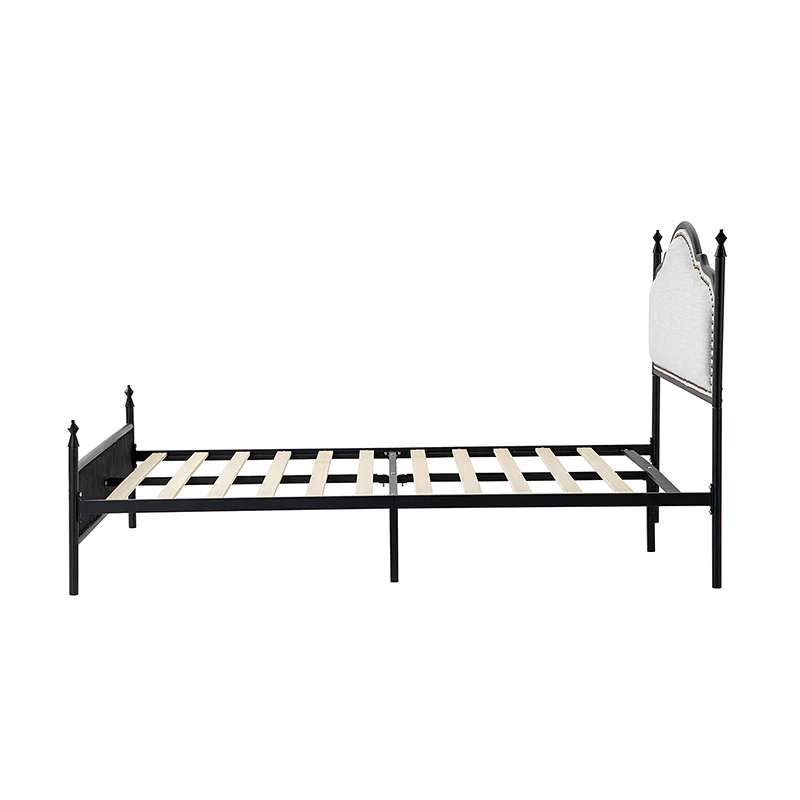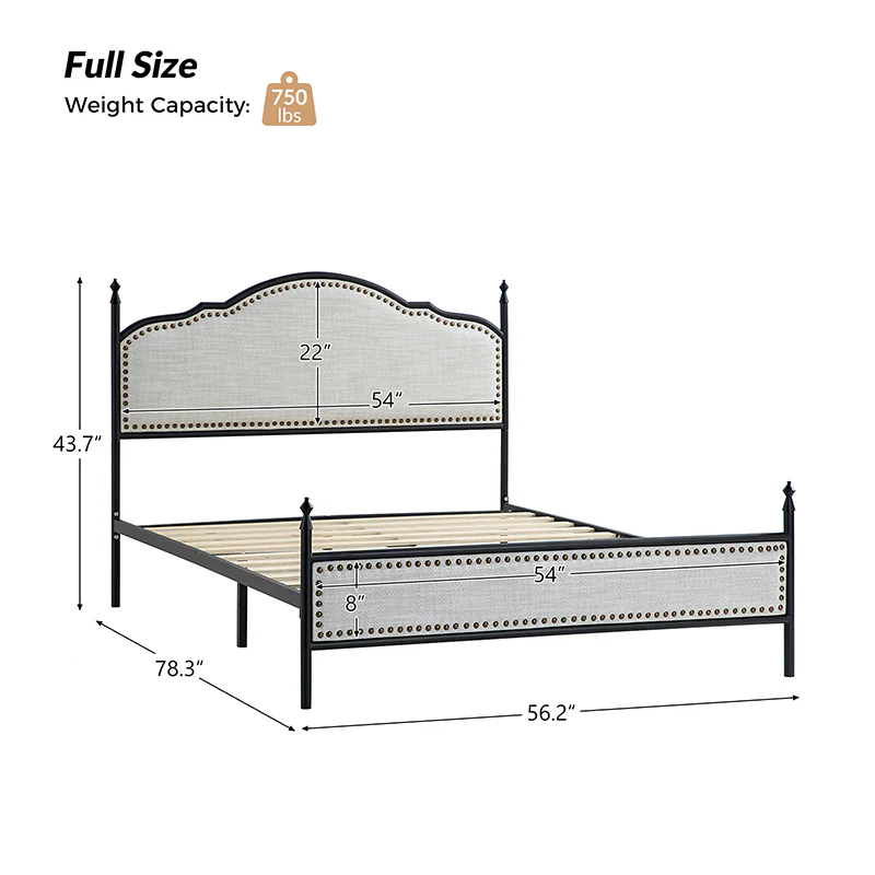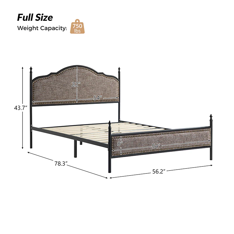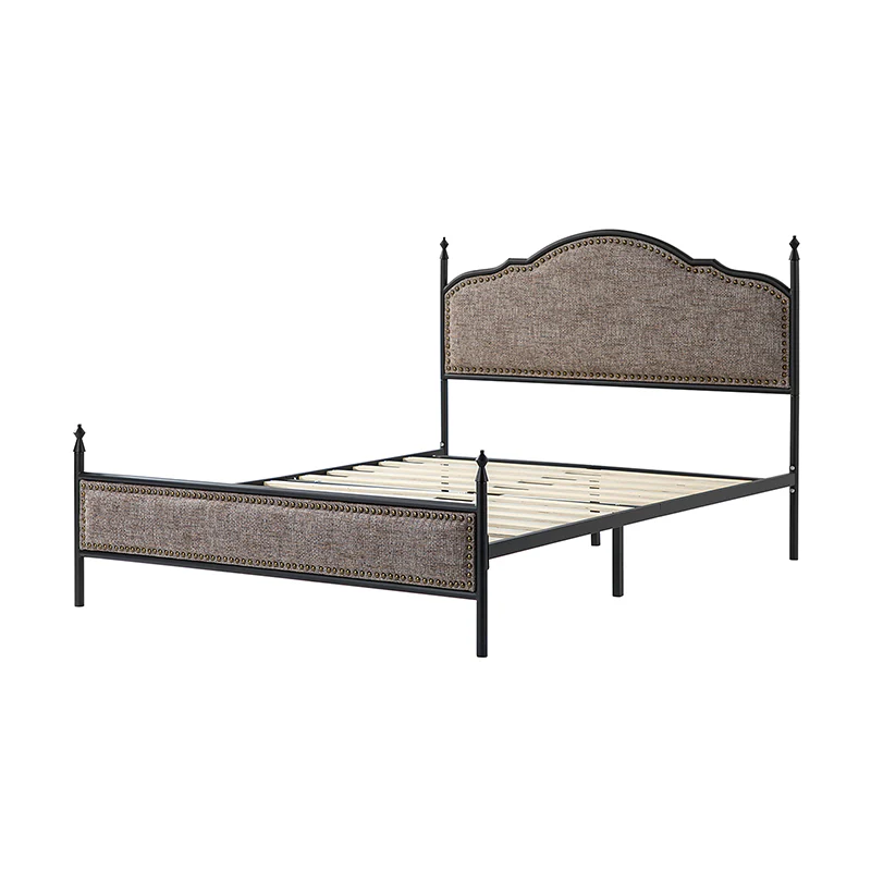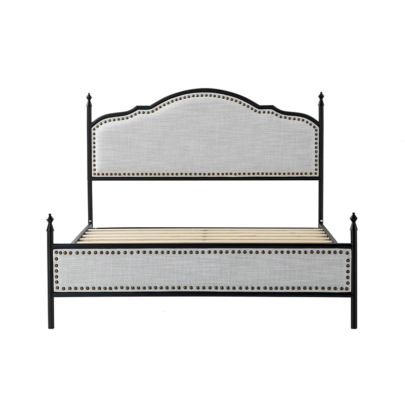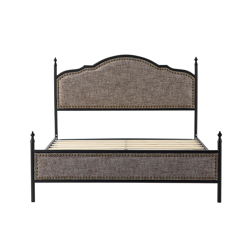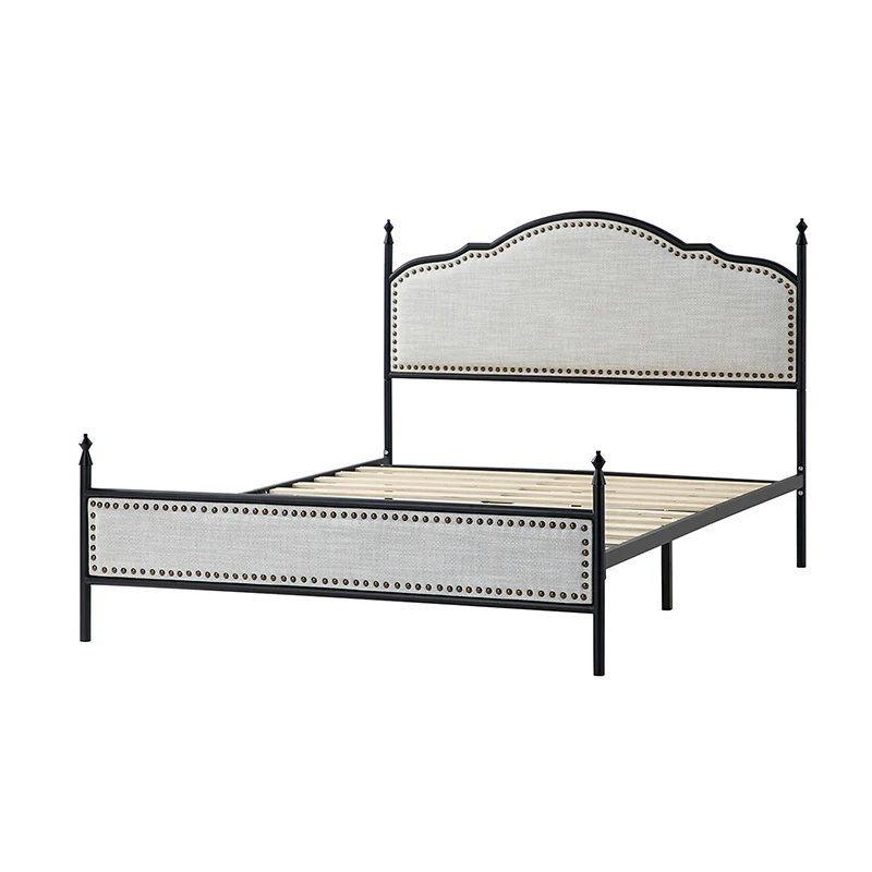 Bring transitional style to your bedroom with this four-poster metal bed. It features a rivet-trimmed headboard and footboard that provide a reliable backrest while watching TV. This is a kind of low-profile bed, which is easier to get in and out of and closer to the ground, especially for people with mobility issues or for children. This can make it a safer and more comfortable option.The sturdy metal bed frame, decorative molding and wooden slats provide ample support for your favorite mattress (not included). The bed takes up less vertical space than high beds, which can be advantageous in rooms with low ceilings or limited vertical space. Also, the style of our bed designed by Dutch crafters is very popular in French countries as well as in the United States. You can choose any color and size that suits your body. Not only will this bed add a sophisticated vibe to your small bedroom, but it will also bring you sweet dreams. It's sleek, chic, and easy to assemble.