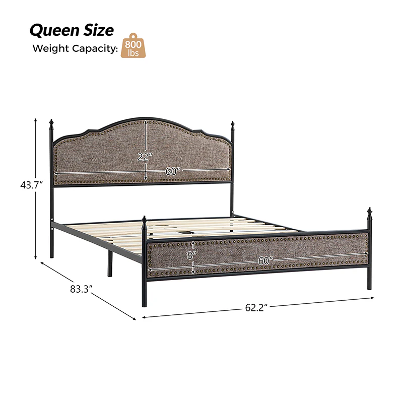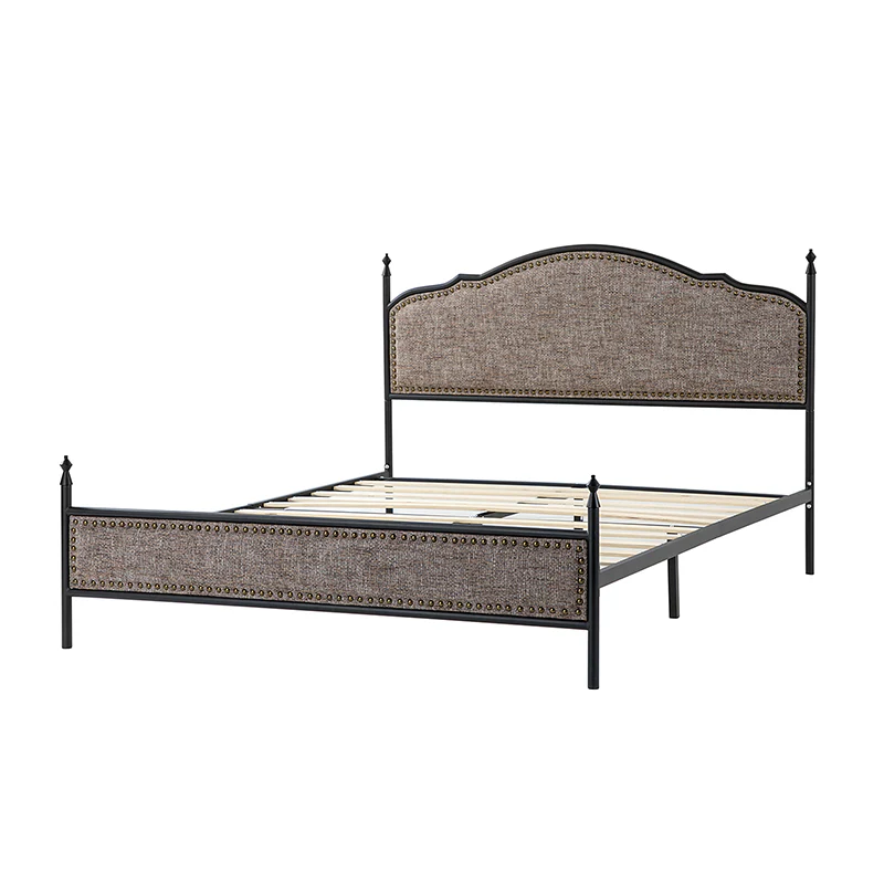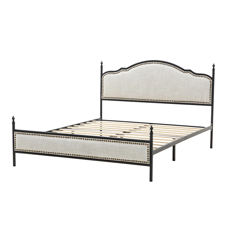 Bring transitional style to your bedroom with this four-poster metal bed. It features a rivet-trimmed headboard and footboard that provide a reliable backrest while watching TV. This is a kind of low-profile bed, which is easier to get in and out of and closer to the ground, especially for people with mobility issues or for children. This can make it a safer and more comfortable option.The sturdy metal bed frame, decorative molding and wooden slats provide ample support for your favorite mattress (not included). The bed takes up less vertical space than high beds, which can be advantageous in rooms with low ceilings or limited vertical space. Also, the style of our bed designed by Dutch crafters is very popular in French countries as well as in the United States. You can choose any color and size that suits your body. Not only will this bed add a sophisticated vibe to your small bedroom, but it will also bring you sweet dreams. It's sleek, chic, and easy to assemble.