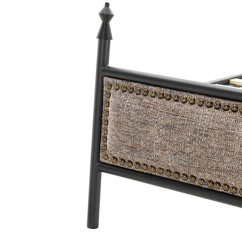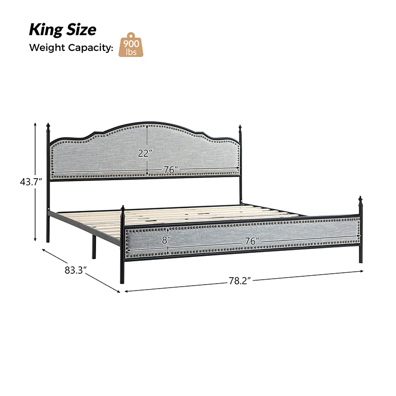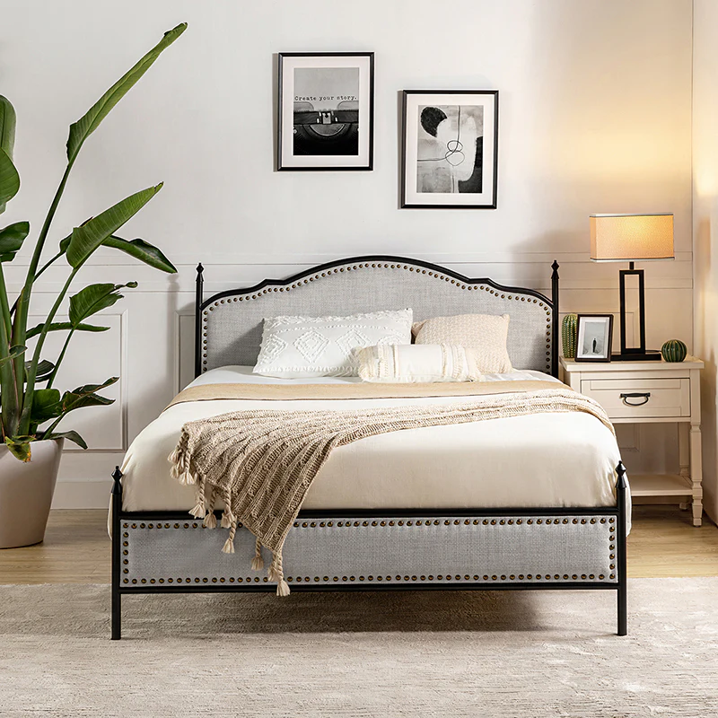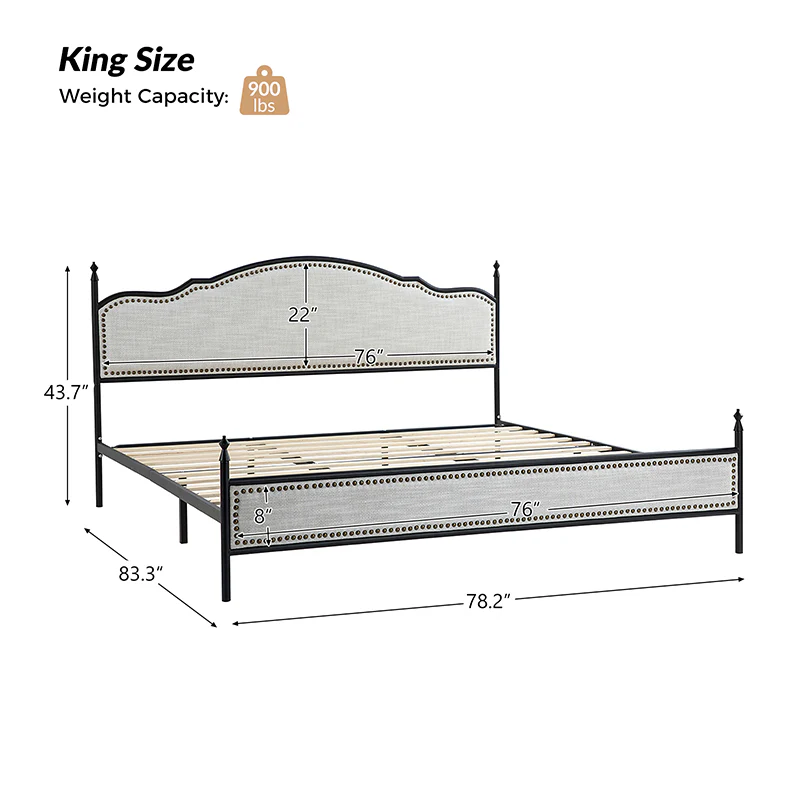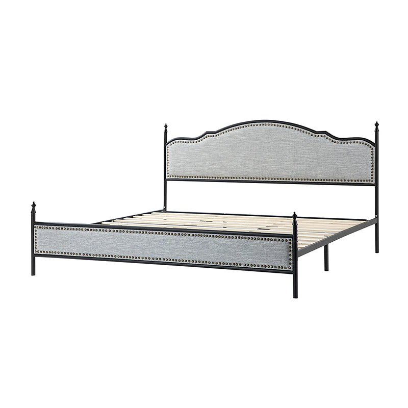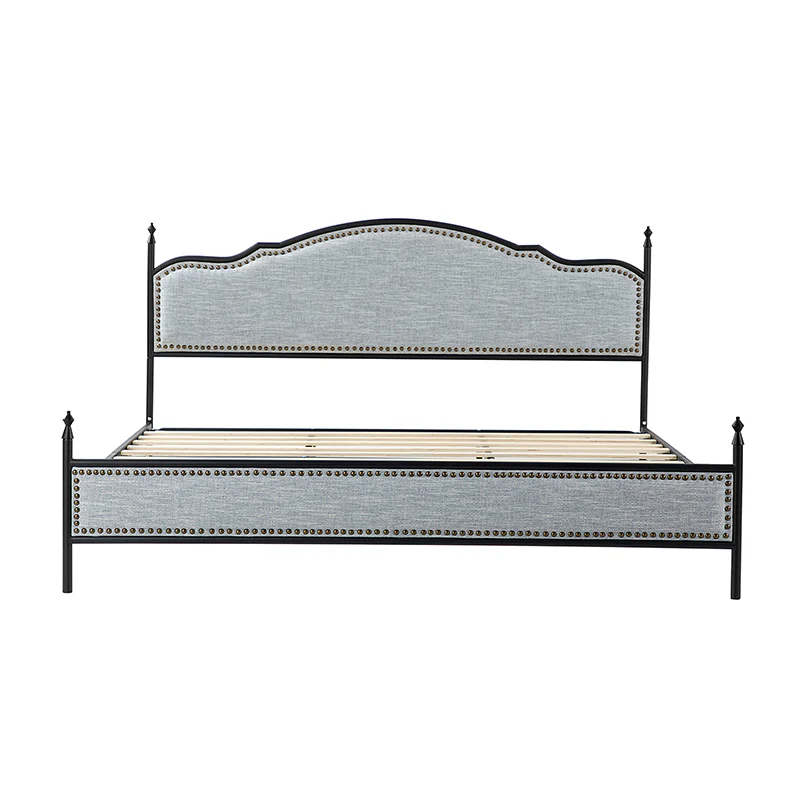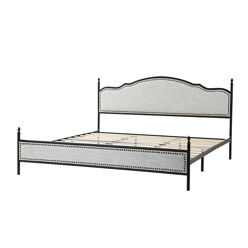 Bring transitional style to your bedroom with this four-poster metal bed. It features a rivet-trimmed headboard and footboard that provide a reliable backrest while watching TV. This is a kind of low-profile bed, which is easier to get in and out of and closer to the ground, especially for people with mobility issues or for children. This can make it a safer and more comfortable option.The sturdy metal bed frame, decorative molding and wooden slats provide ample support for your favorite mattress (not included). The bed takes up less vertical space than high beds, which can be advantageous in rooms with low ceilings or limited vertical space. Also, the style of our bed designed by Dutch crafters is very popular in French countries as well as in the United States. You can choose any color and size that suits your body. Not only will this bed add a sophisticated vibe to your small bedroom, but it will also bring you sweet dreams. It's sleek, chic, and easy to assemble.