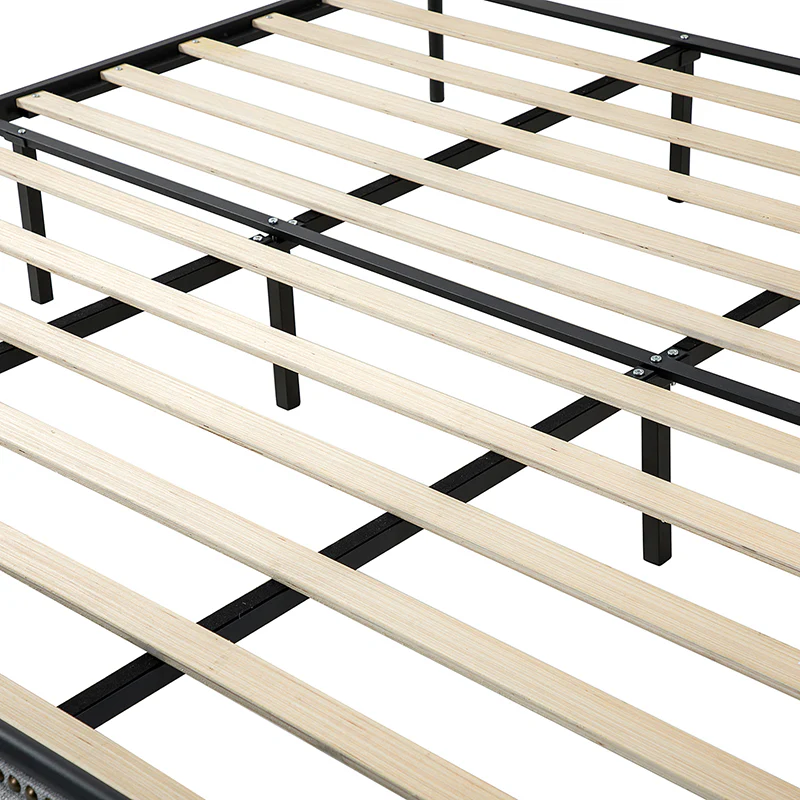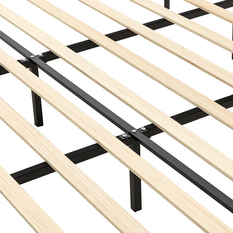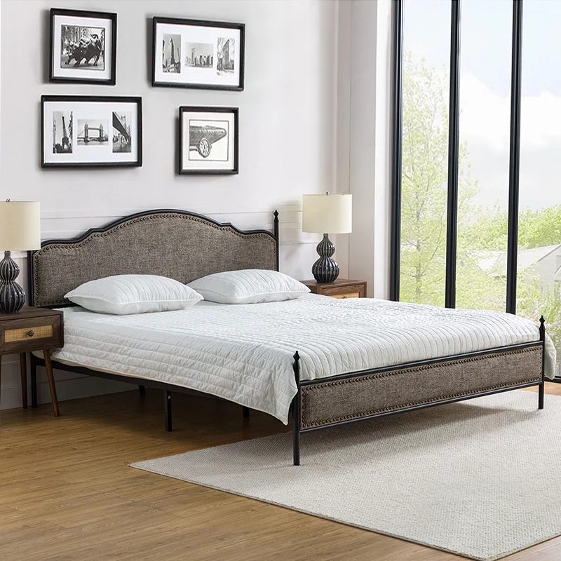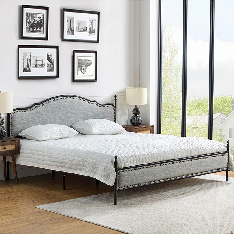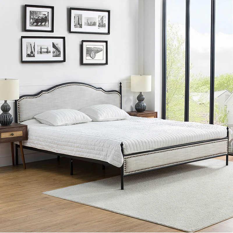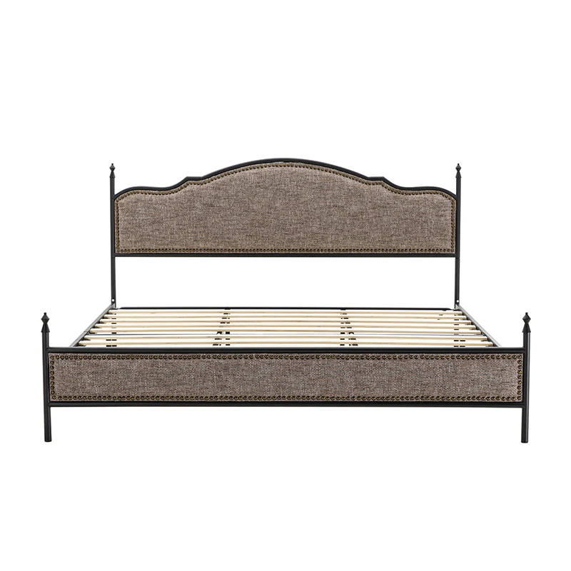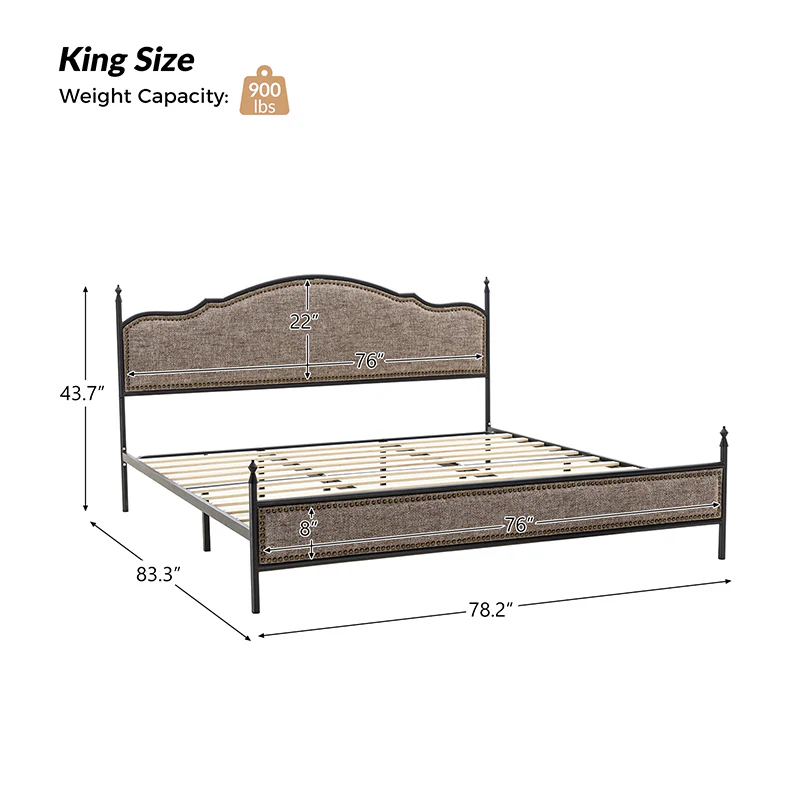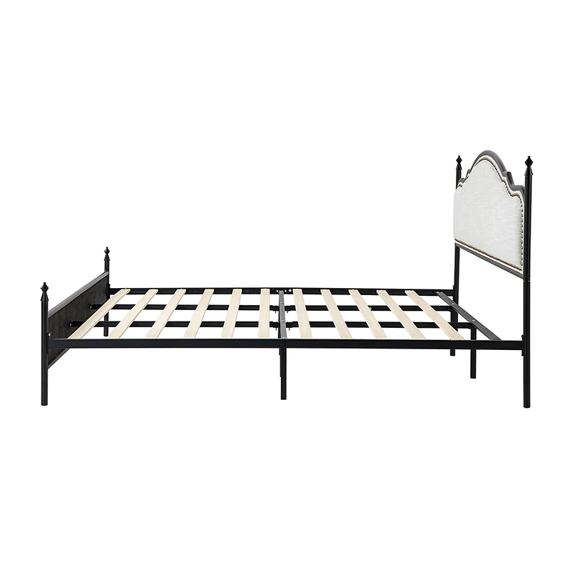 Bring transitional style to your bedroom with this four-poster metal bed. It features a rivet-trimmed headboard and footboard that provide a reliable backrest while watching TV. This is a kind of low-profile bed, which is easier to get in and out of and closer to the ground, especially for people with mobility issues or for children. This can make it a safer and more comfortable option.The sturdy metal bed frame, decorative molding and wooden slats provide ample support for your favorite mattress (not included). The bed takes up less vertical space than high beds, which can be advantageous in rooms with low ceilings or limited vertical space. Also, the style of our bed designed by Dutch crafters is very popular in French countries as well as in the United States. You can choose any color and size that suits your body. Not only will this bed add a sophisticated vibe to your small bedroom, but it will also bring you sweet dreams. It's sleek, chic, and easy to assemble.