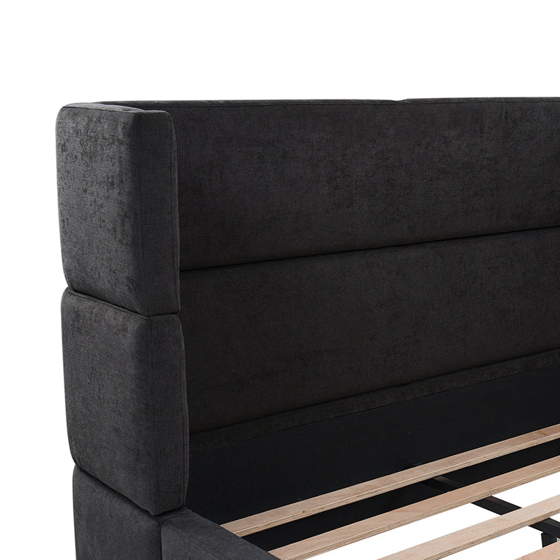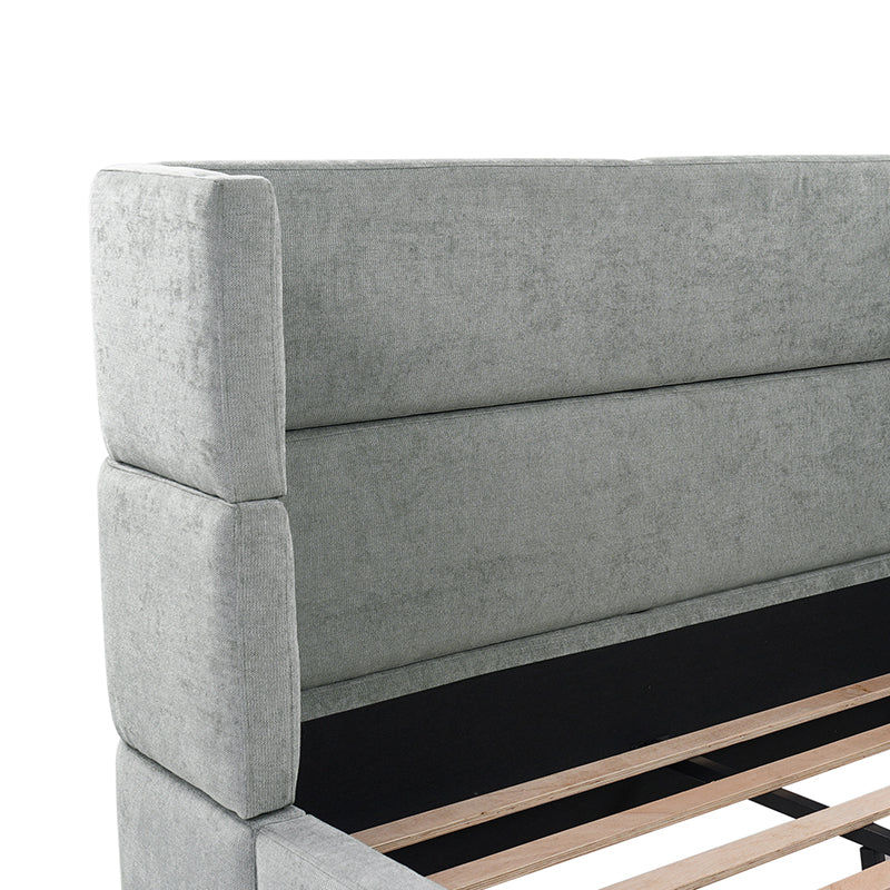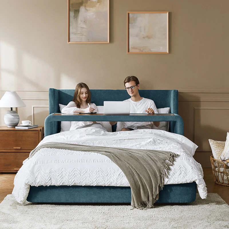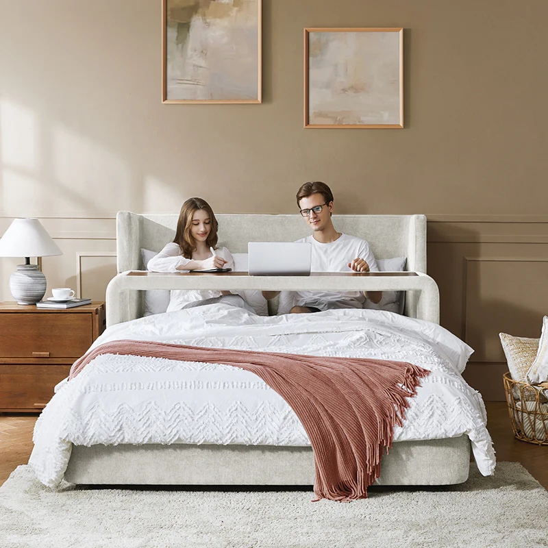 Presenting this modern upholstered bed, designed for versatility and style. This modular bed offers different possibilities with four interchangeable configurations. Firstly, it serves as a convenient overbed table, suitable for meals, movie nights, or work sessions from the comfort of your bed. Secondly, it transforms into a sleek bed bench, adding extra seating or storage at the foot of your bed. For those seeking elevated comfort, the high headboard option provides ample support for lounging or reading. Finally, the sled bed configuration with an attached footboard brings a classic touch. Crafted with comfortable upholstery, this contemporary wingback bed offers the flexibility to adapt to your lifestyle and space requirements. Upgrade your bedroom with the versatile and stylish upholstered bed today.