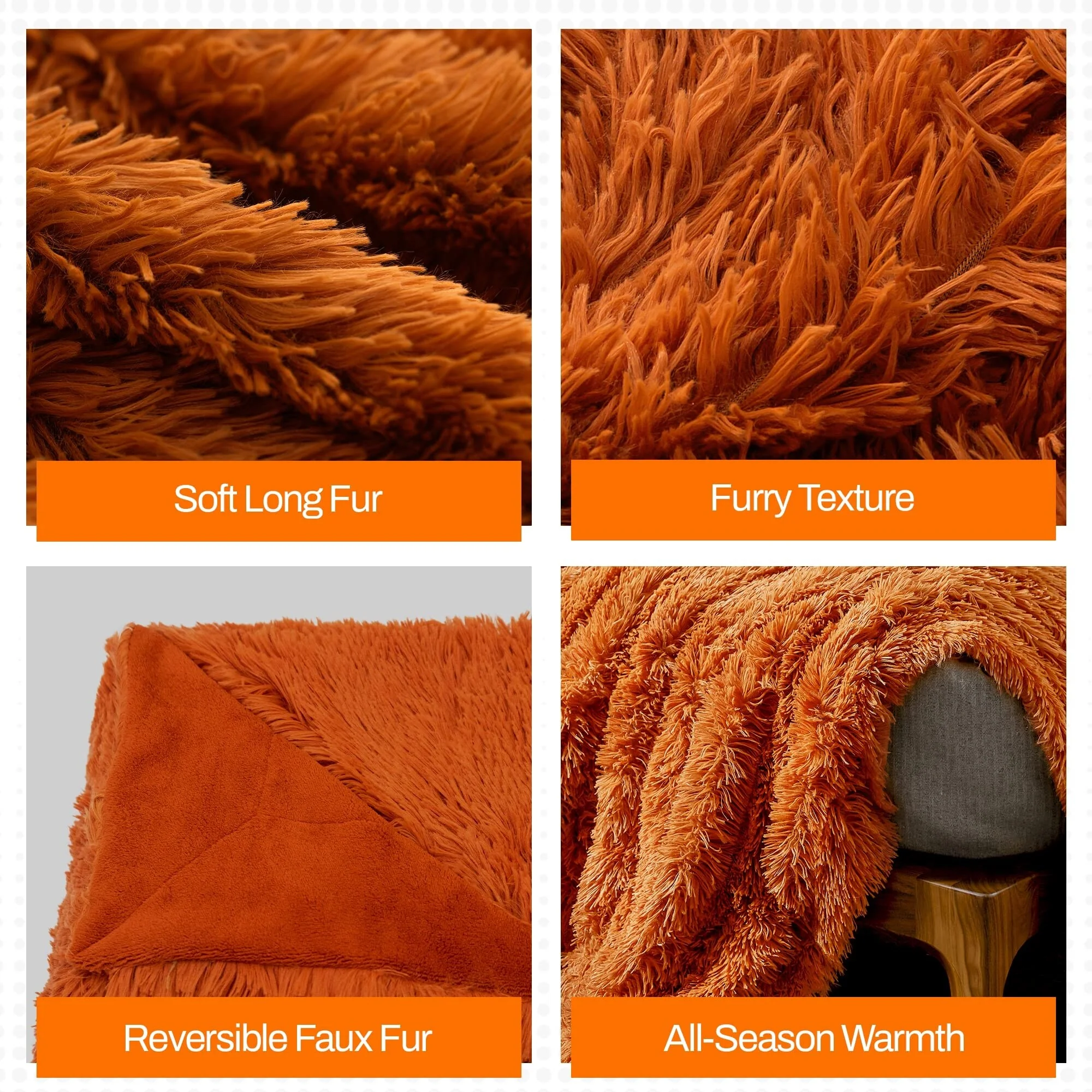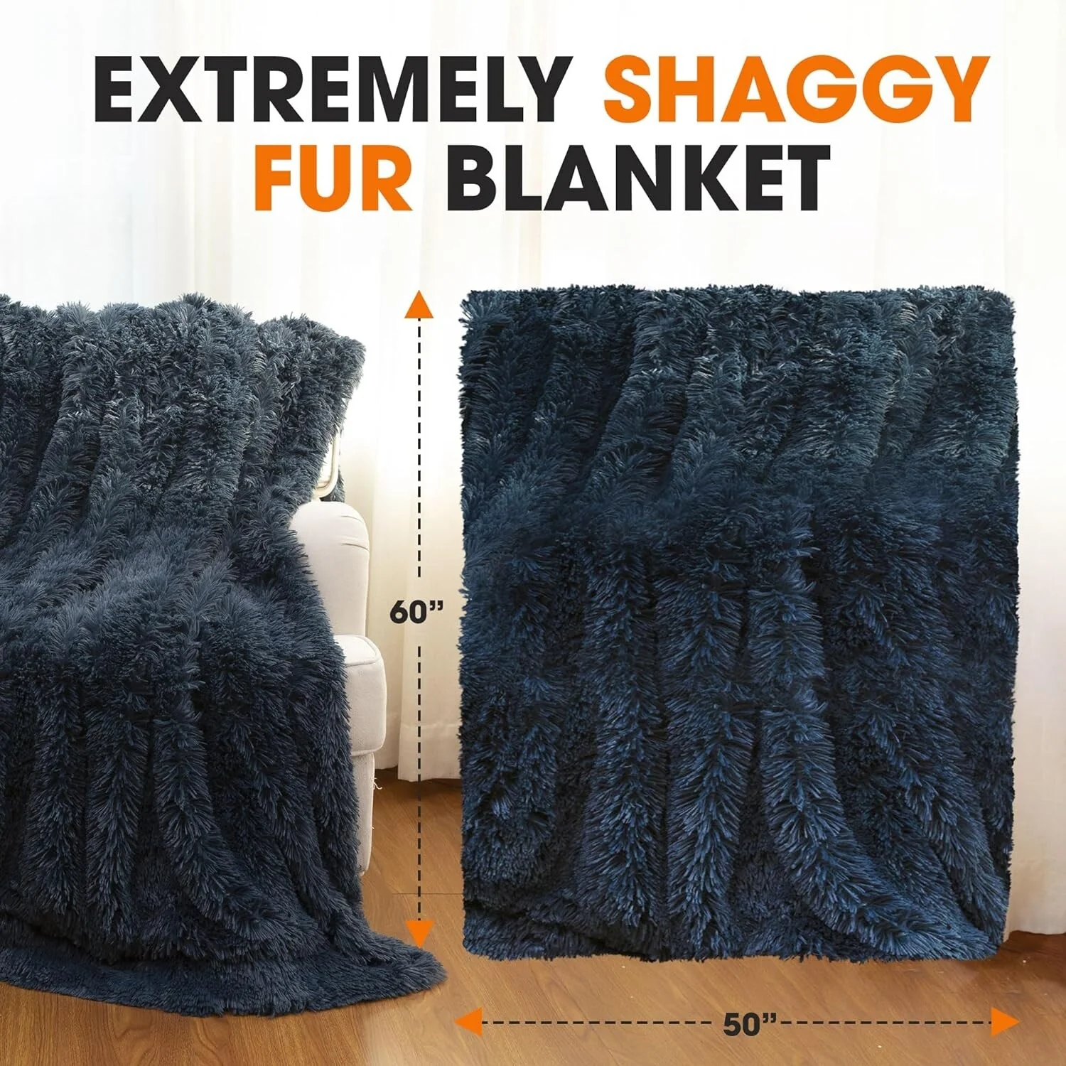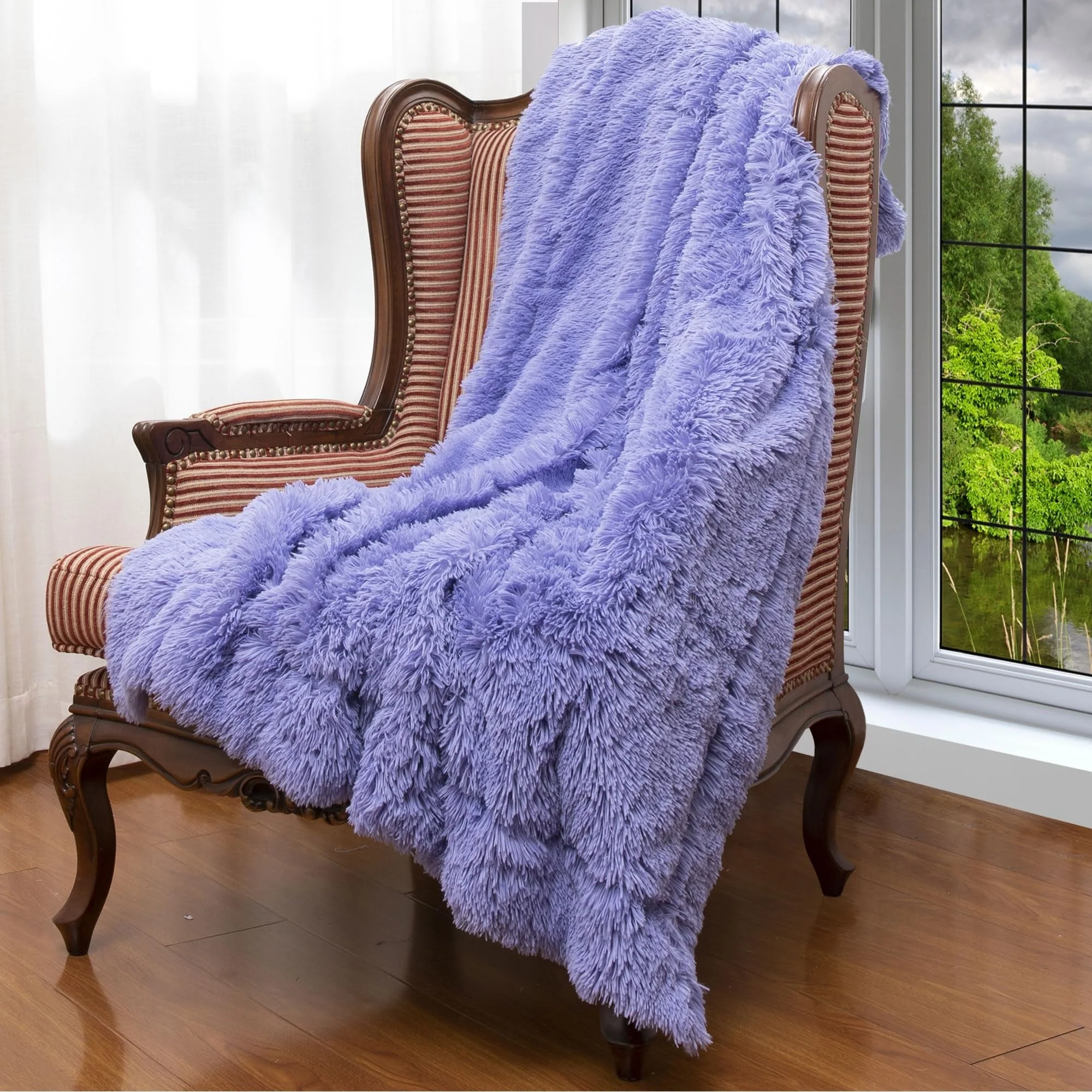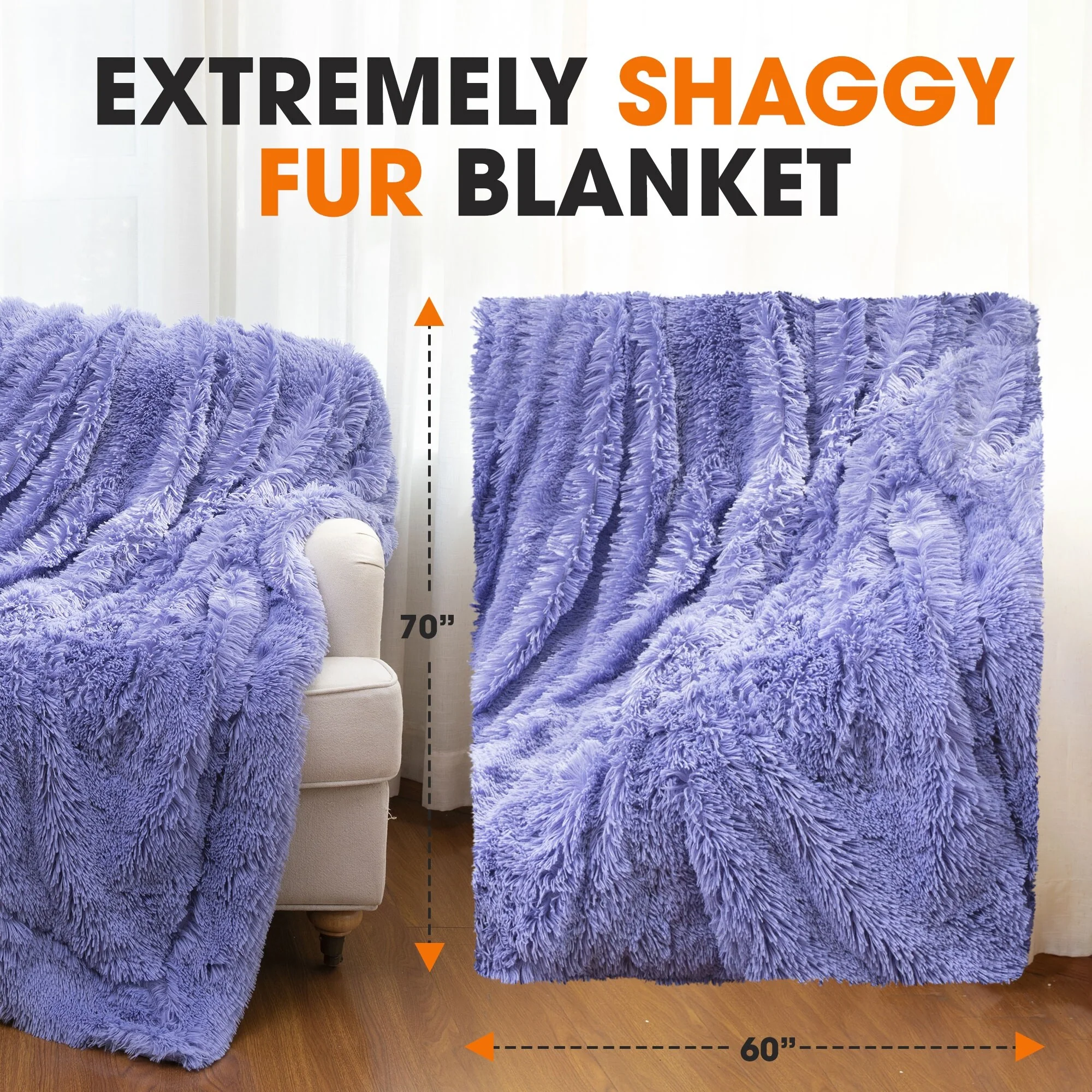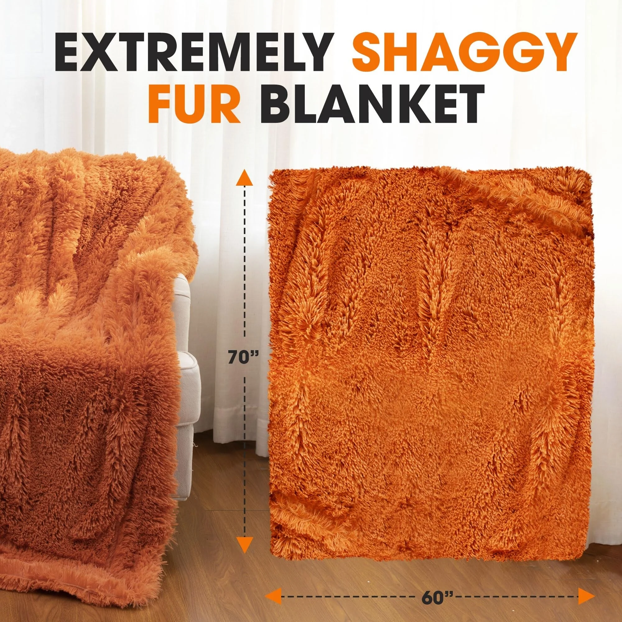- STRIKING DUAL-LAYERED ELEGANCE: Revel in the blanket's unique design with a vividly colored base and sumptuous long, shaggy hair. It's not just a blanket; it's a statement piece offering exceptional warmth and a distinctive visual appeal for all seasons